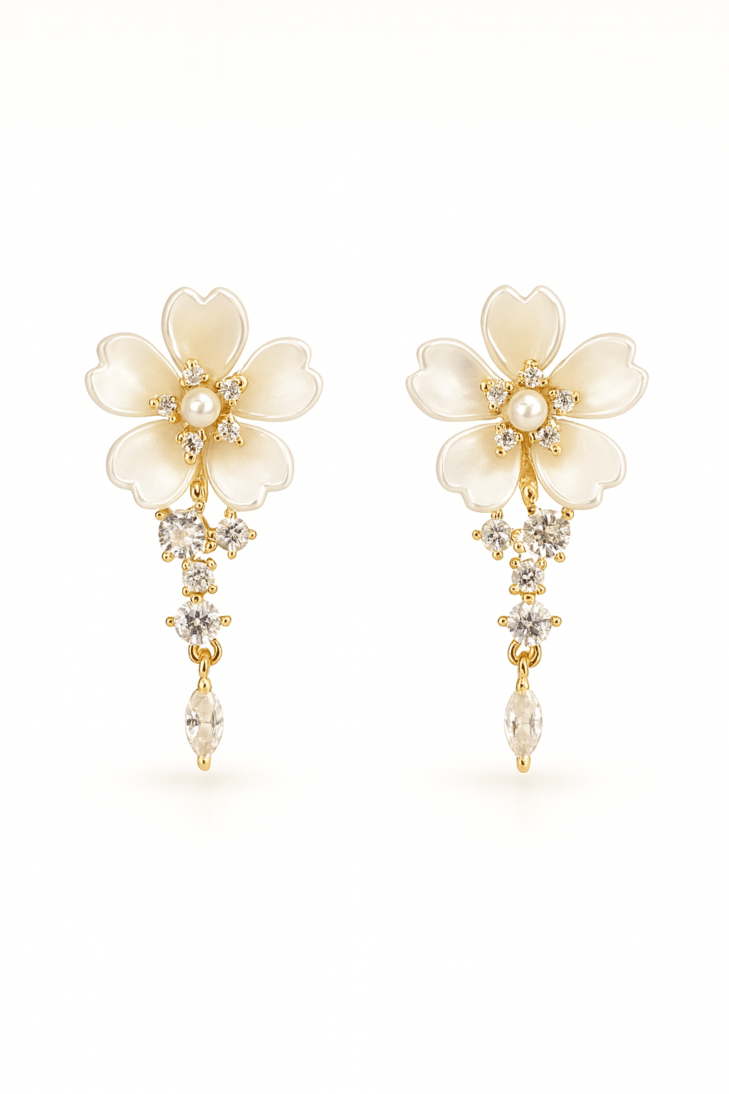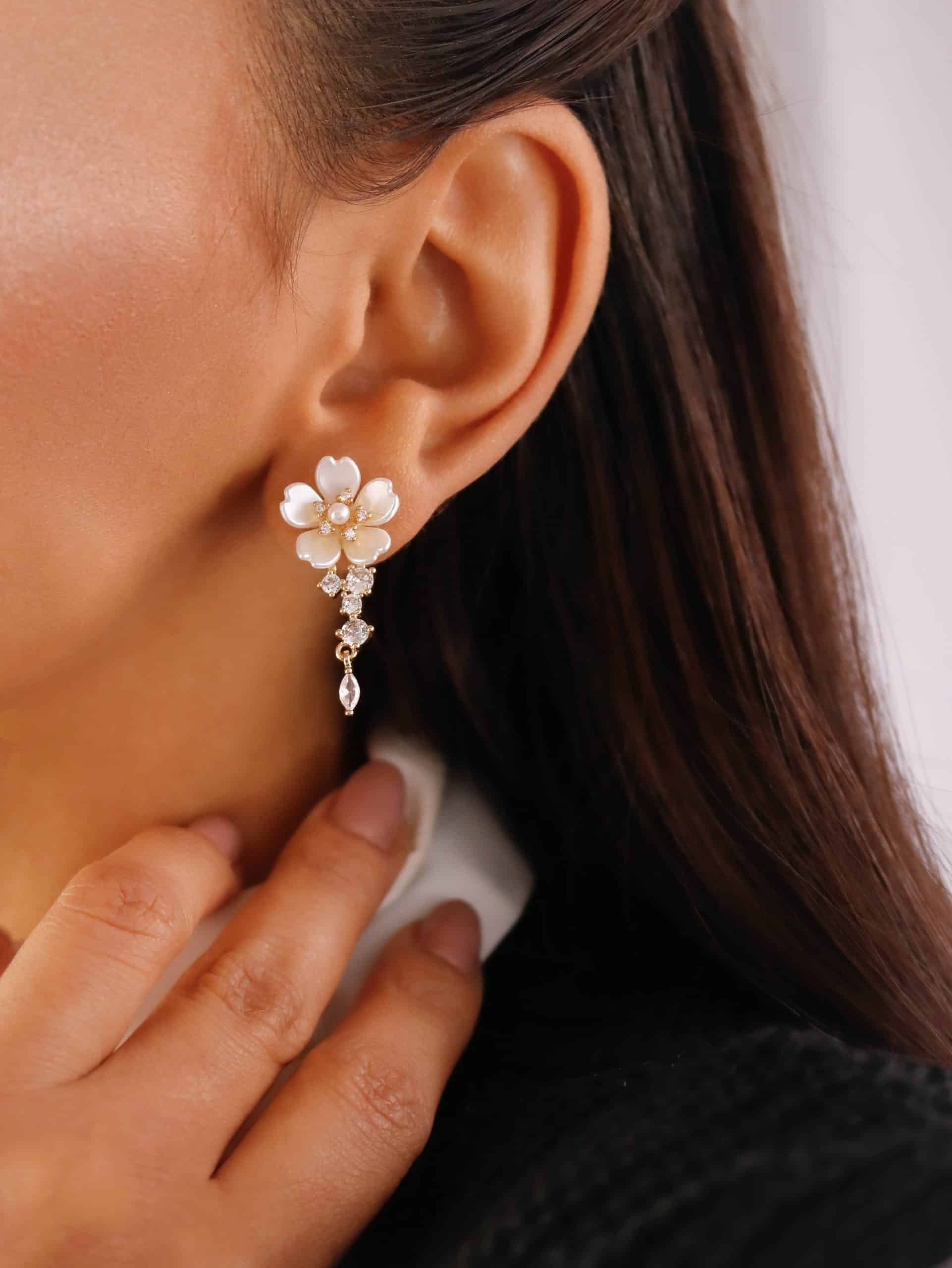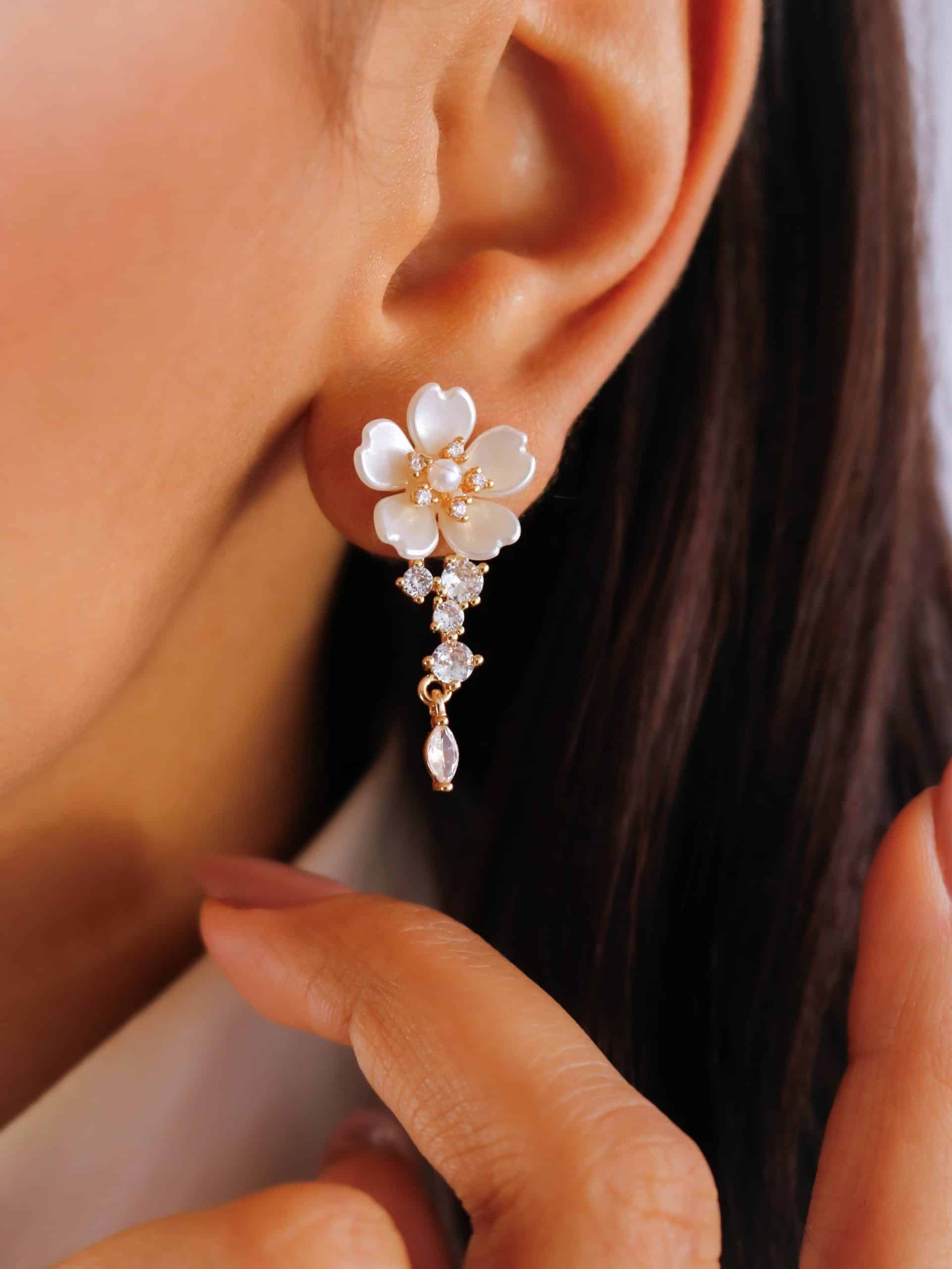 BRINCO PEROLA FLOR COM ZIRCONIAS