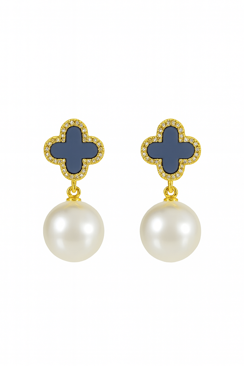 BRINCO PEROLA FLOR CRAVEJADA EM VOLTA E PEROLA PENDURADA CORES  26.0 MM