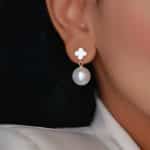 BRINCO PEROLA FLOR E UMA PEROLA PENDURADA CORES 28.7 MM
