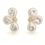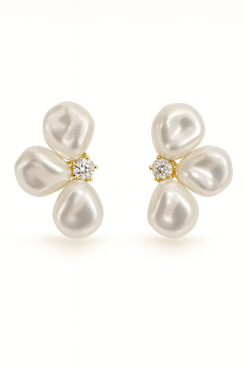 BRINCO PEROLA COM FLOR NA BASE COM ZIRCONIAS E NAVETES E PEROLA PENDURADA