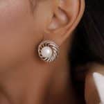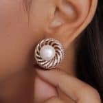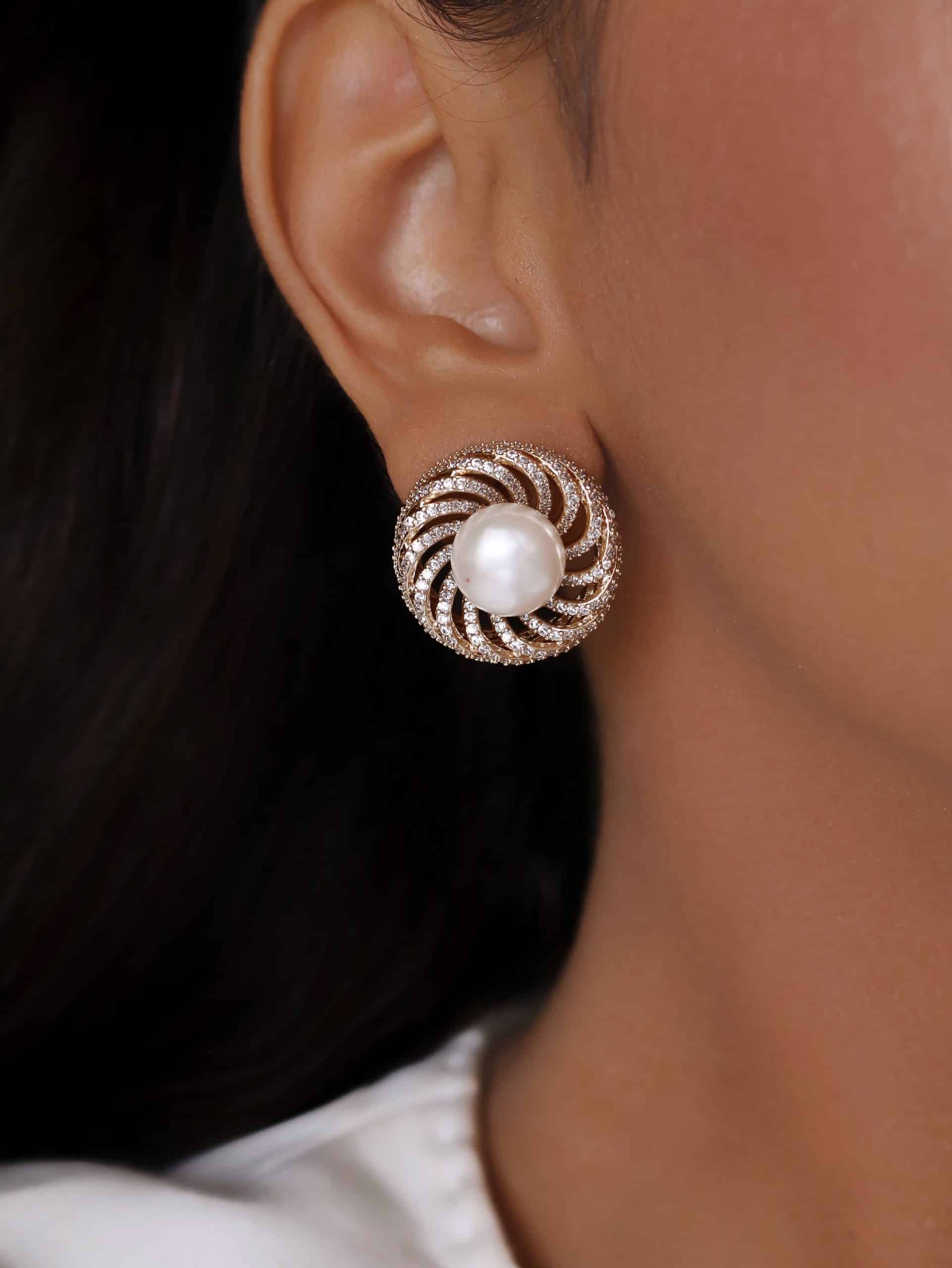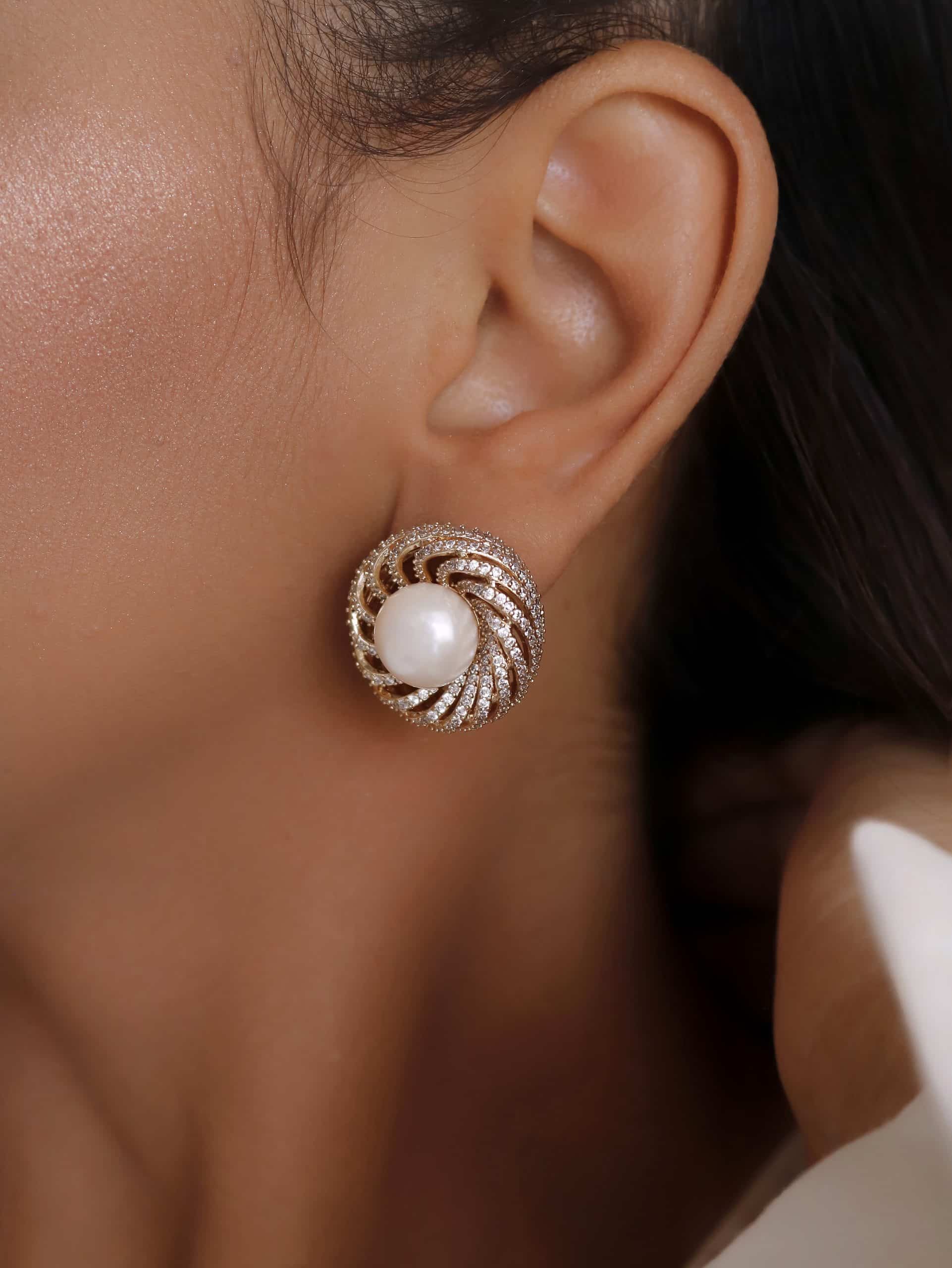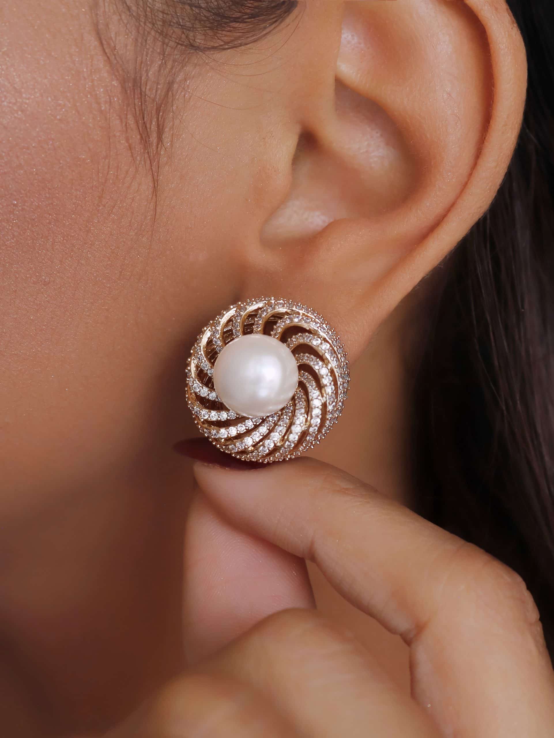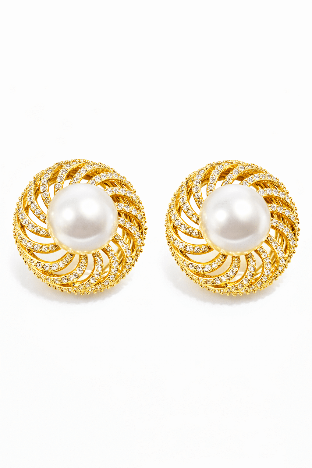 BRINCO PEROLA REDONDO CRAVEJADO E PEROLA NO MEIO
