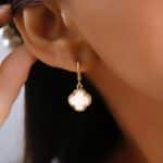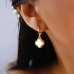 BRINCO RESINA NEGRA COM BASE E FLOR PENDURADA