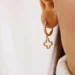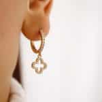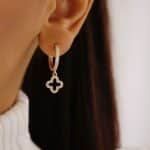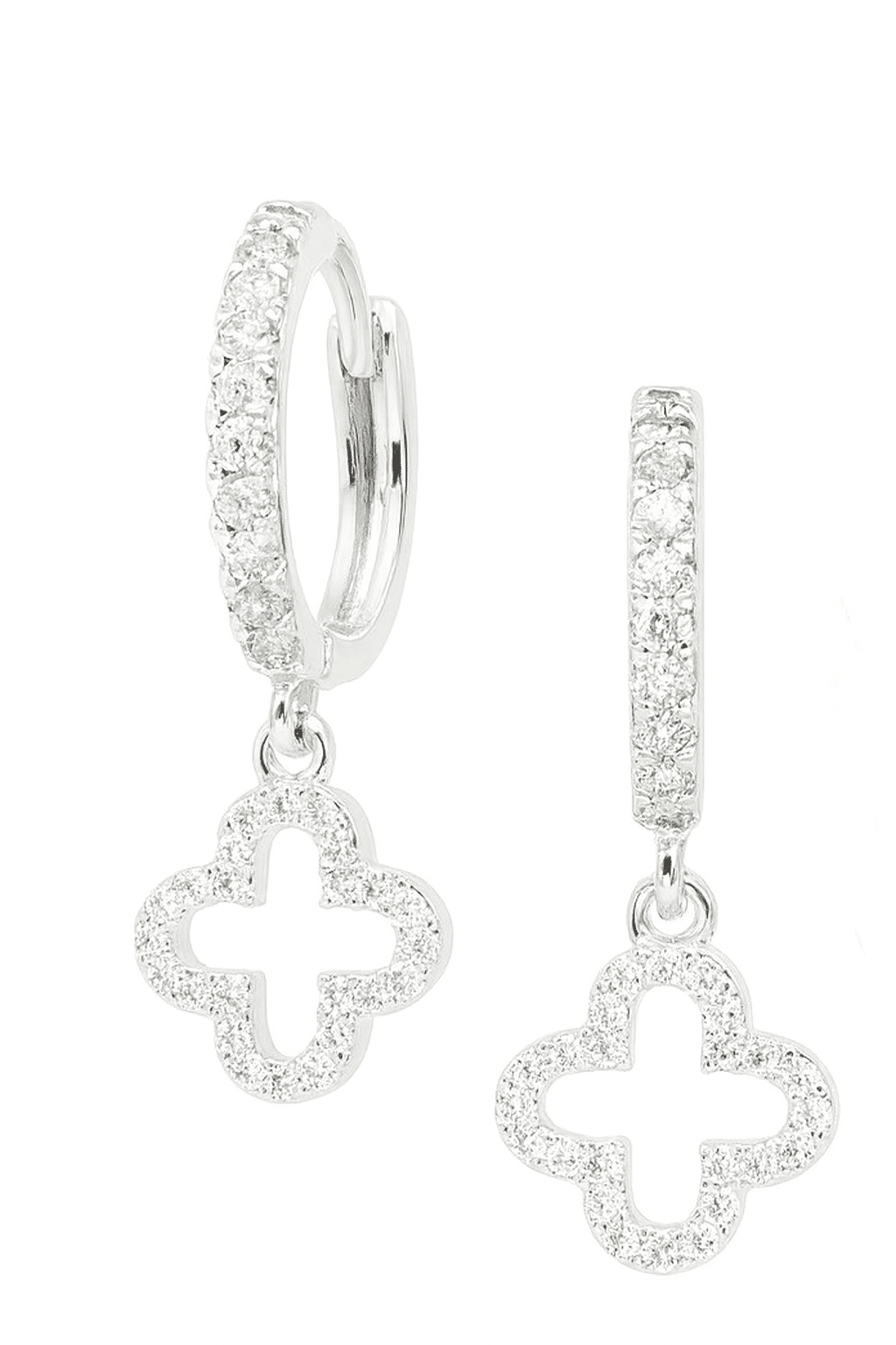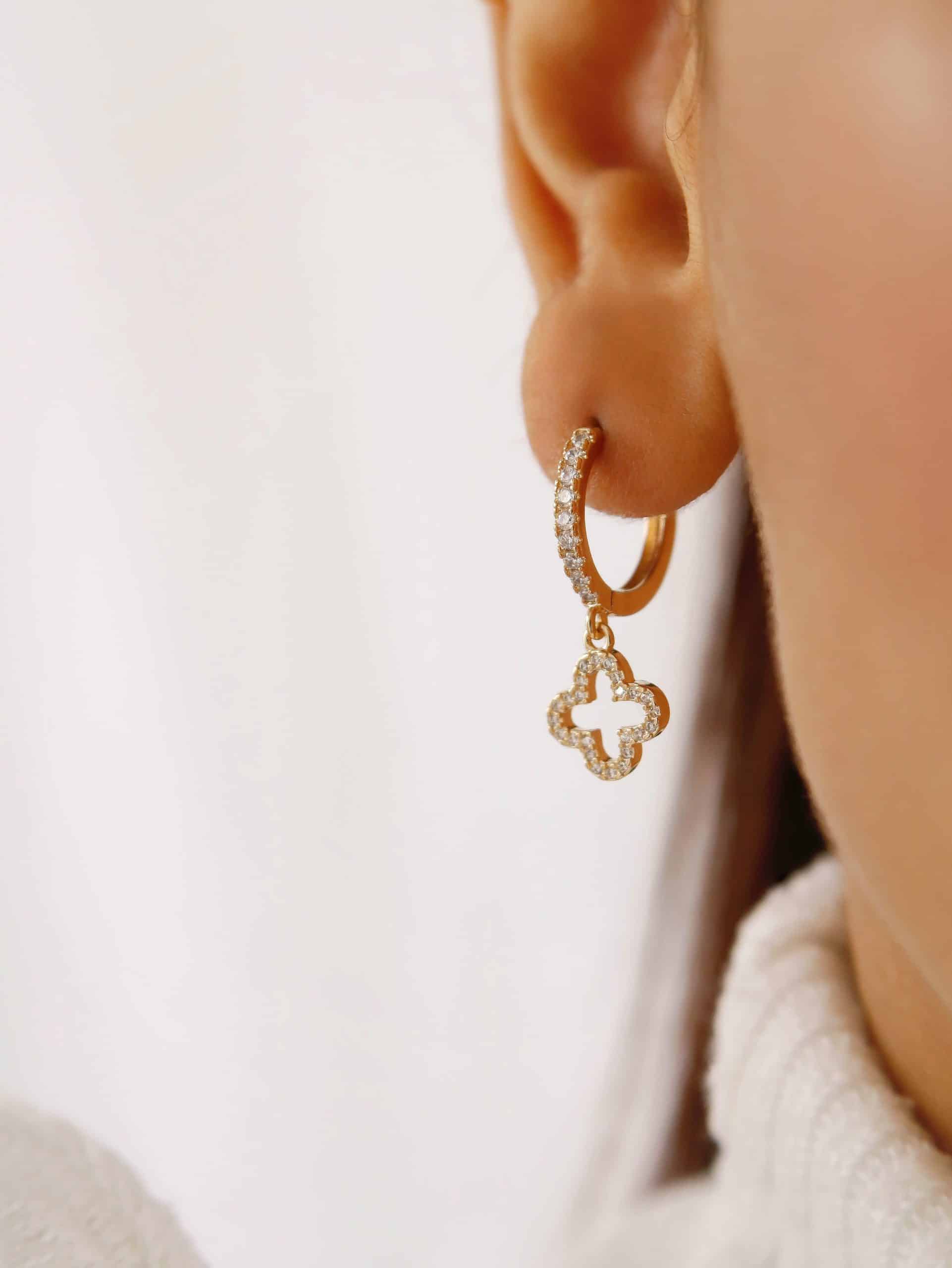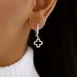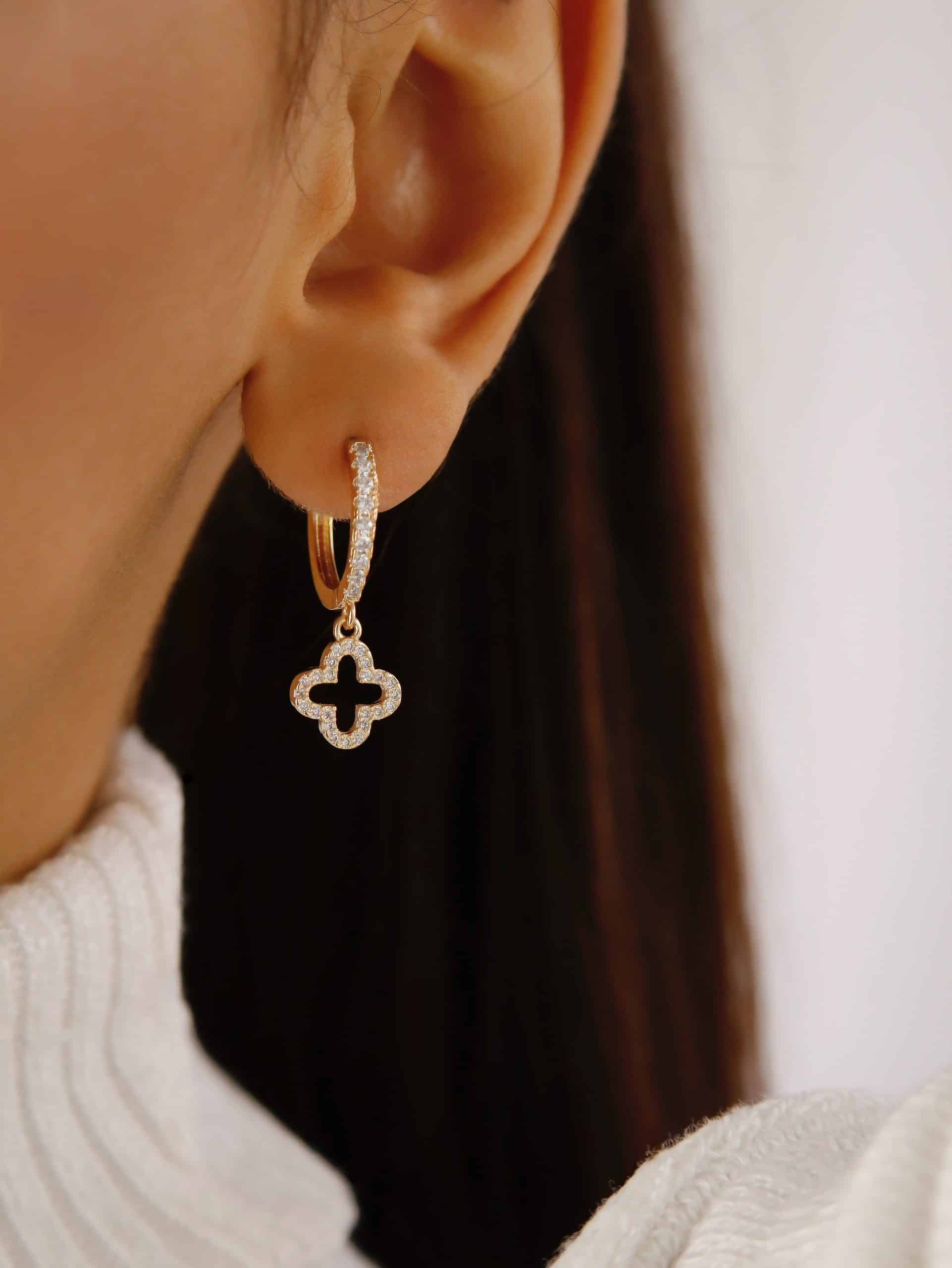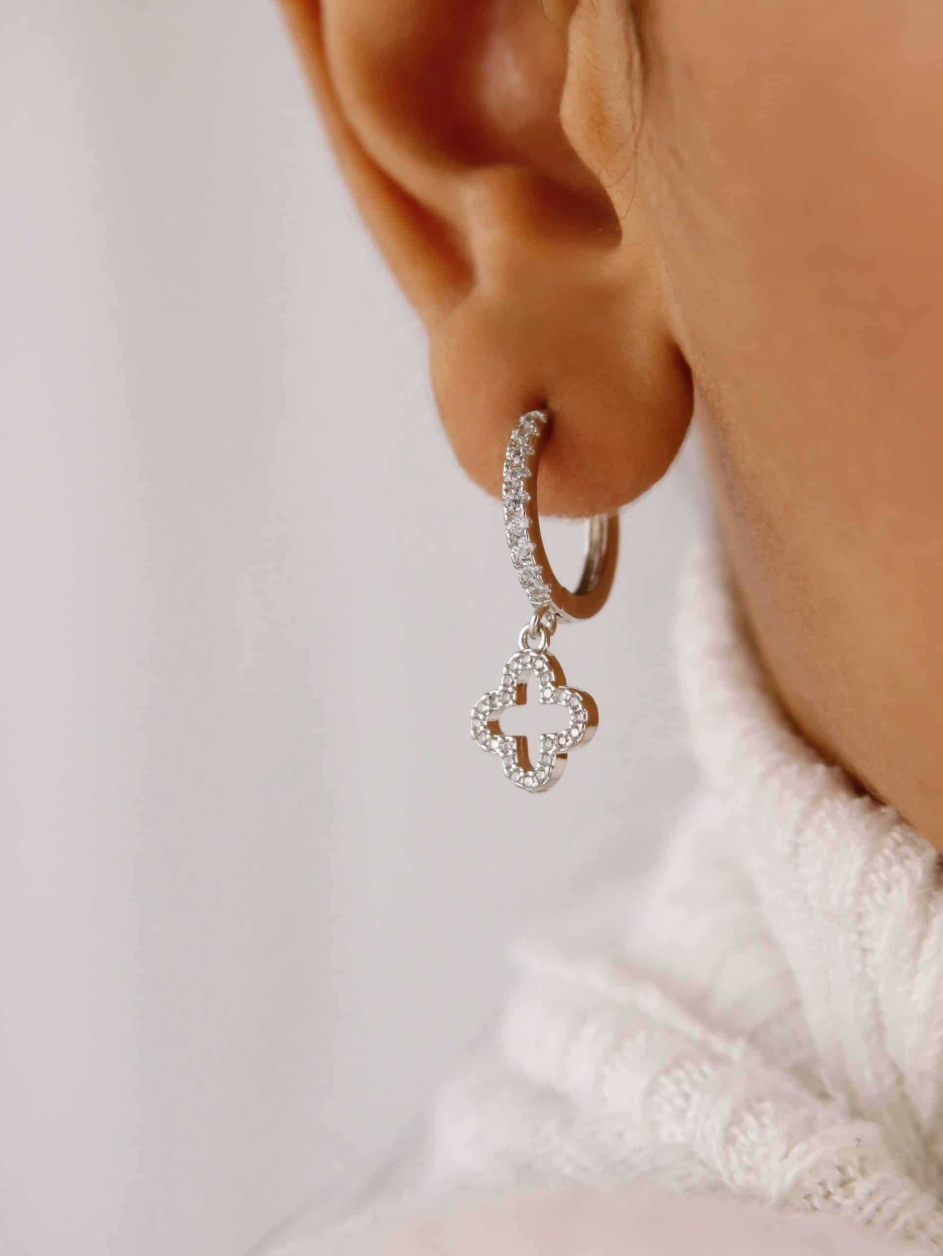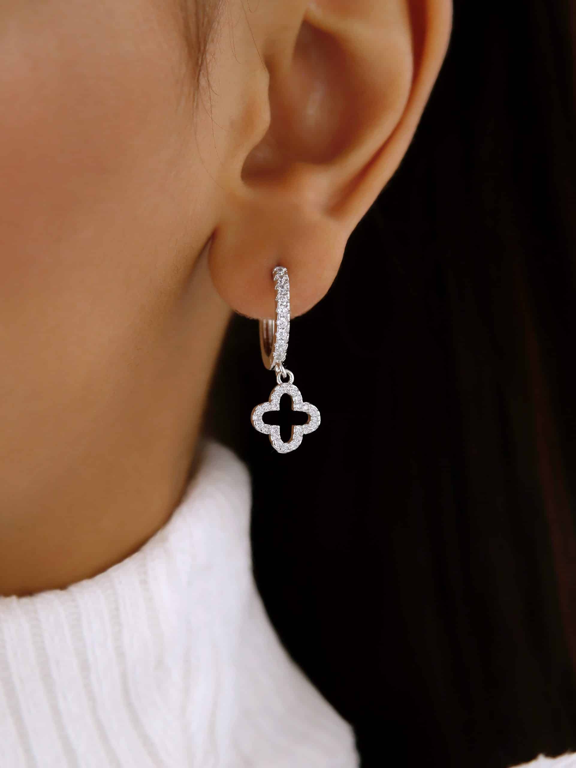 BRINCO ZIRCONIA ARGOLA CLICK COM FLOR PENDURADA VAZADA