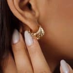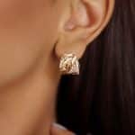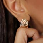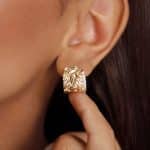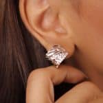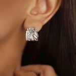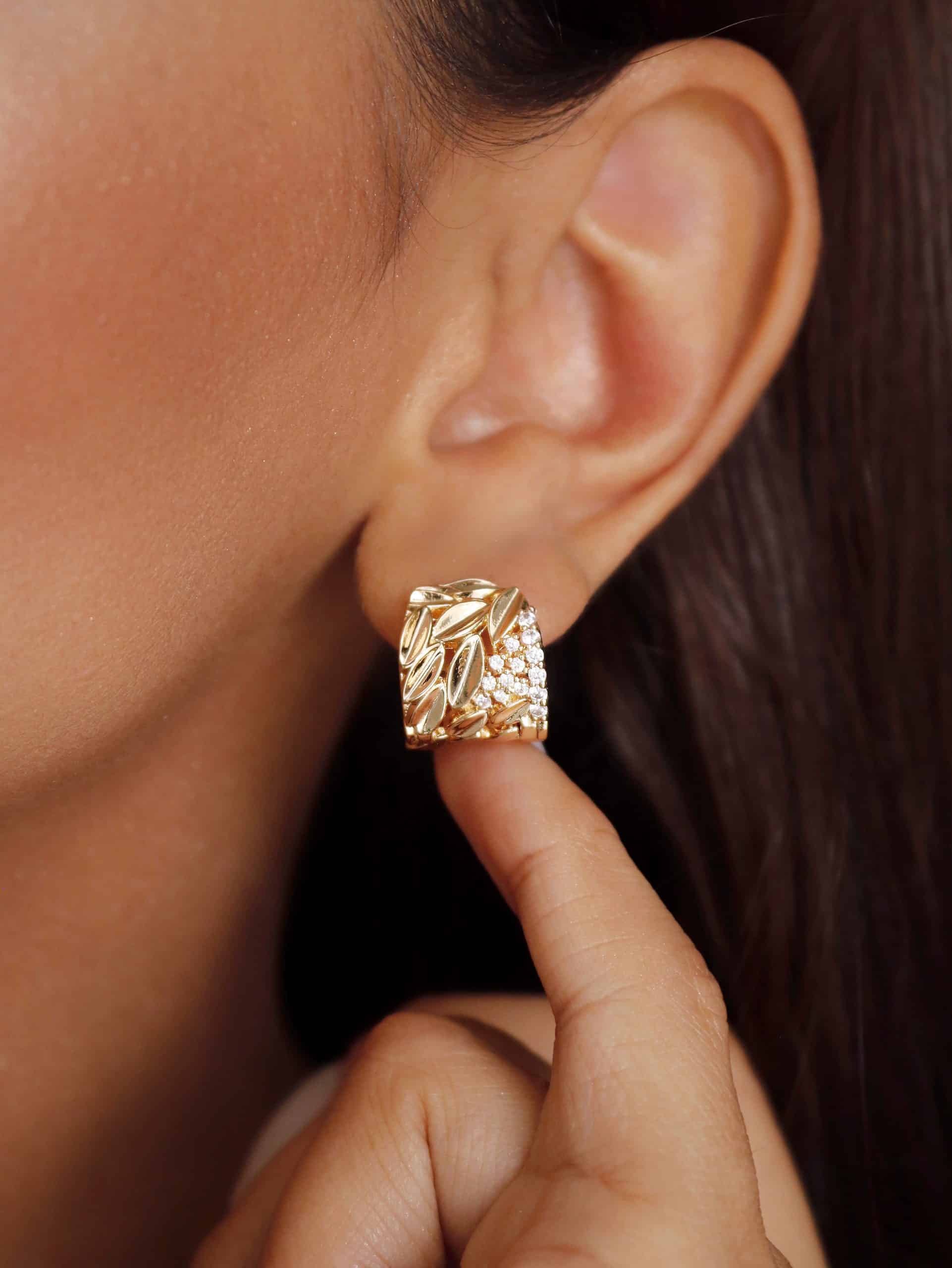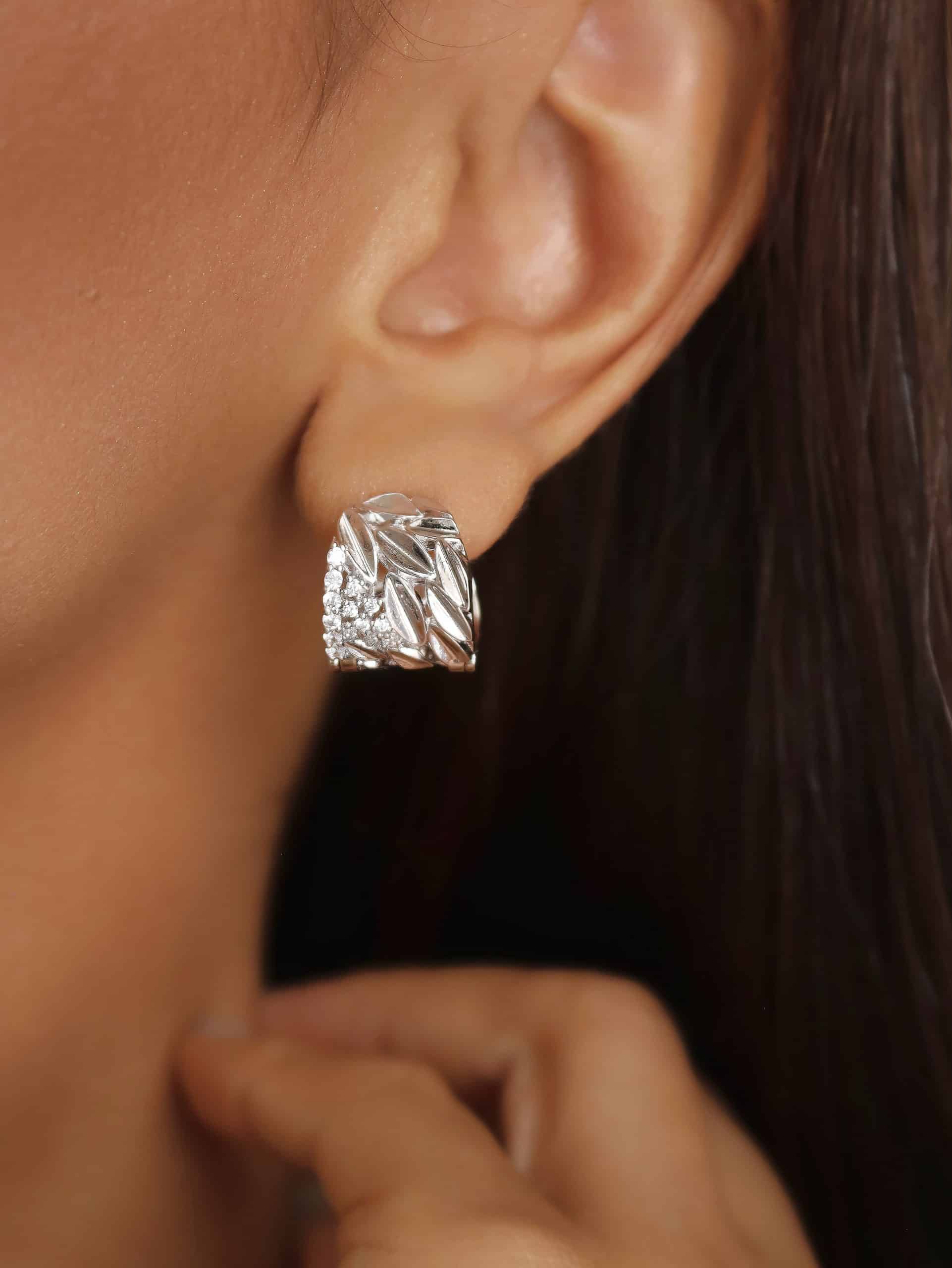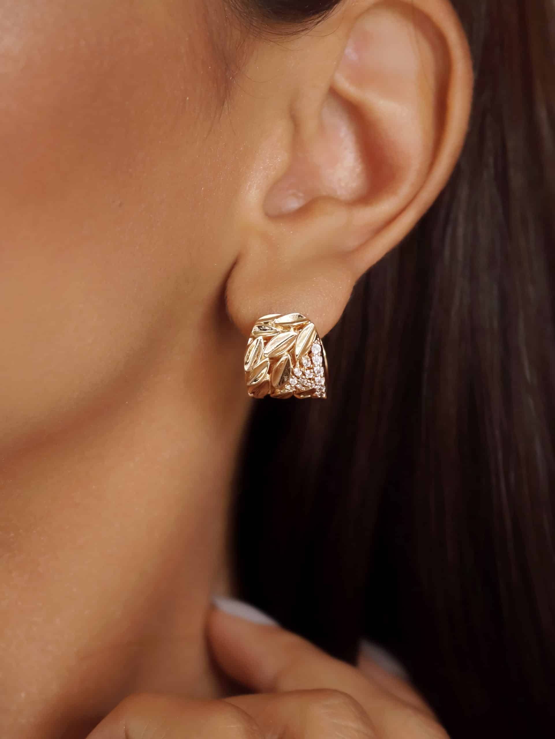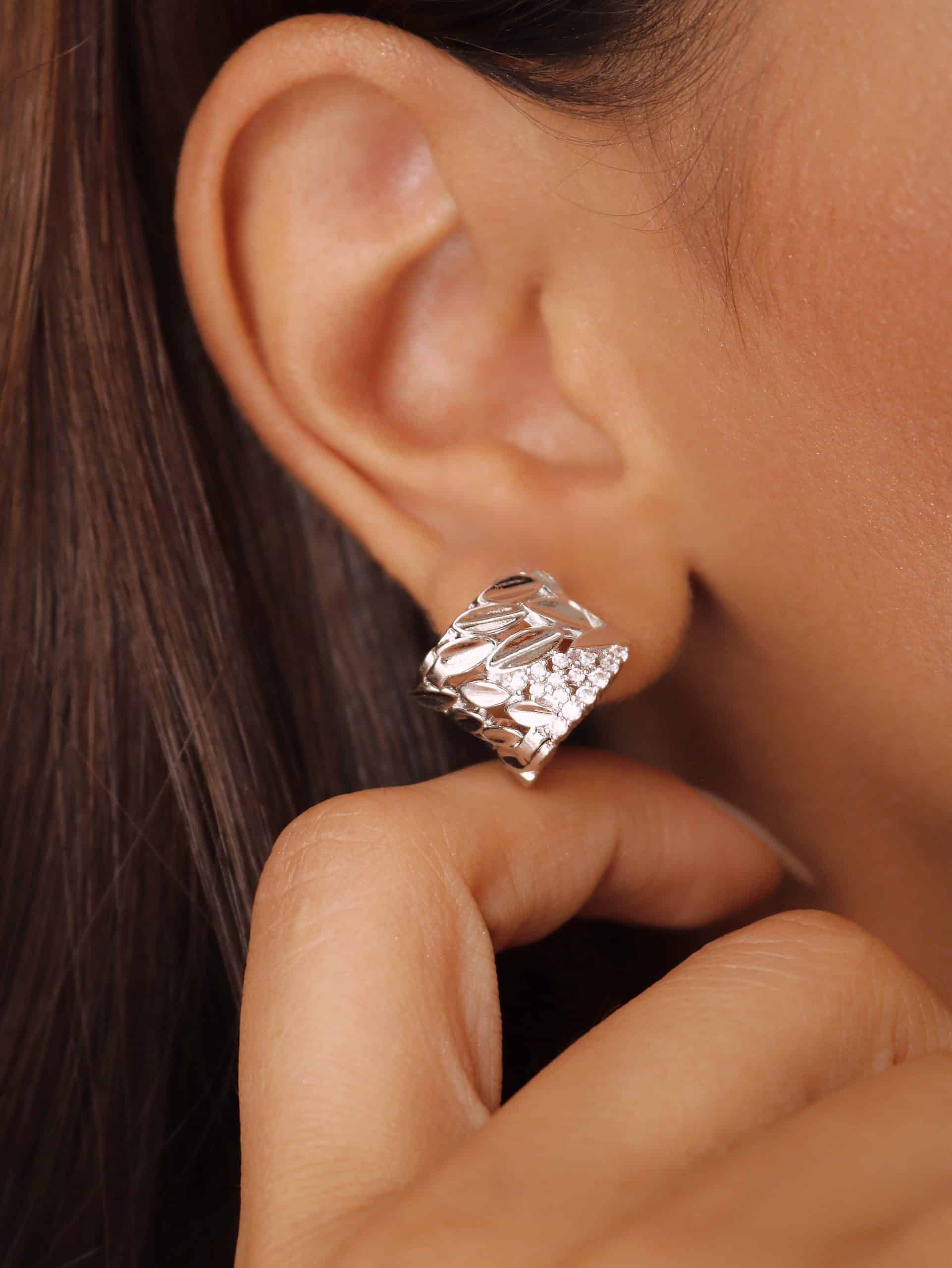 BRINCO ZIRCONIA ARGOLA COM UMA FAIXA CRAVEJADA E A OUTRA LISA COM FORMATOS DE LOSANGOS 26.7 MM