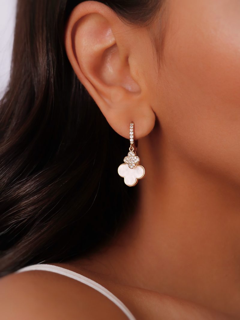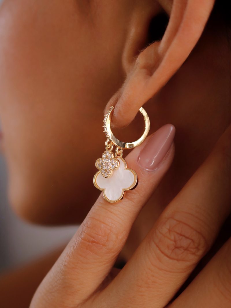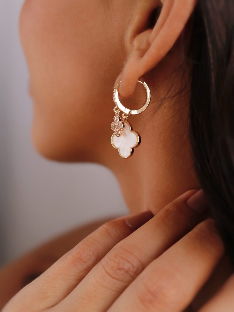 BRINCO ZIRCONIA ARGOLA CLICK COM UMA FLOR PEQUENA CRAVEJADA E A OUTRA MAIOR RESINA CORES