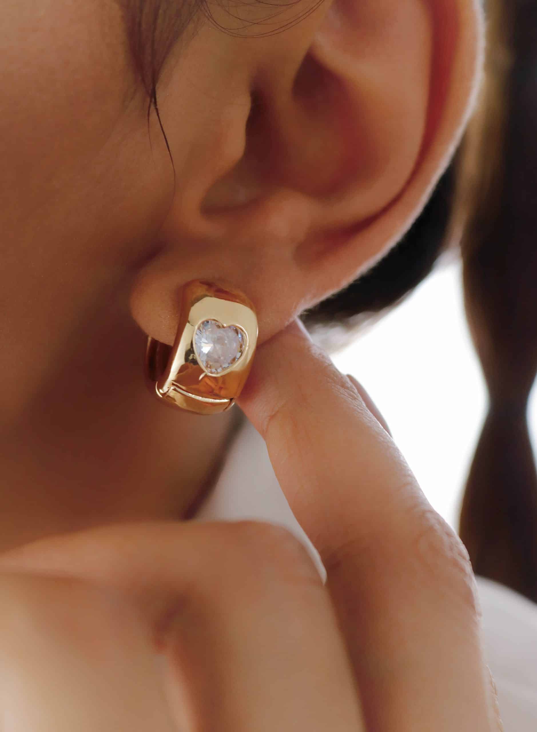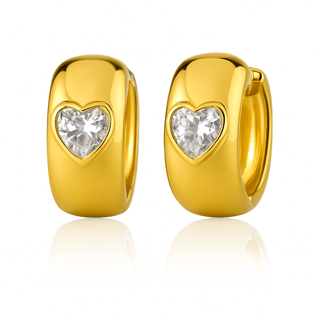 BRINCO ZIRCONIA ARGOLA CLICK LISA E CORACAO COM ZIRCONIAS 15.6 MM