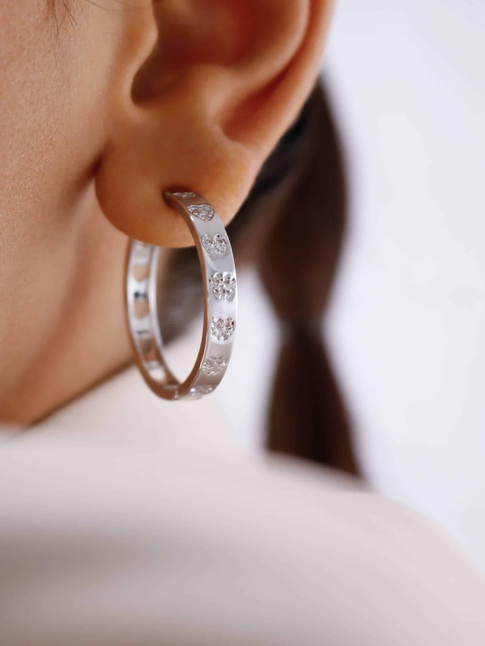 BRINCO ZIRCONIA ARGOLA COM TRES FAIXAS CRAVEJADAS NA HORIZONTAL 18.9 MM
