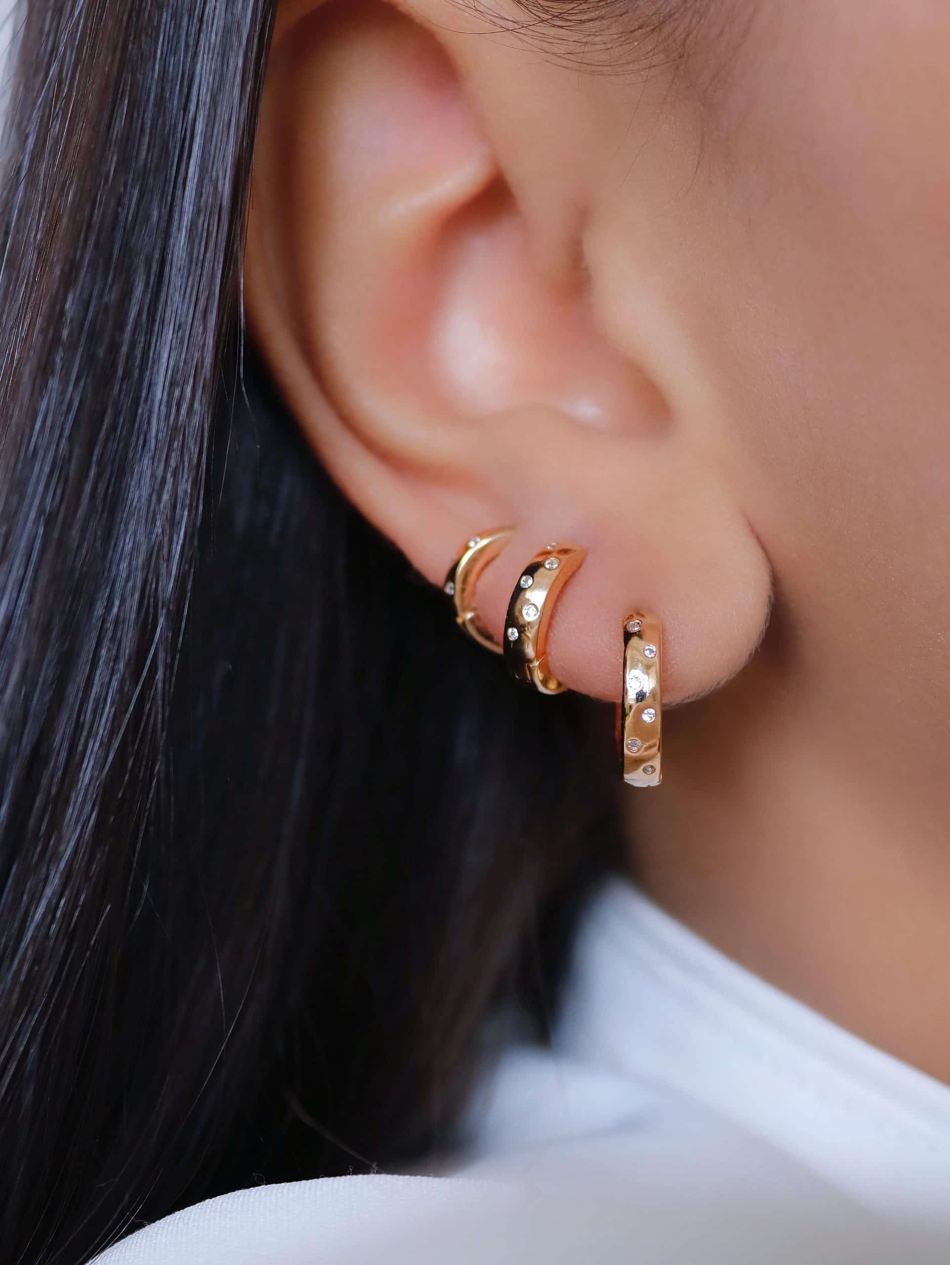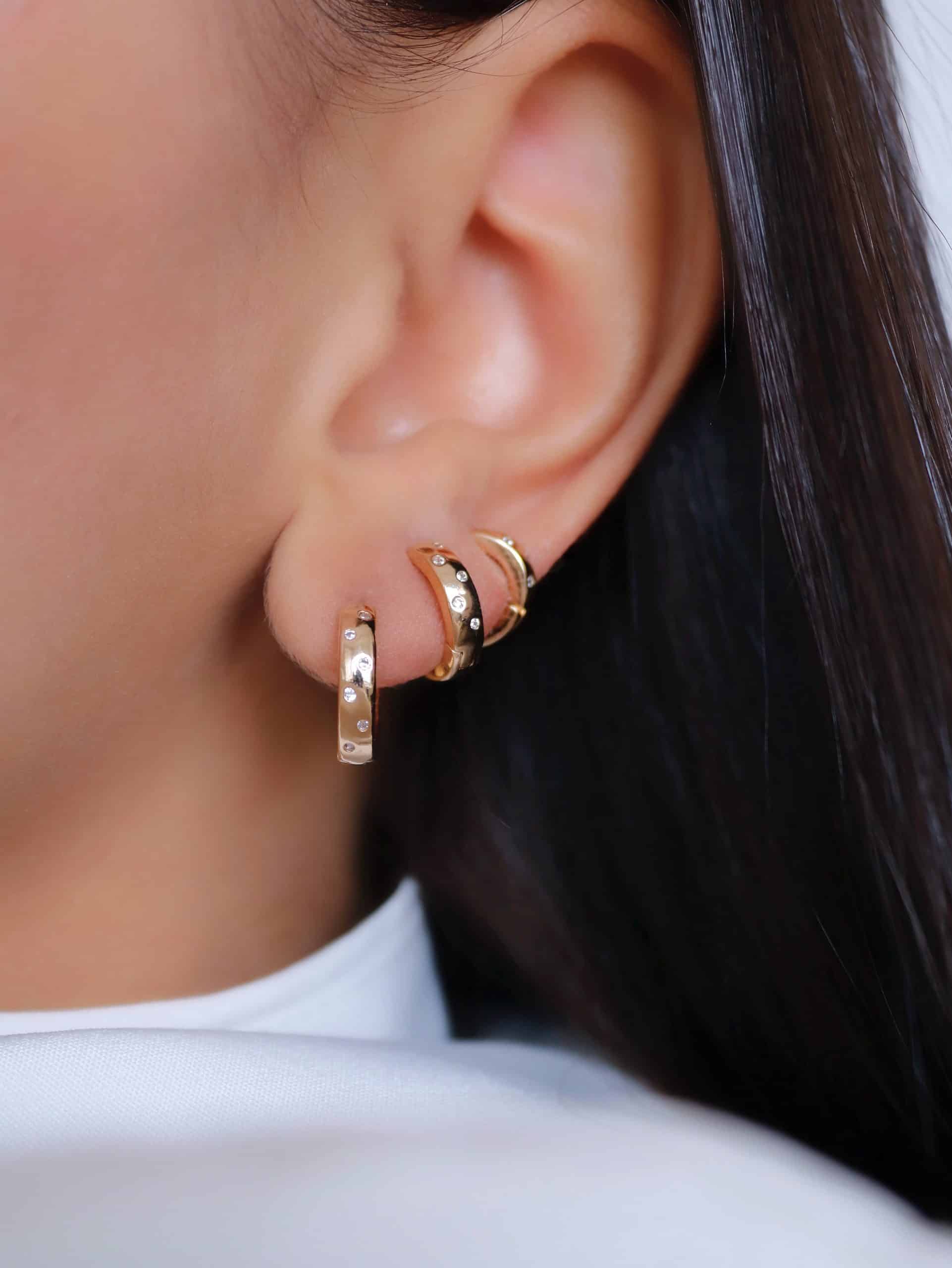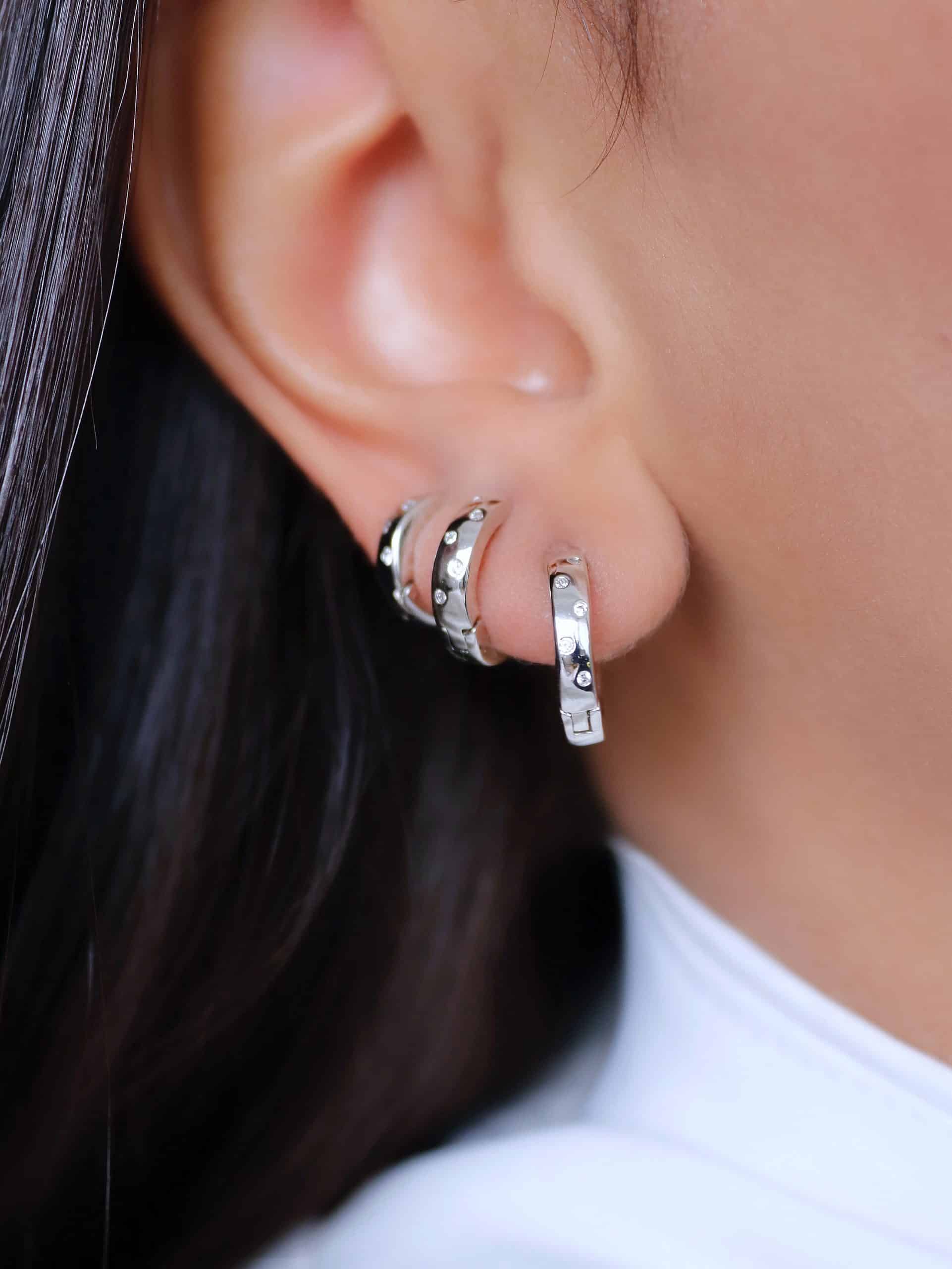 BRINCO ZIRCONIA TRIO FLOR VAZADA A OUTRA CRAVEJADA E PONTO DE LUZ