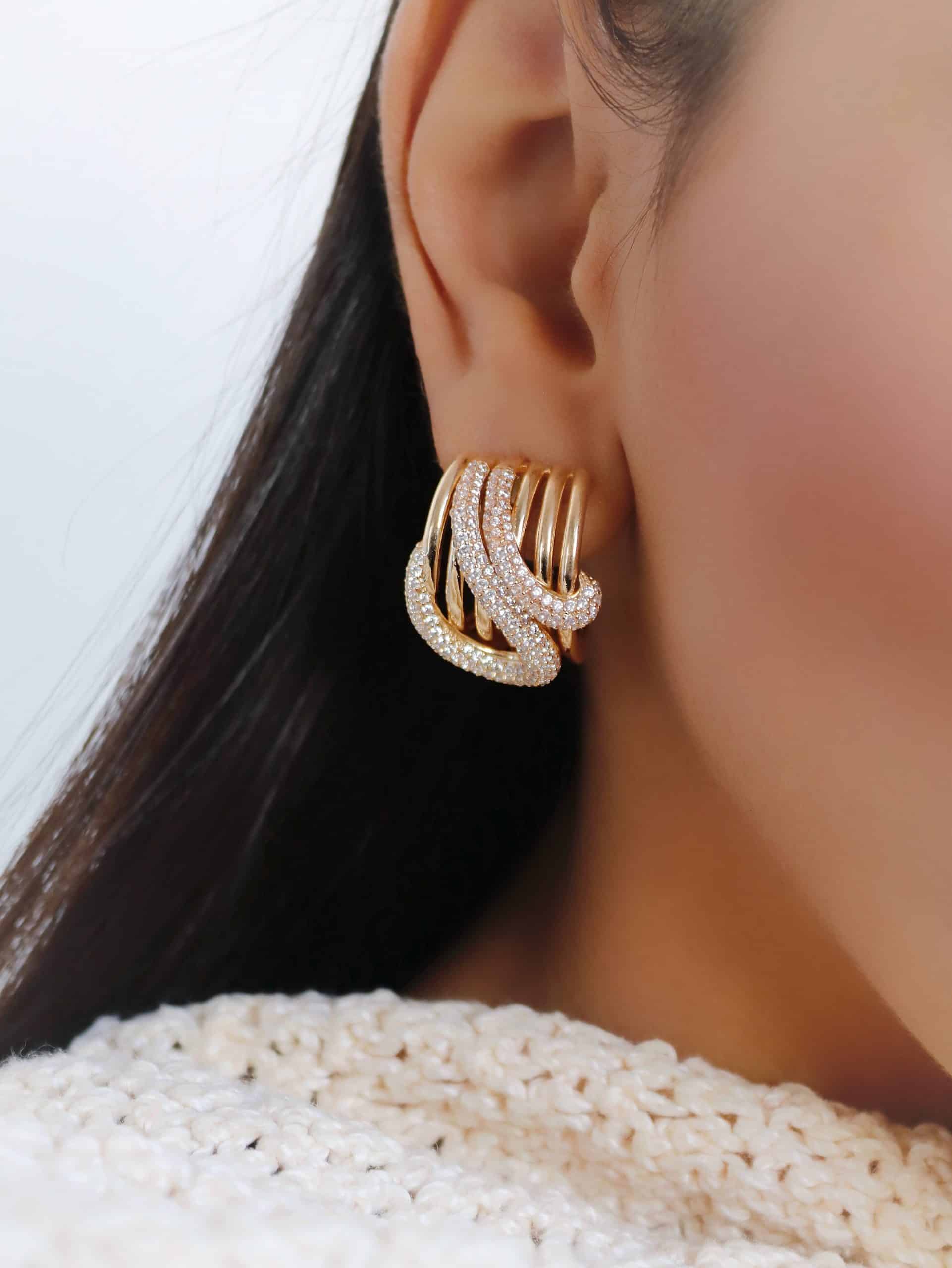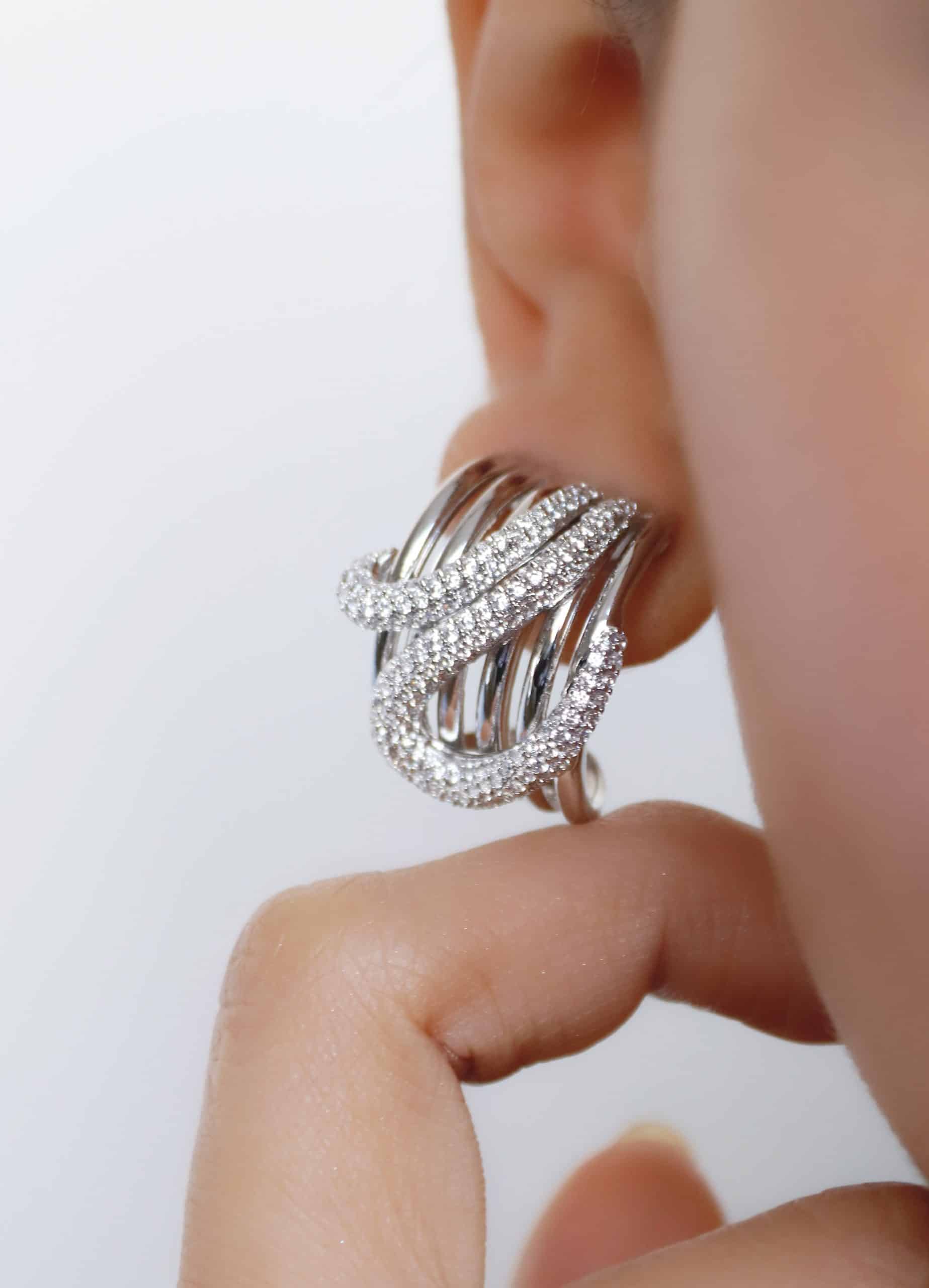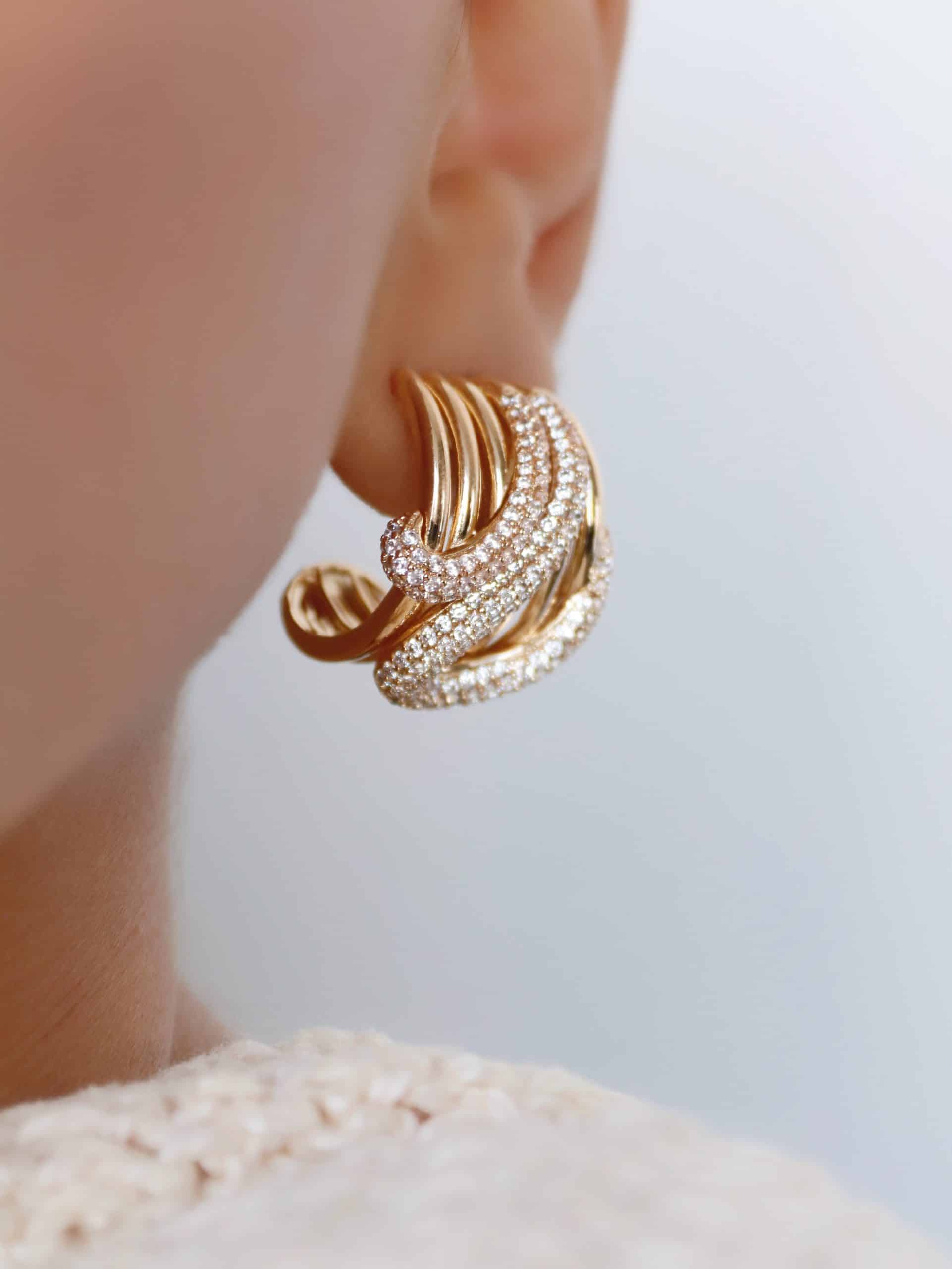 BRINCO ZIRCONIA ONDULADO LISO E UMA PARTE CRAVEJADA 8.4 MM