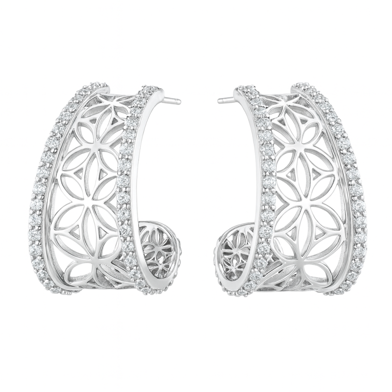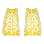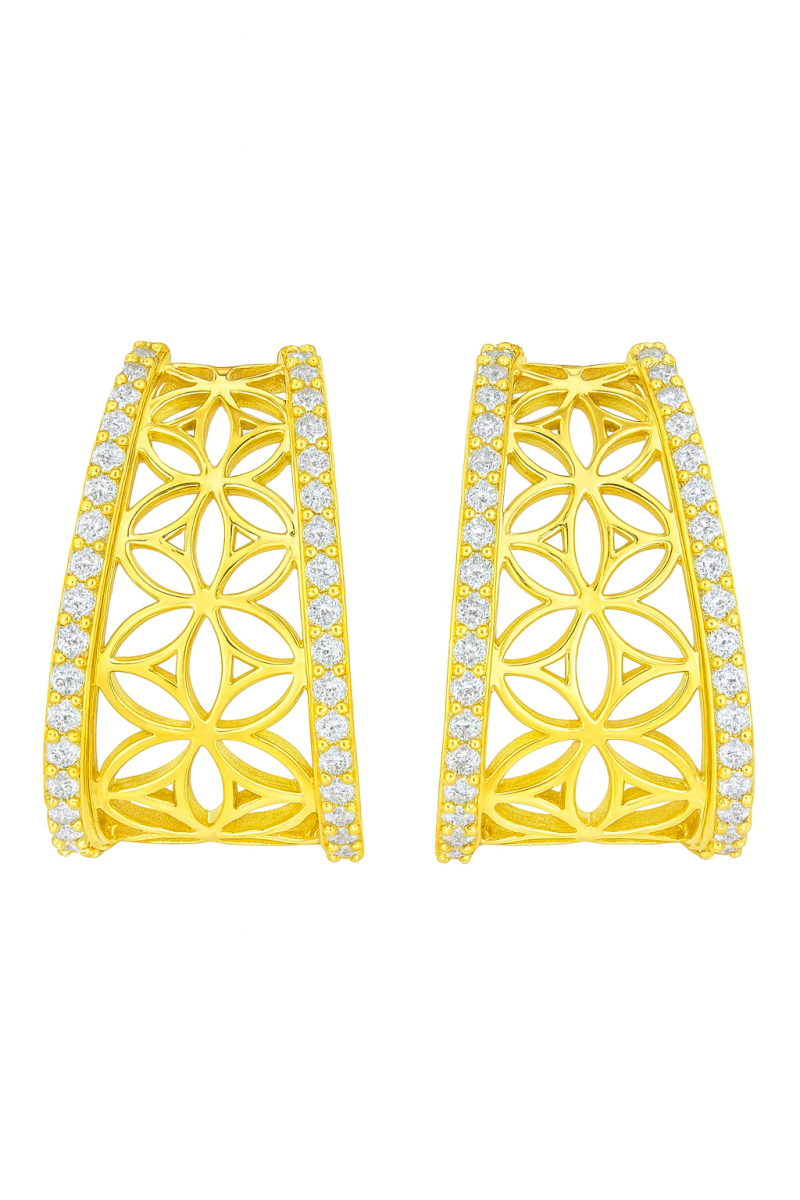 BRINCO ZIRCONIA ARGOLA COM FLORES VAZADAS E DUAS FAIXAS CRAVEJADAS 18.1 MM