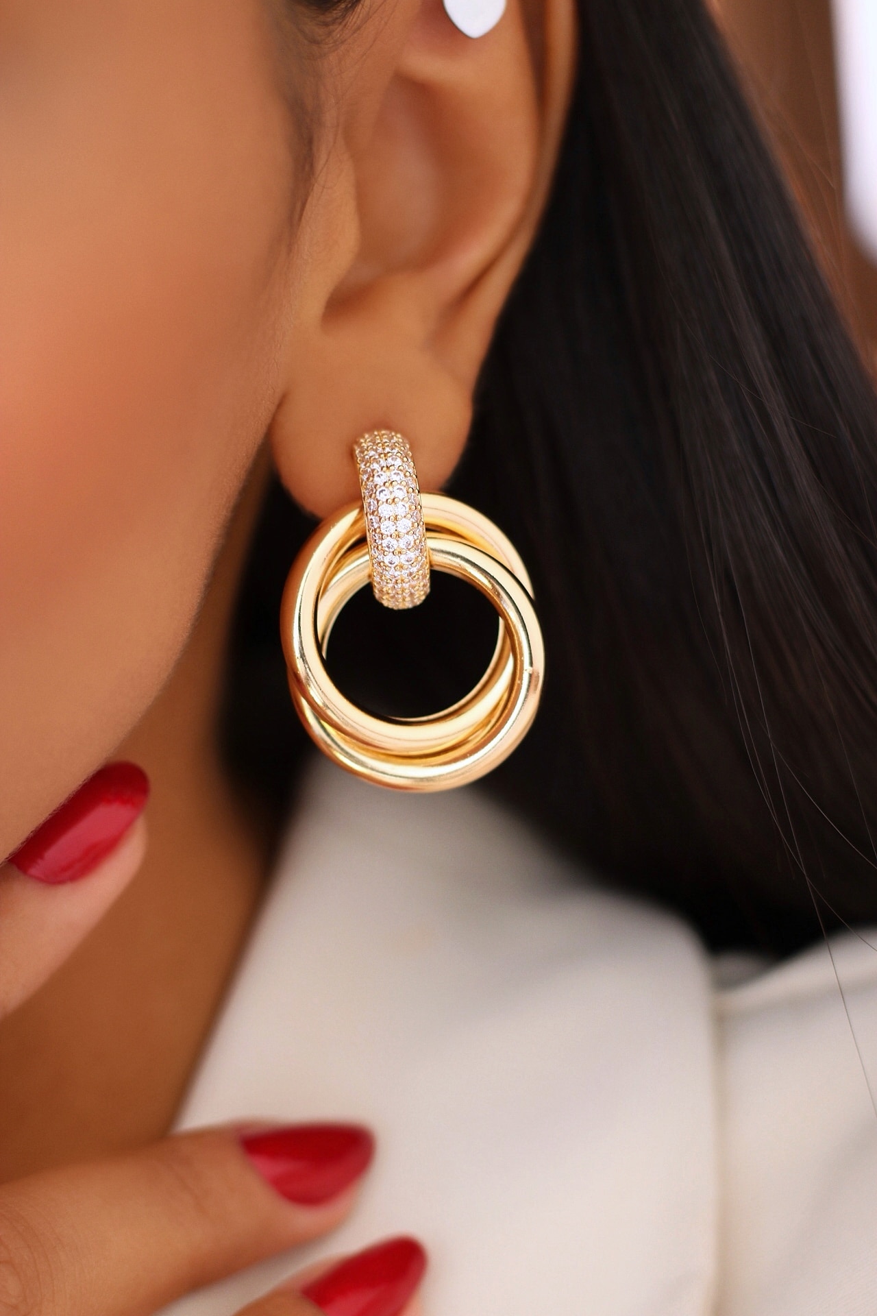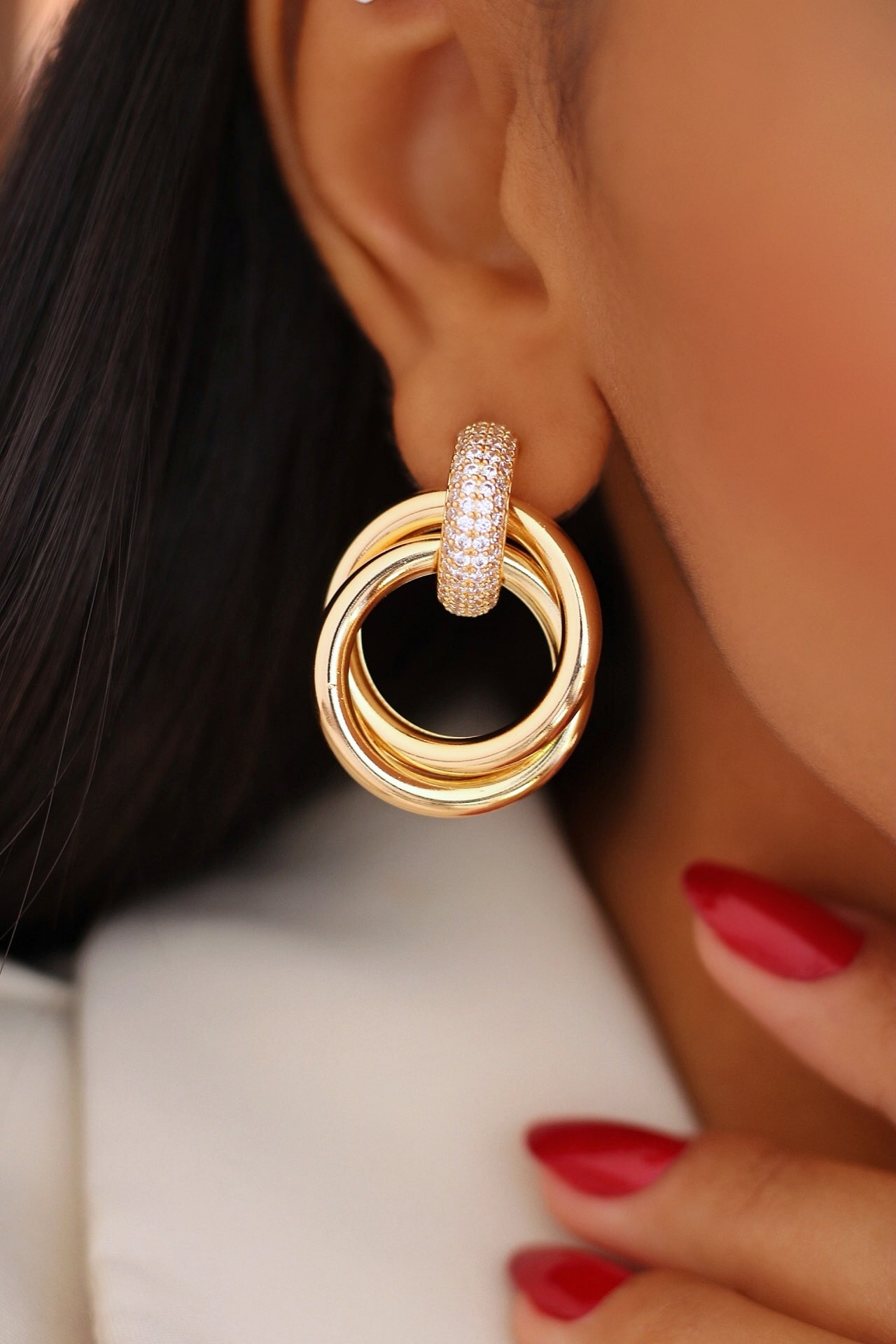 BRINCO ZIRCONIA BASE CRAVEJADA COM DUAS ARGOLAS M 34.6 MM