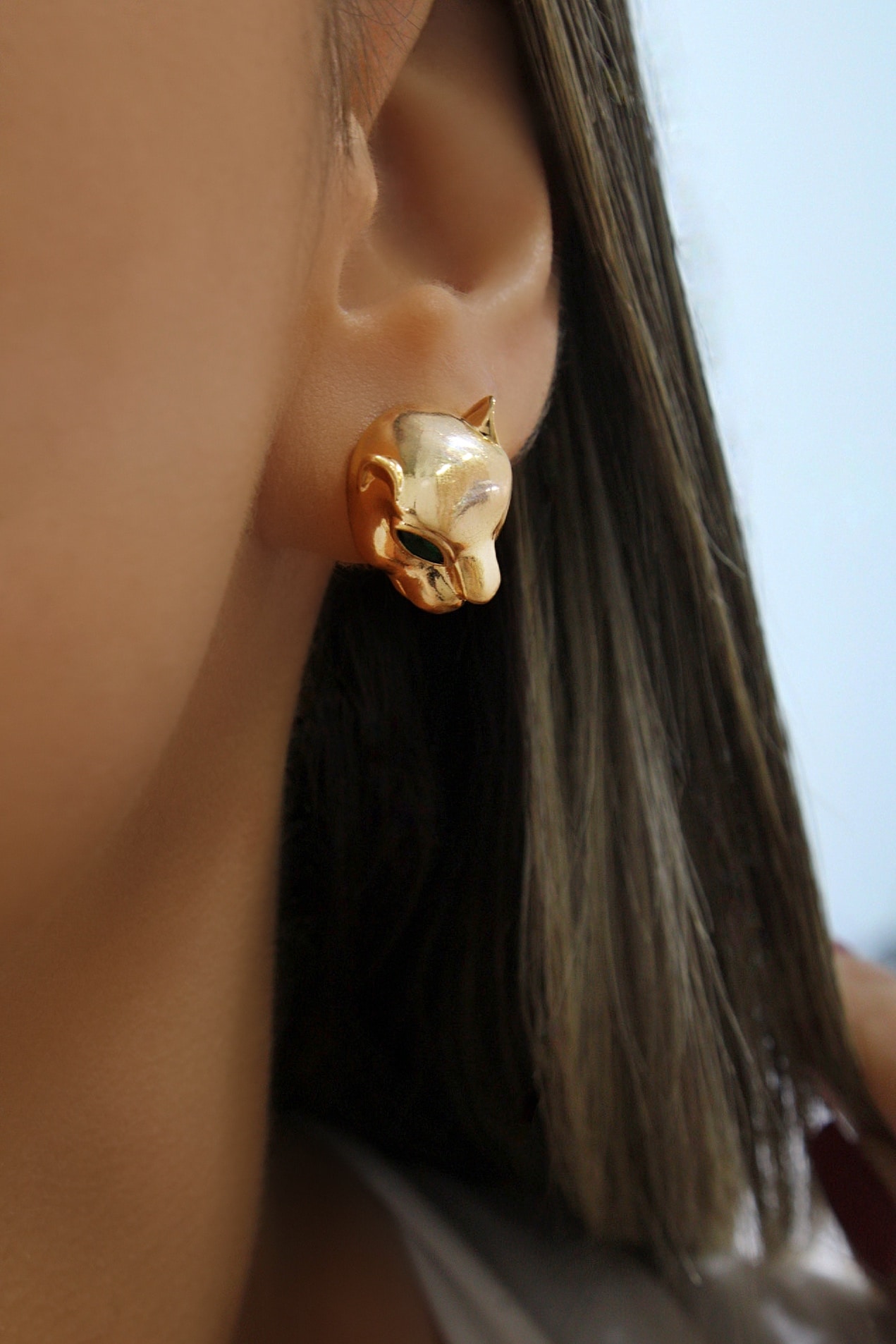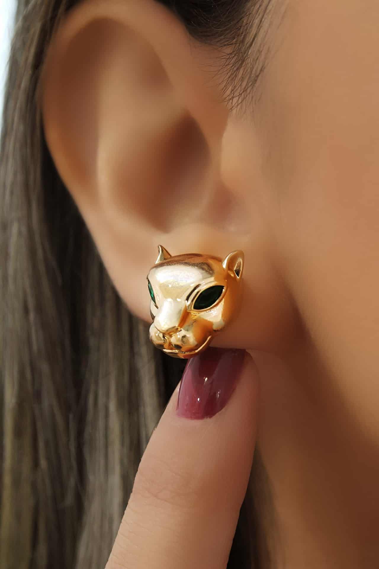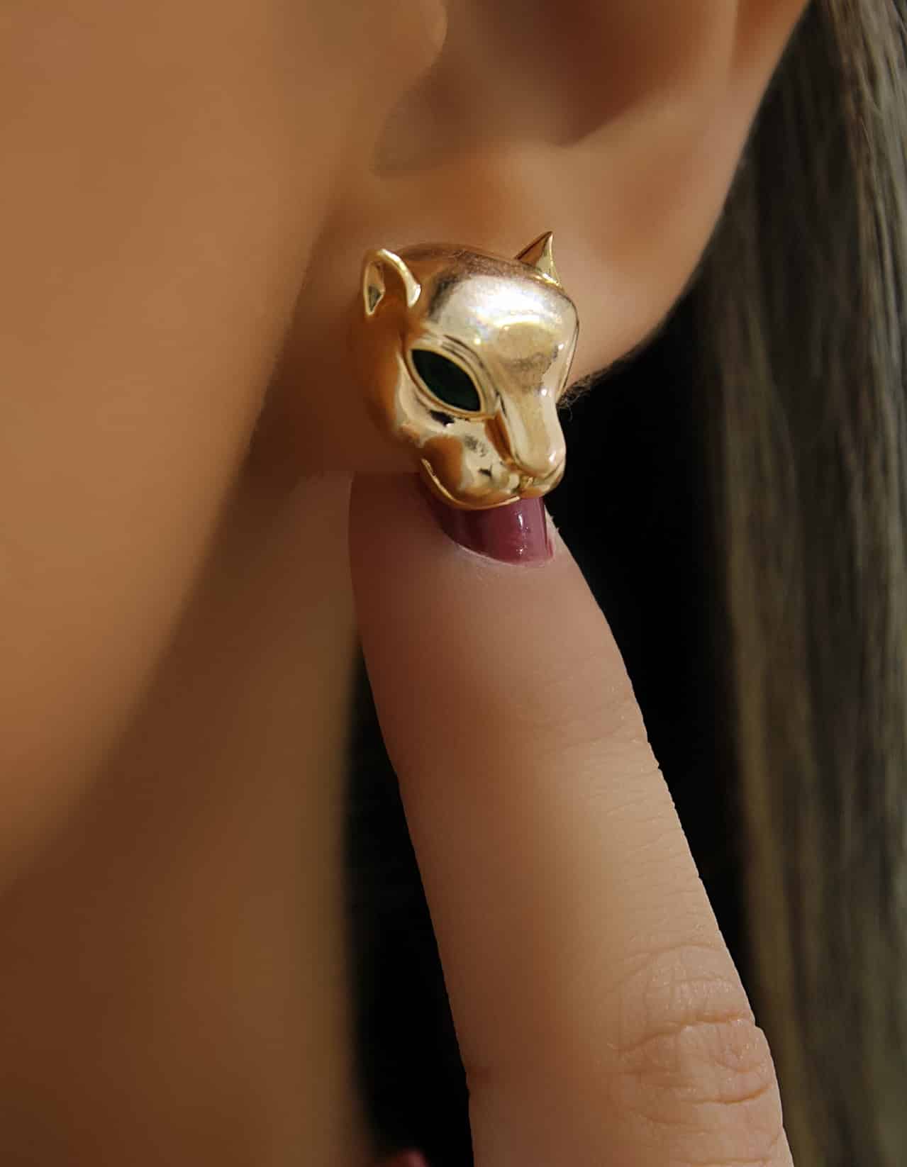 BRINCO ZIRCONIA CABECA DE PANTERA OLHO VERDE