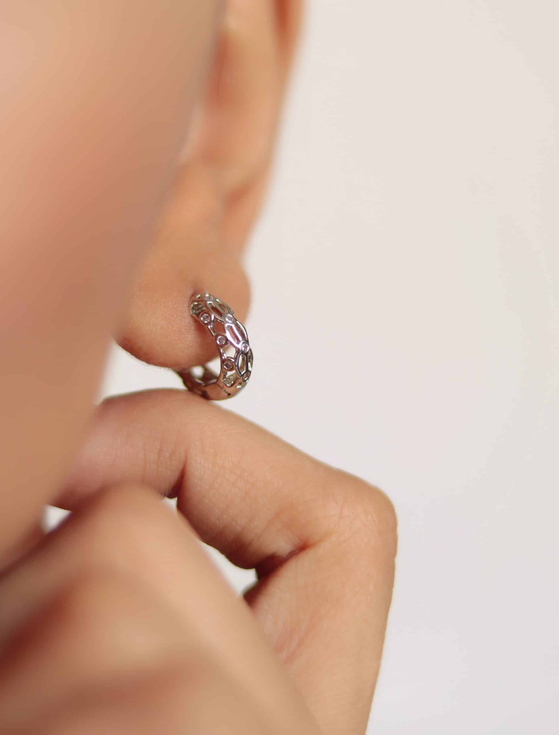 BRINCO ZIRCONIA FORMATO DE ANZOL MEDIO E A LATERAL CRAVEJADA 28.7 MM