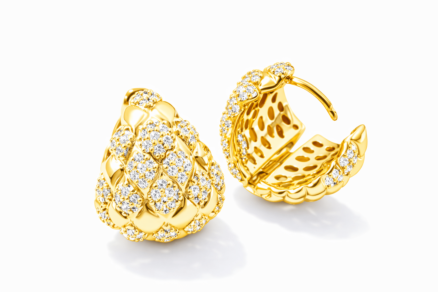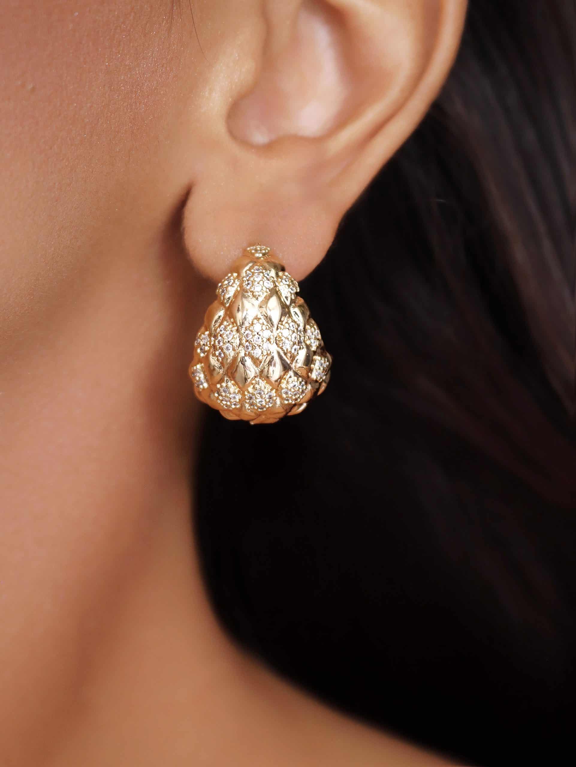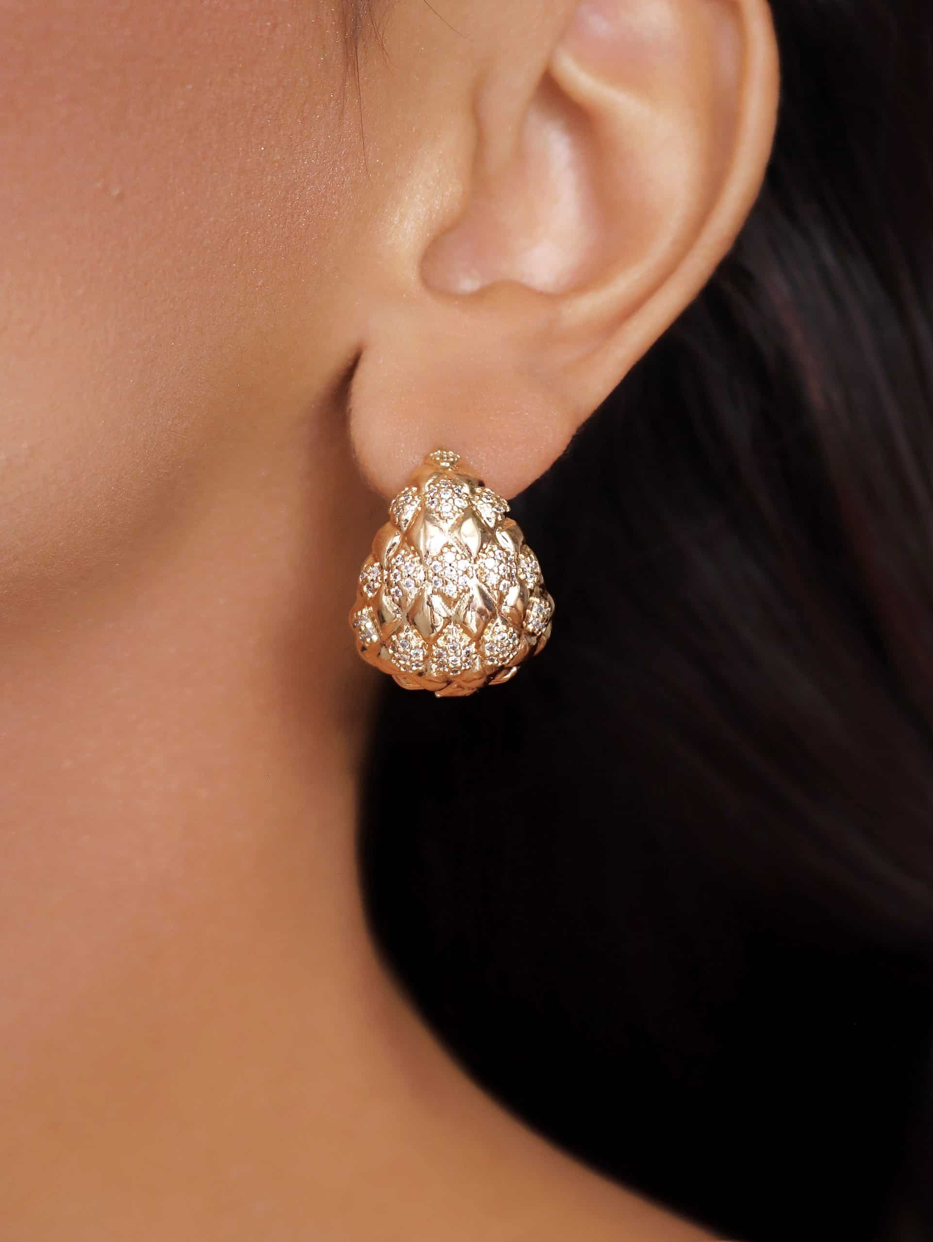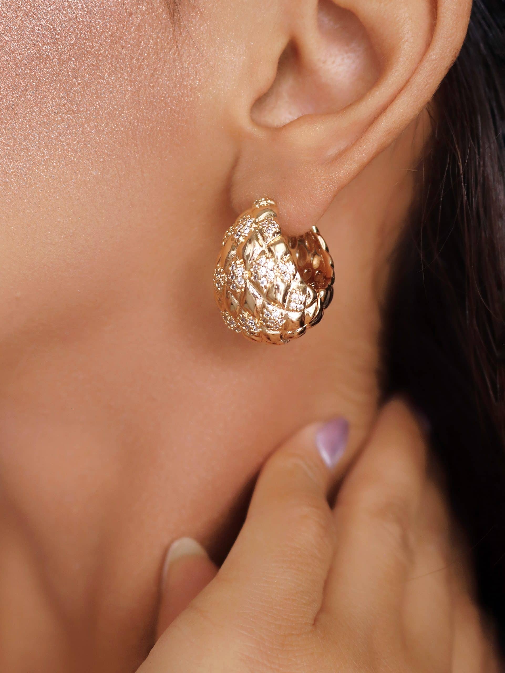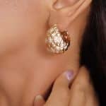 BRINCO ZIRCONIA CLICK TRIANGULO ABAULADO E VAZADO POR DENTRO