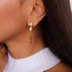BRINCO PEROLA FLOR COM PETALAS CRAVEJADAS ENTRELACADAS 19.0 MM