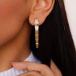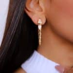 BRINCO ZIRCONIA ARGOLA COM FLORES VAZADAS E DUAS FAIXAS CRAVEJADAS 18.1 MM
