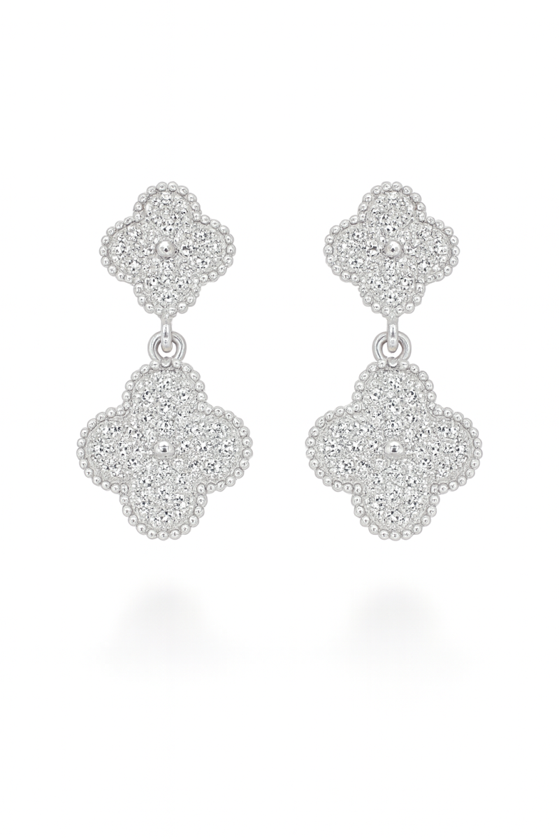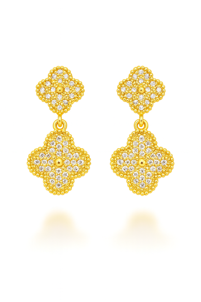 BRINCO ZIRCONIA COM DUAS FLORES CRAVEJADAS TAMANHOS DIFERENTES