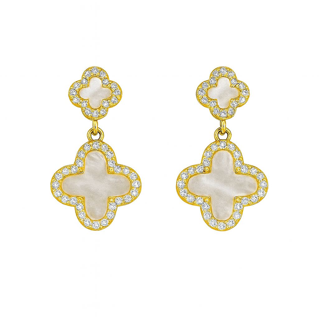 CONJUNTO ZIRCONIA COM UMA FLOR RESINA E A OUTRA TODA CRAVEJADA MAIOR CORES 40CM