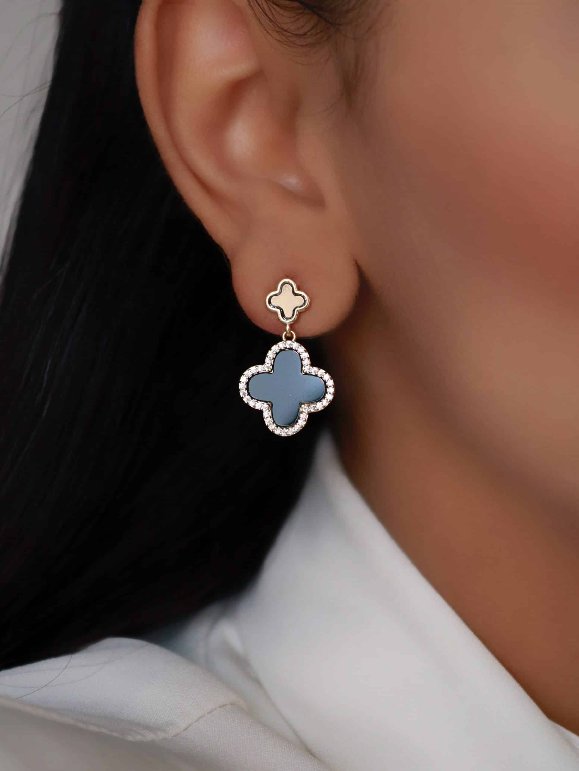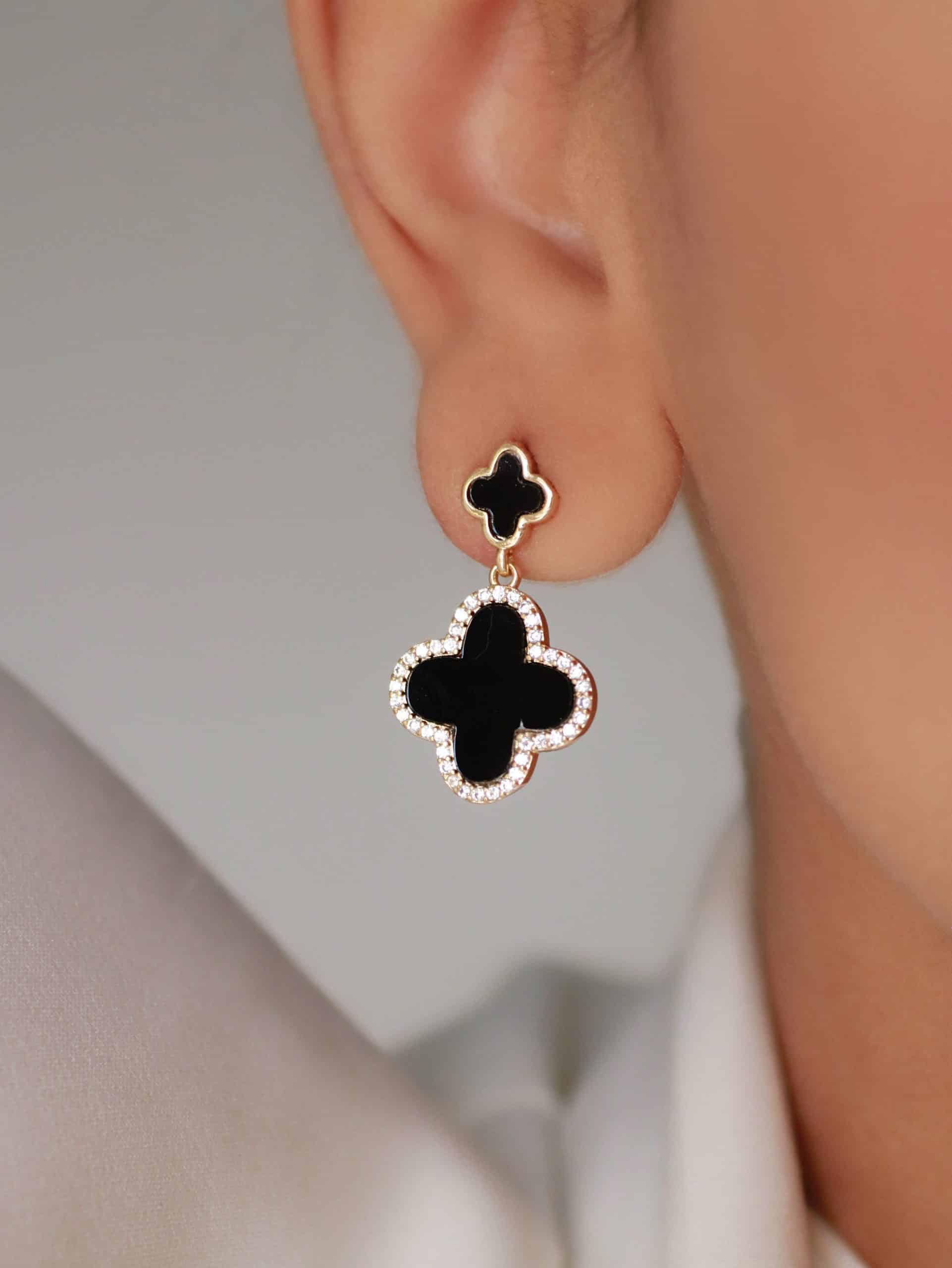 BRINCO ZIRCONIA COM DUAS FLORES UMA PEQUENA E OUTRA MAIOR PENDURADA RESINA 24.6 MM