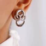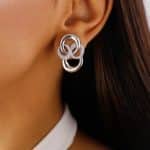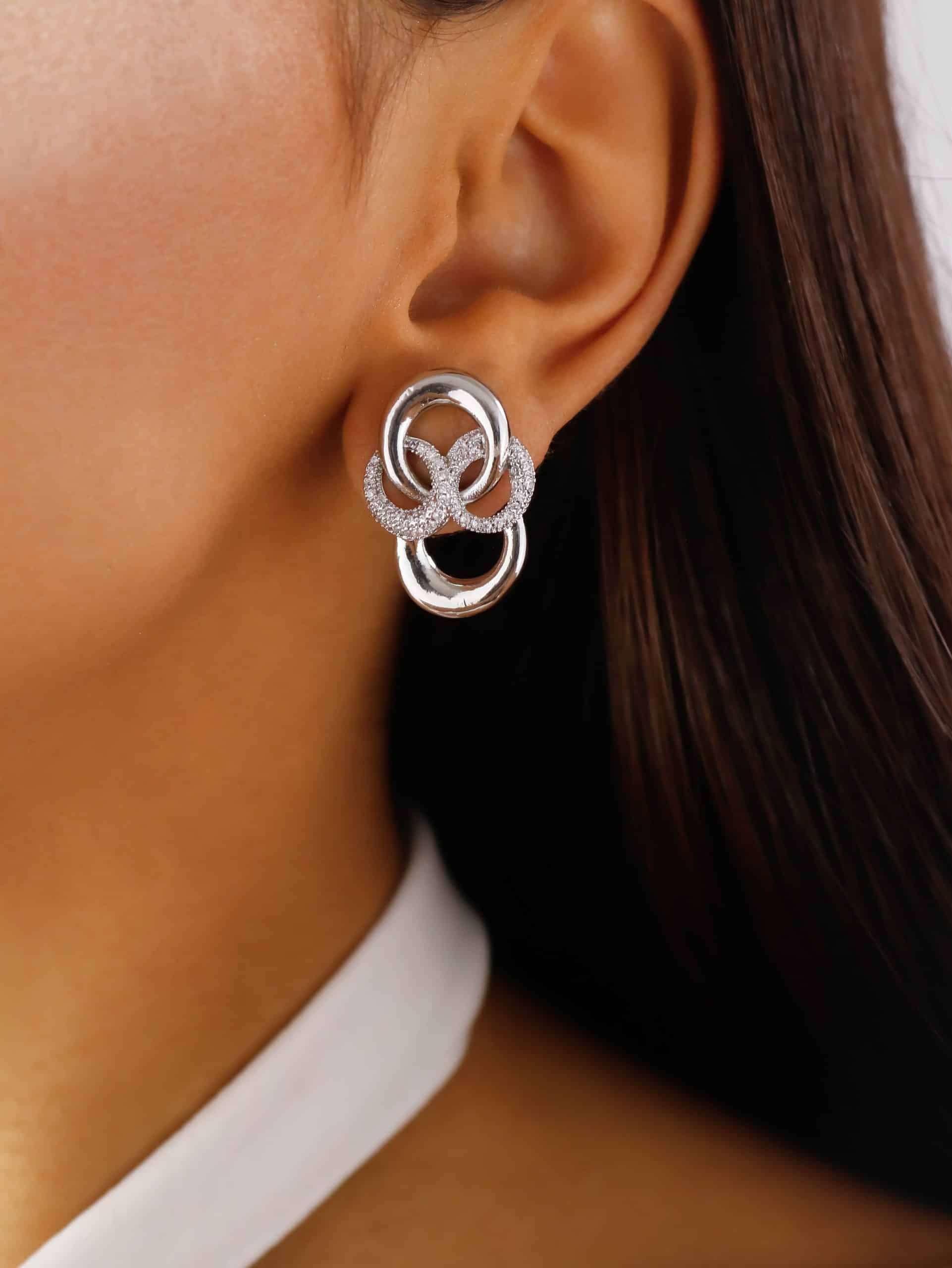 BRINCO ZIRCONIA DUAS FLORES SENDO UMA PENDURADA