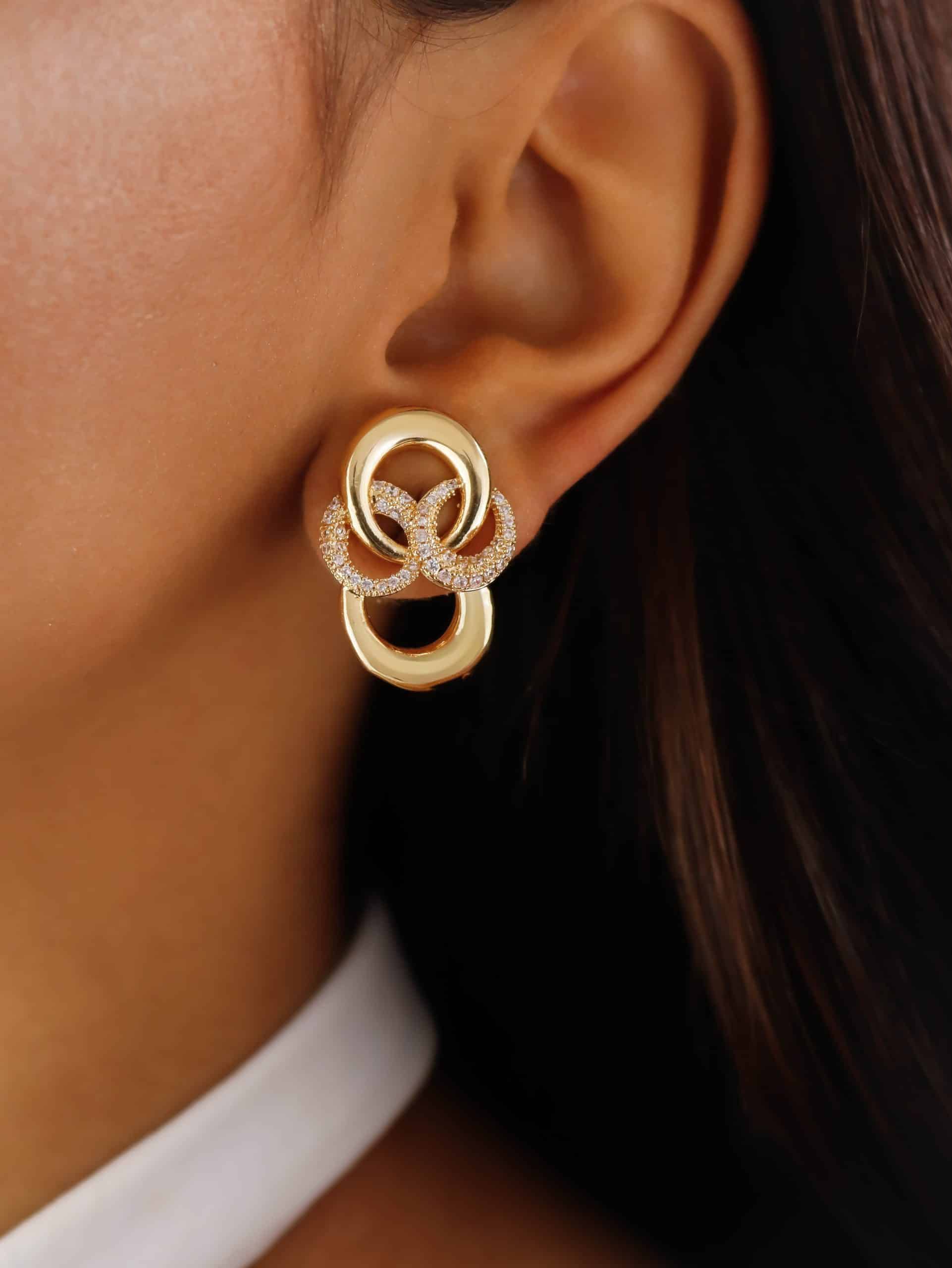 BRINCO ZIRCONIA COM DUAS FAIXAS LISAS E A OUTRA CRAVEJADA 21.1 MM