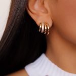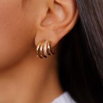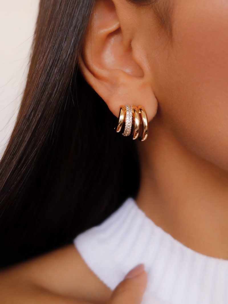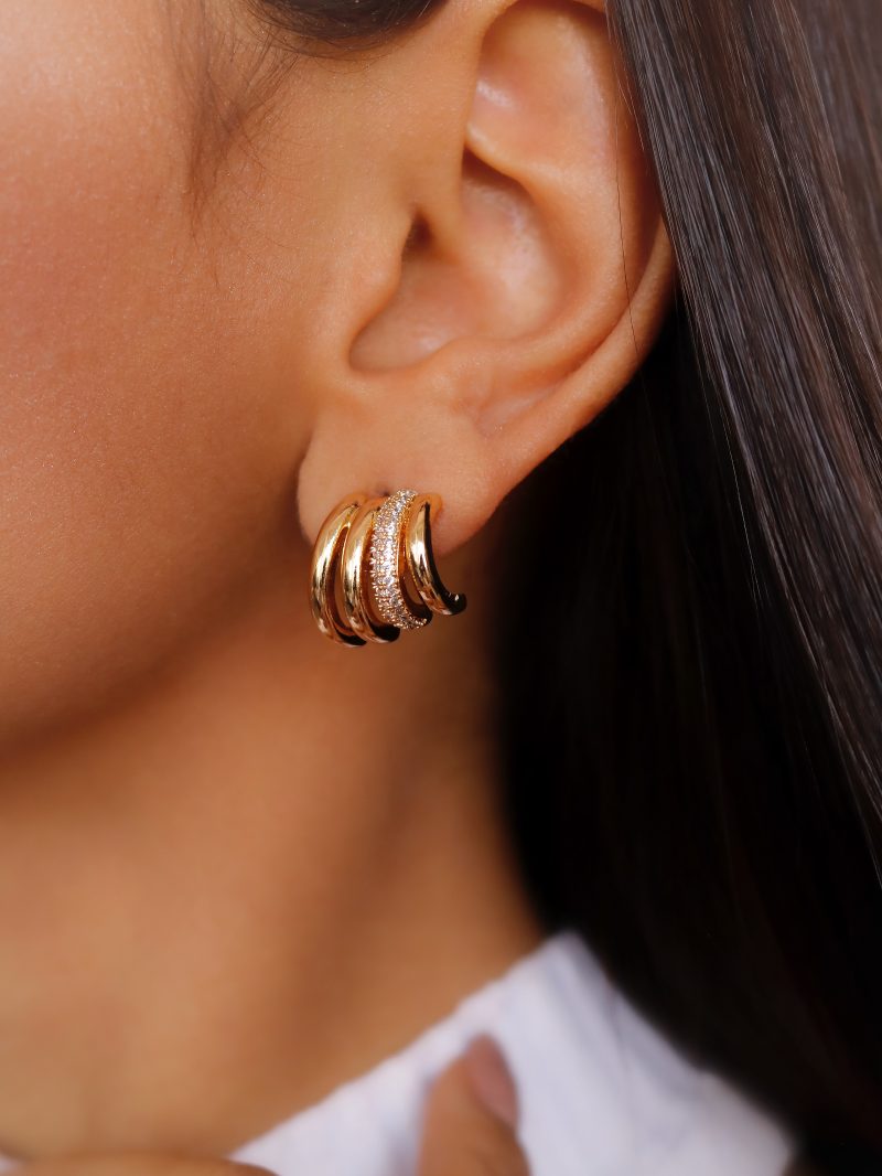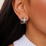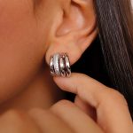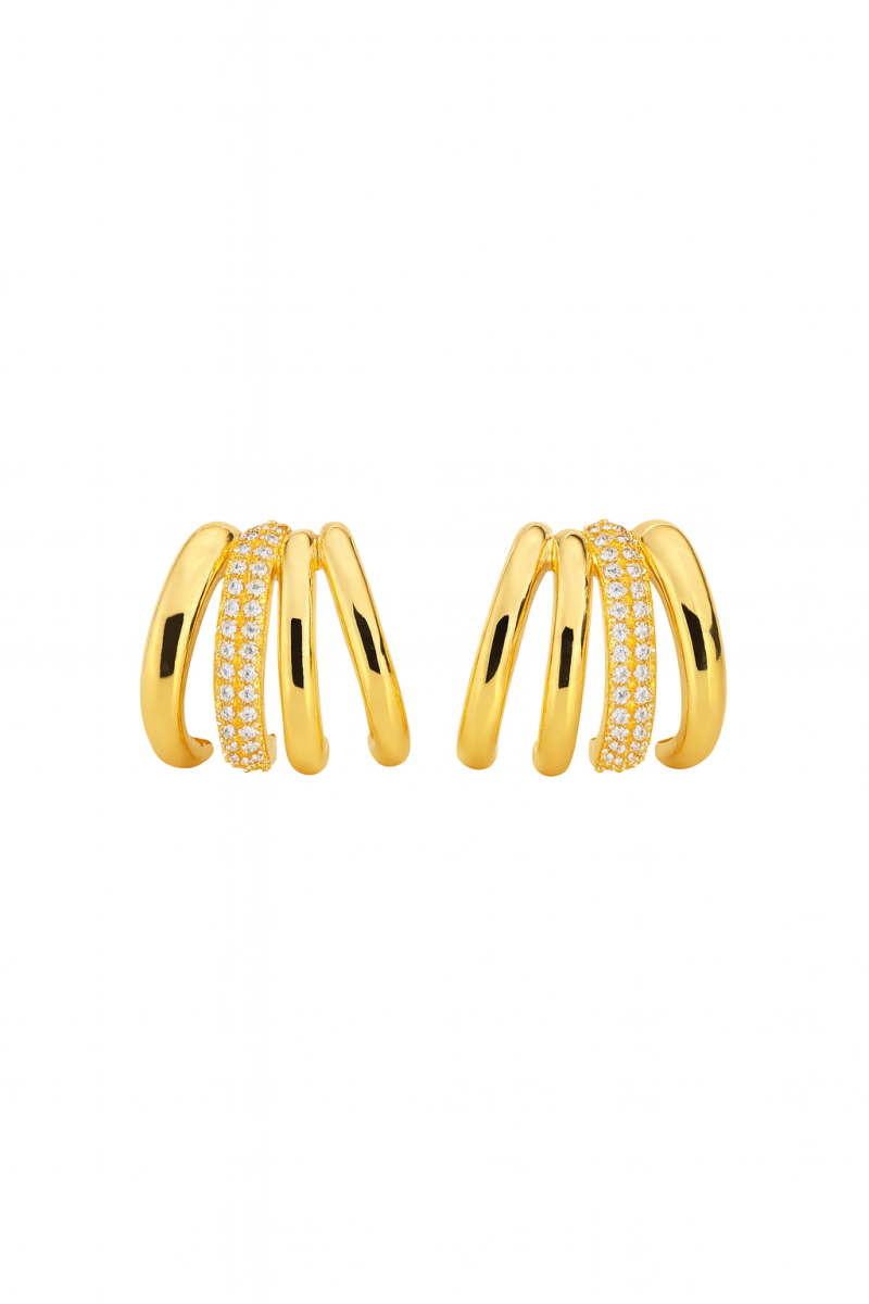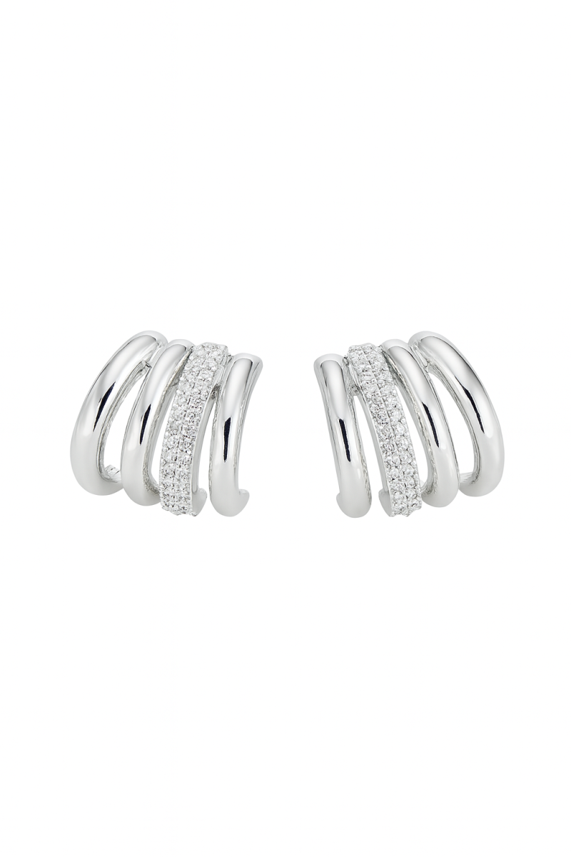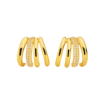 BRINCO ZIRCONIA ARGOLA COM FLORES VAZADAS E DUAS FAIXAS CRAVEJADAS 18.1 MM