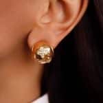 BRINCO MADRE PEROLA COM FLOR CRAVEJADA EAR ROCK PEQUENO 15.0 MM