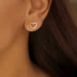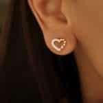 BRINCO ZIRCONIA CORACAO METADE CRAVEJADO E OUTRA COM BOLINHAS LISAS