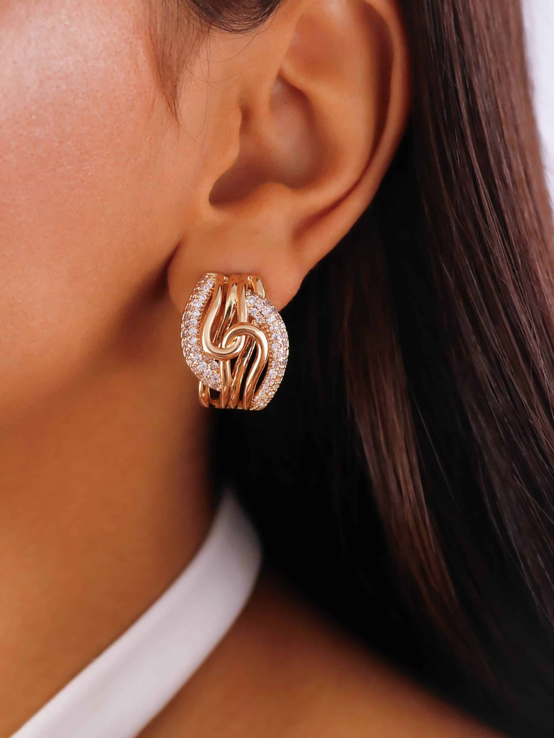 BRINCO ZIRCONIA METADE DE UMA FLOR TODA CRAVEJADA 21.1 MM