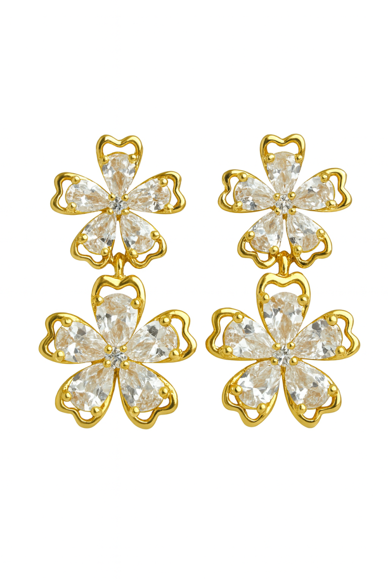BRINCO ZIRCONIA DUAS FLORES SENDO UMA PENDURADA