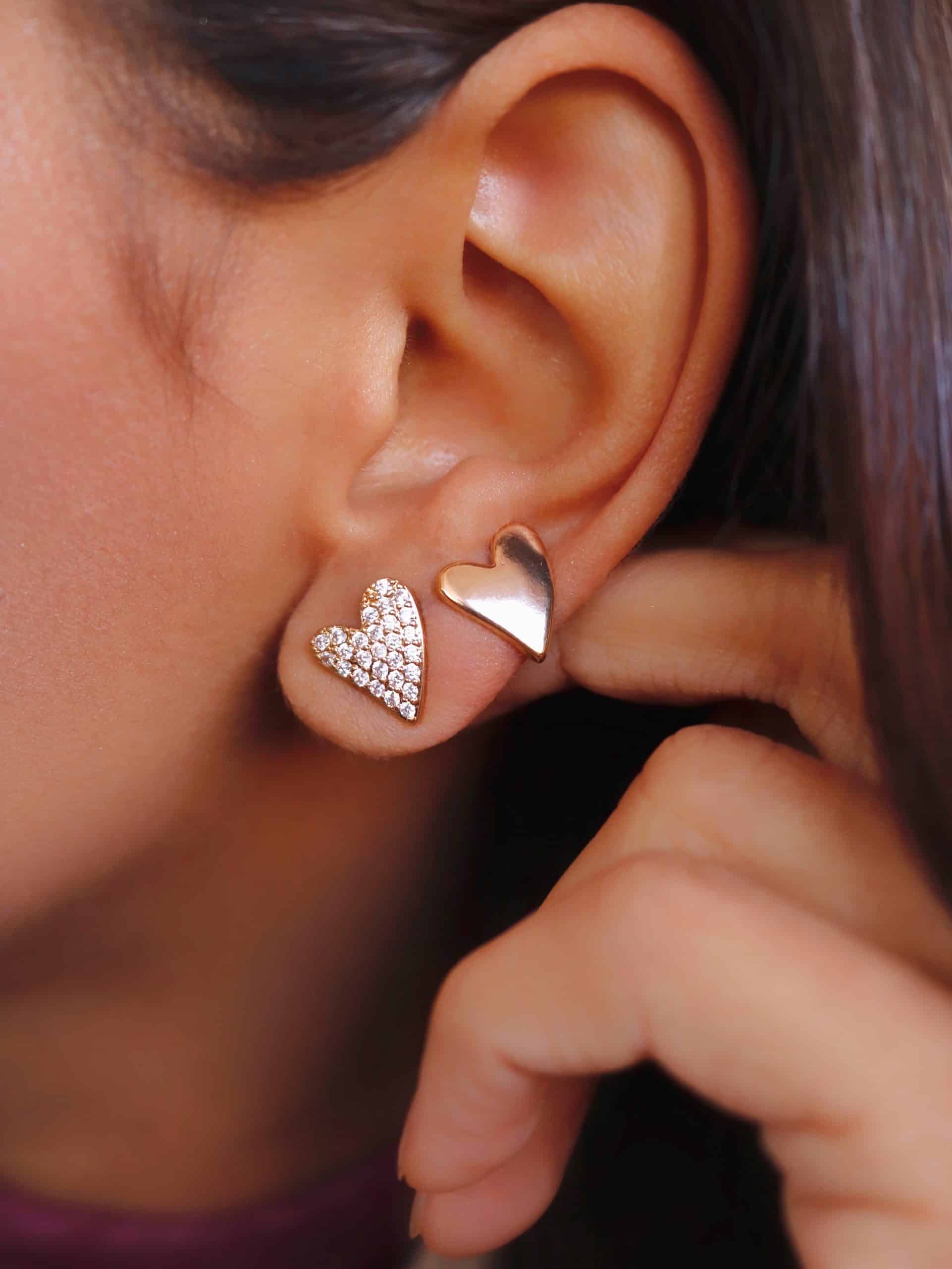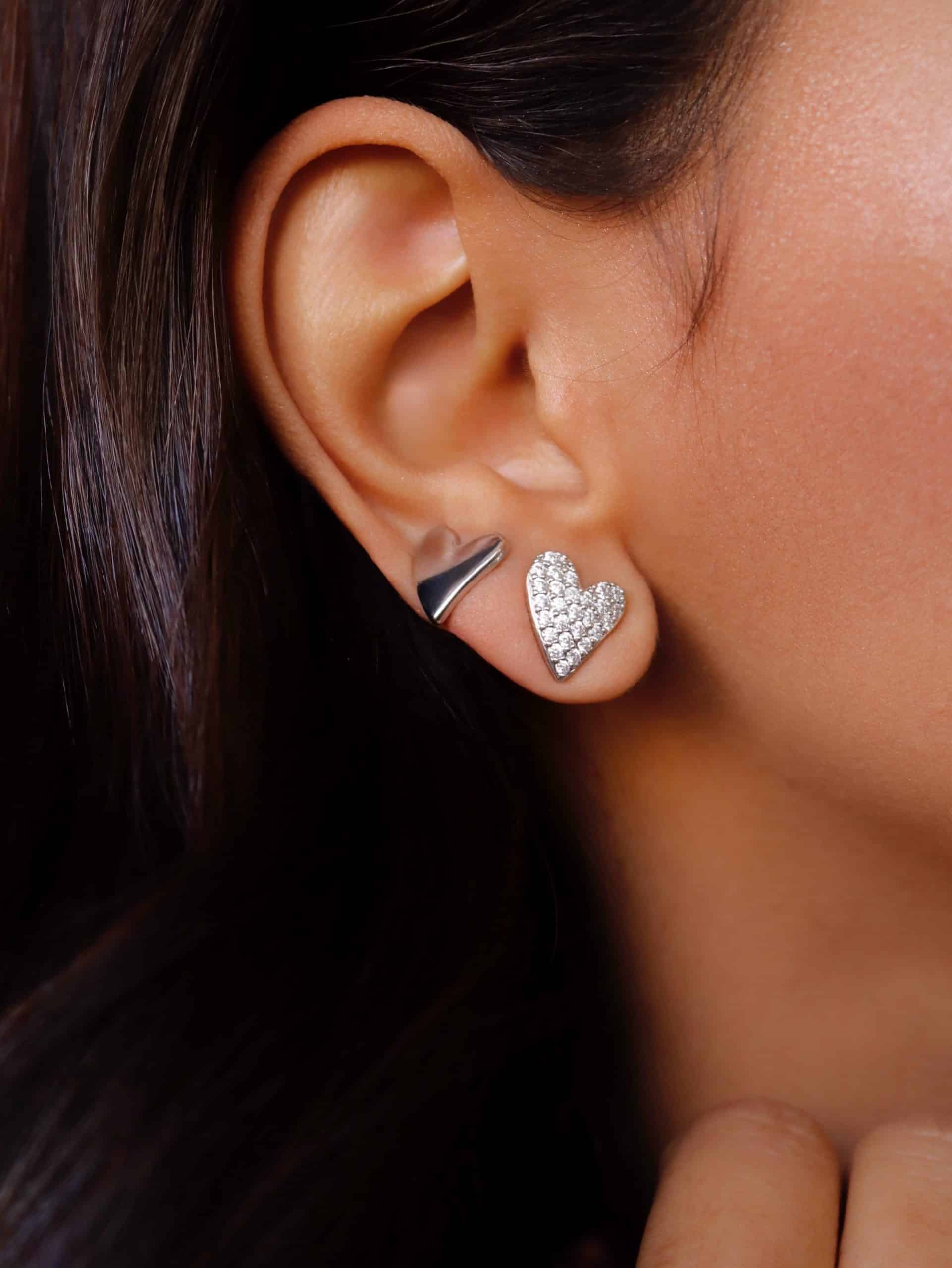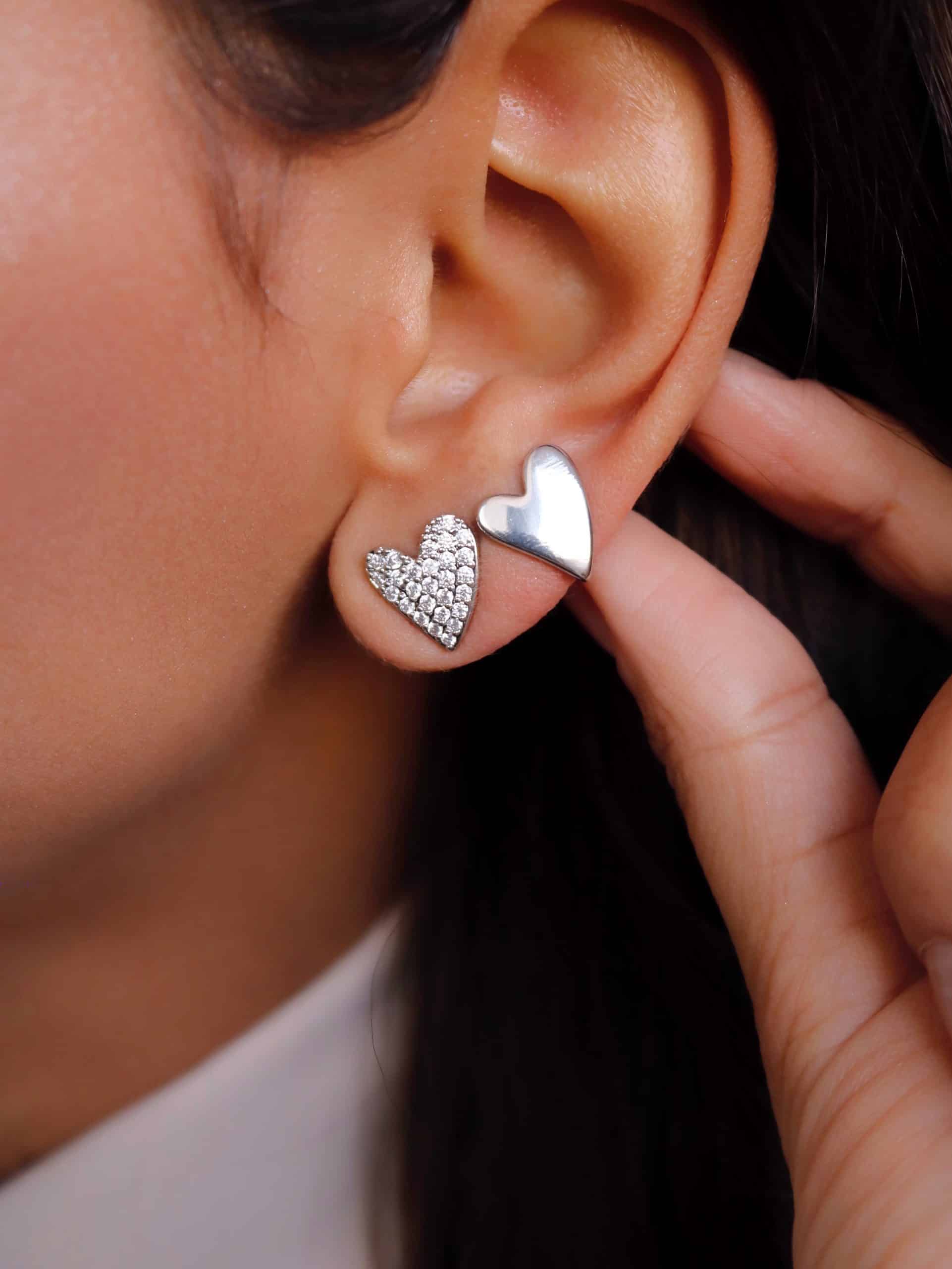 BRINCO ZIRCONIA DUPLO CORACAO CURVADO LISO E CRAVEJADO 13.1 MM