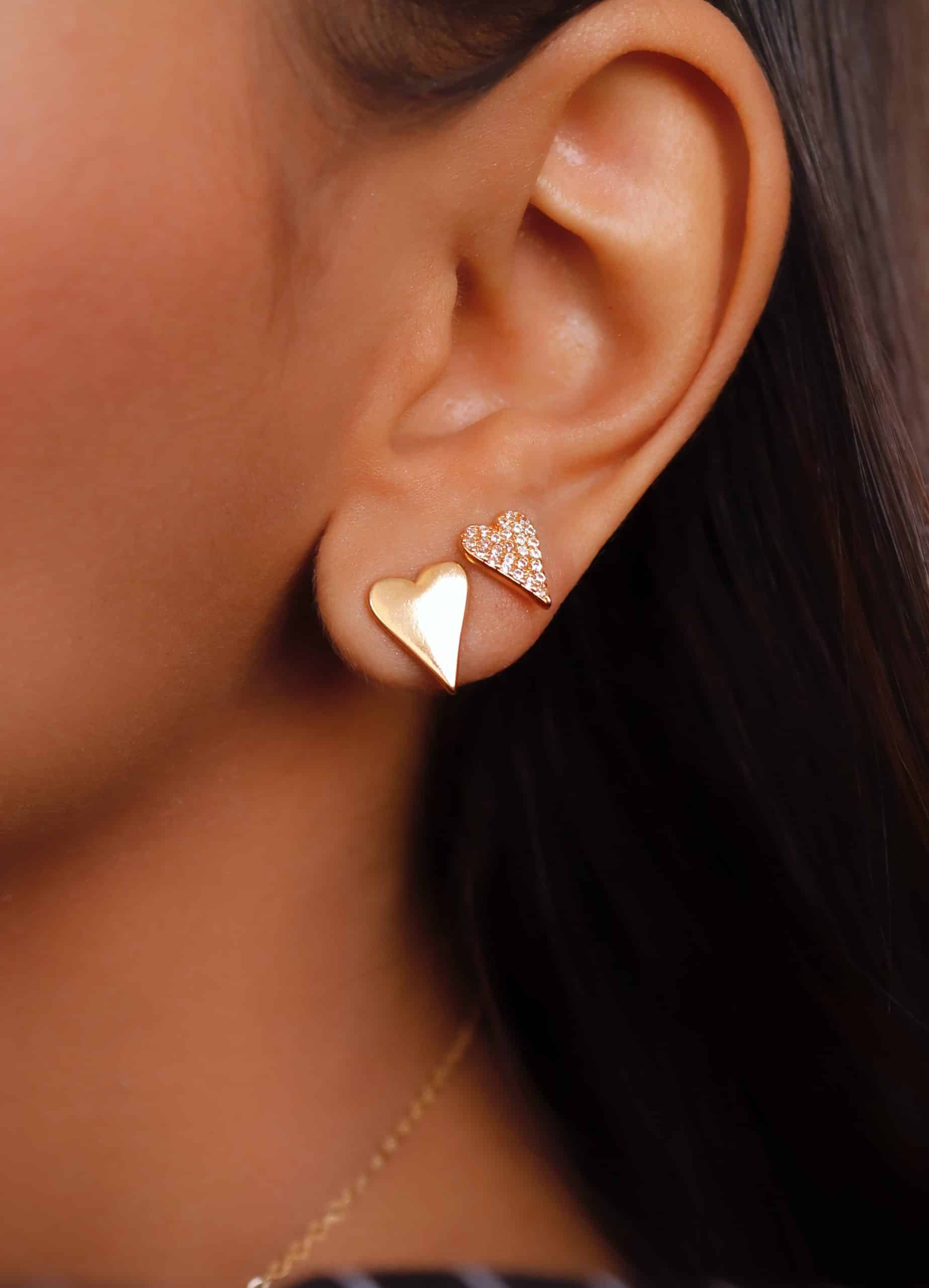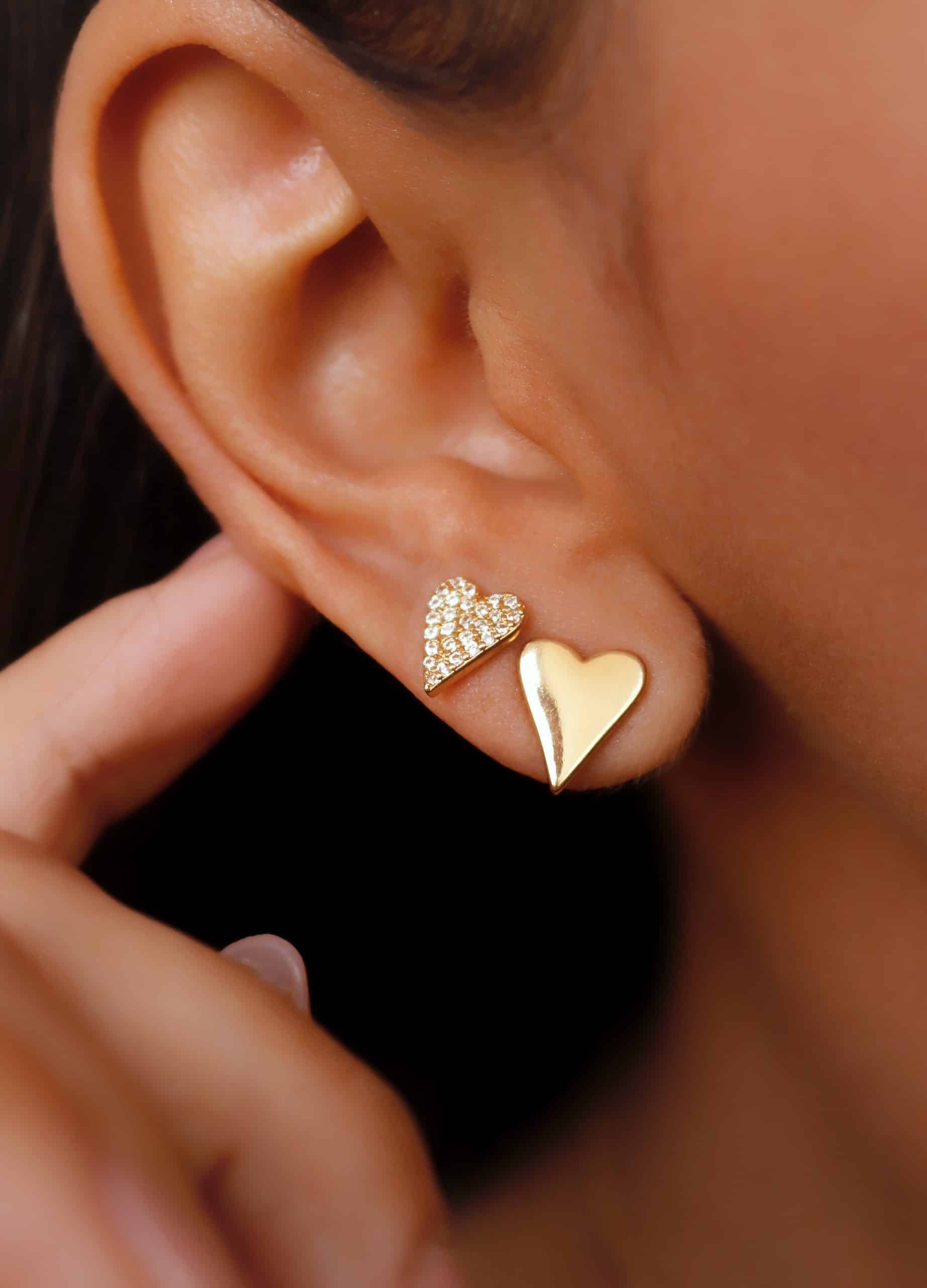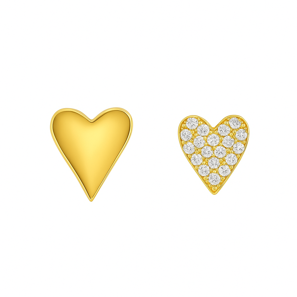 BRINCO ZIRCONIA DUPLO CORACAO LISO E CRAVEJADO 10.7 MM