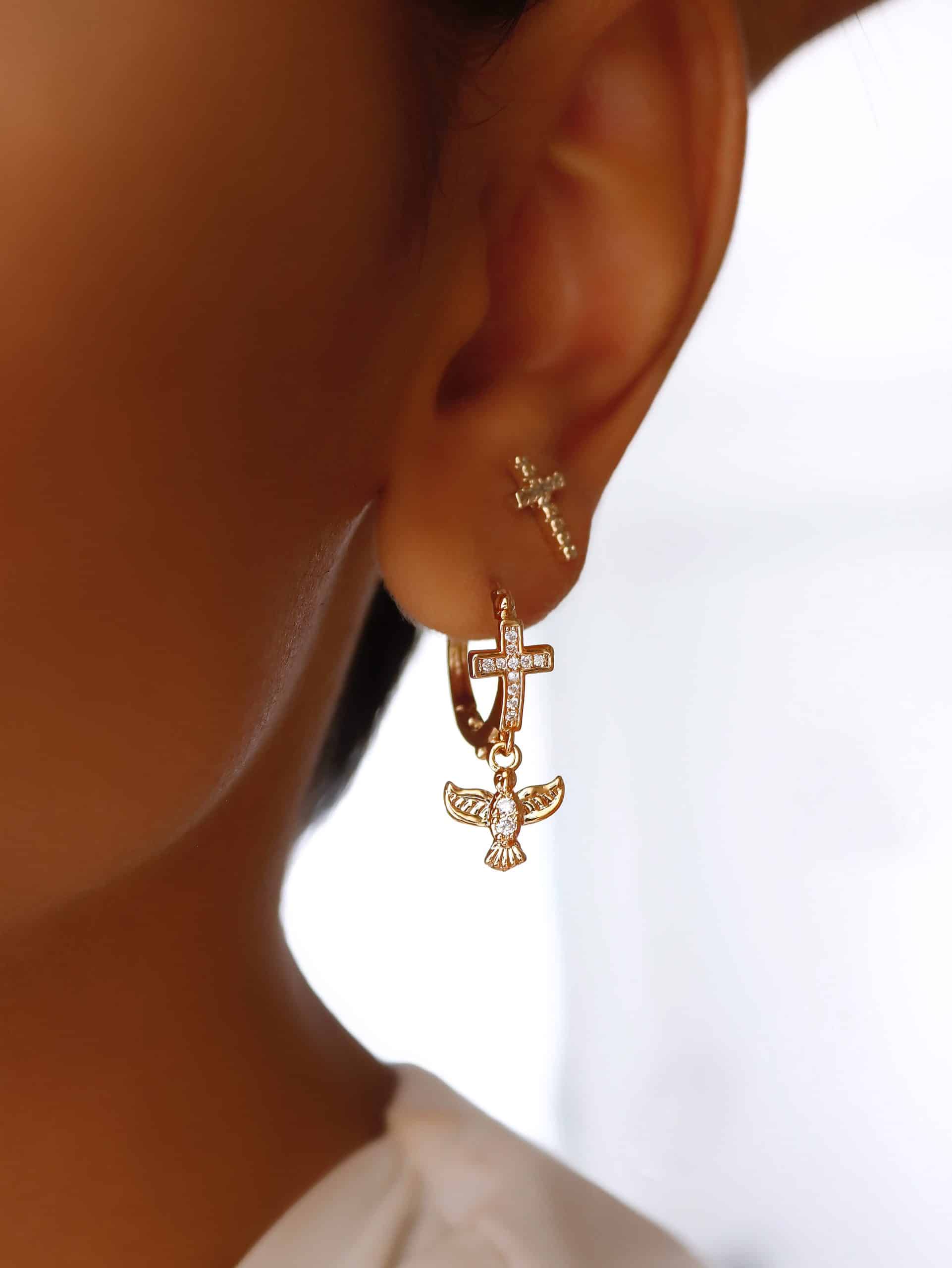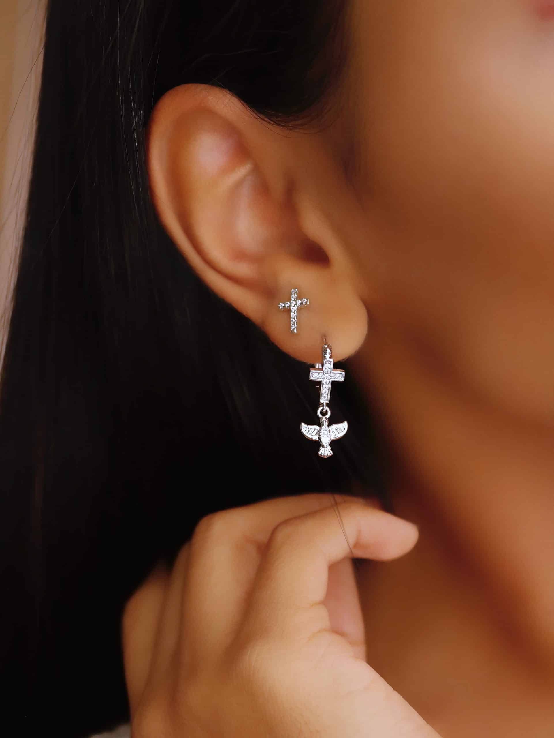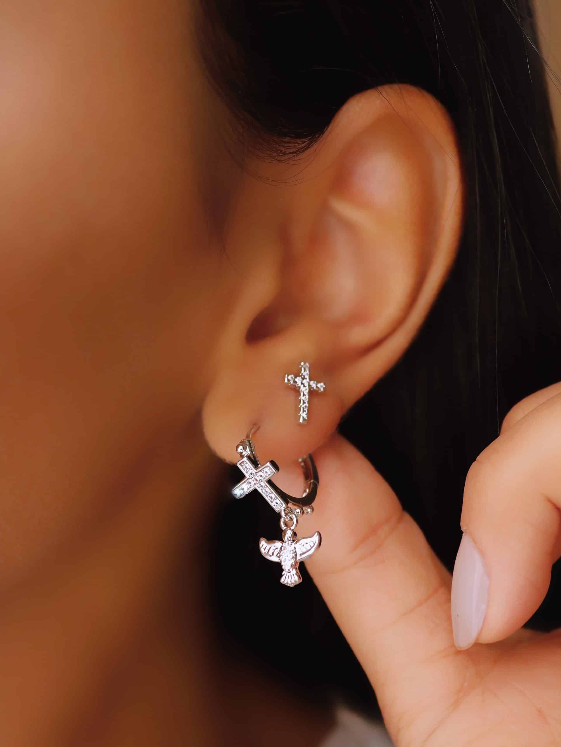 BRINCO ZIRCONIA DUPLO SEMI ARGOLA CRUZ ESPIRITO SANTO SEGUNDO FURO CRUZ CRAVEJADA