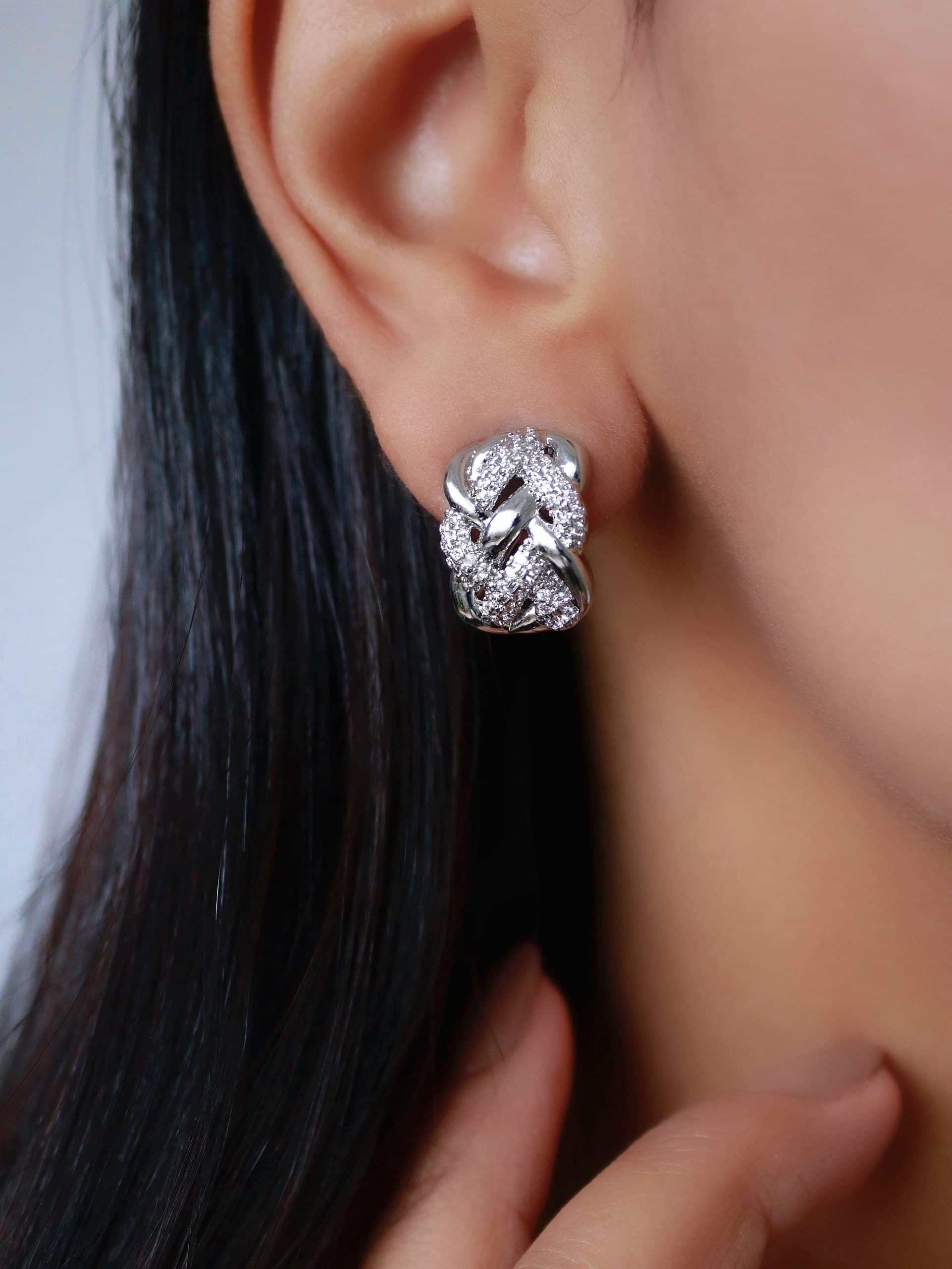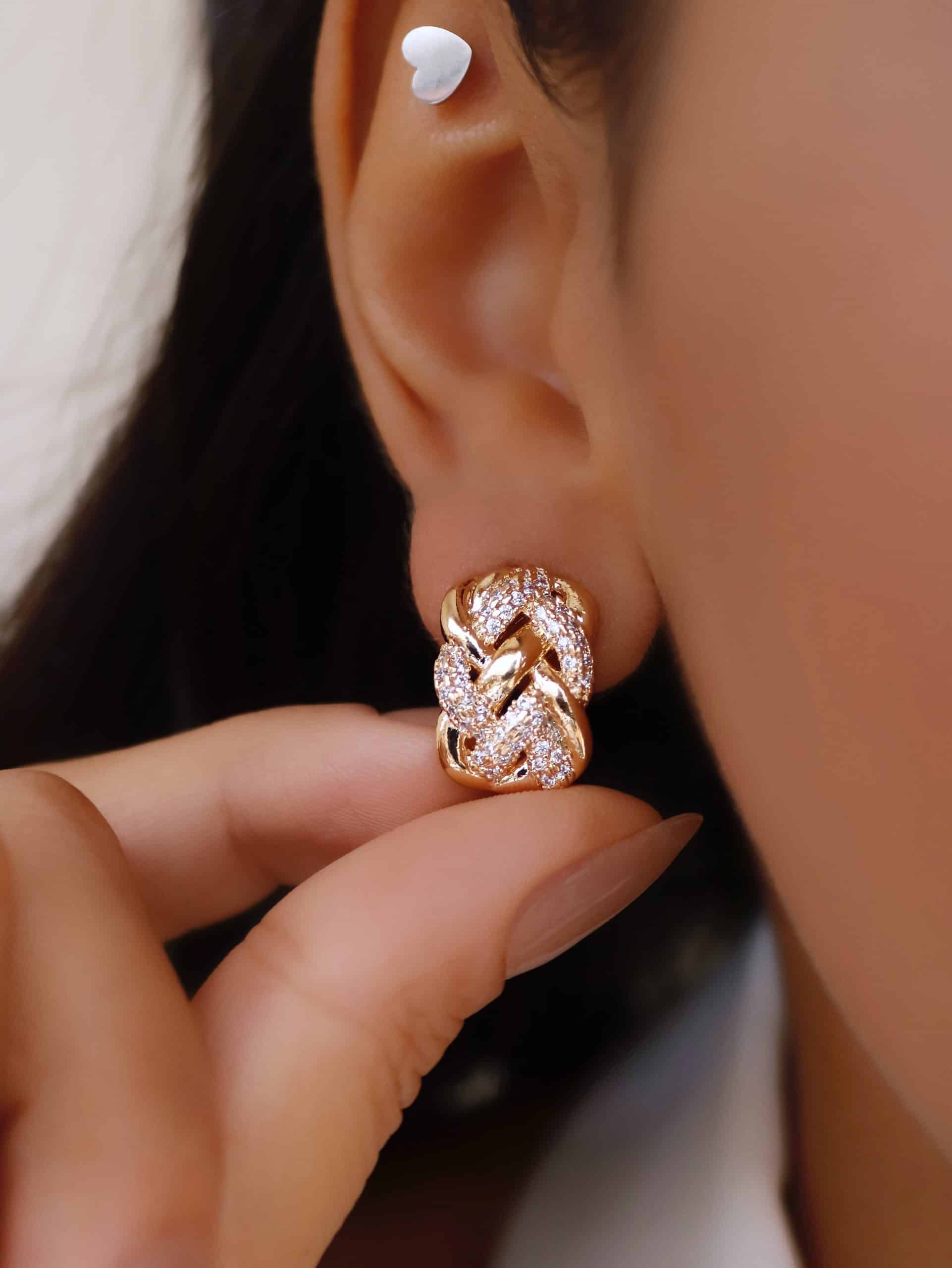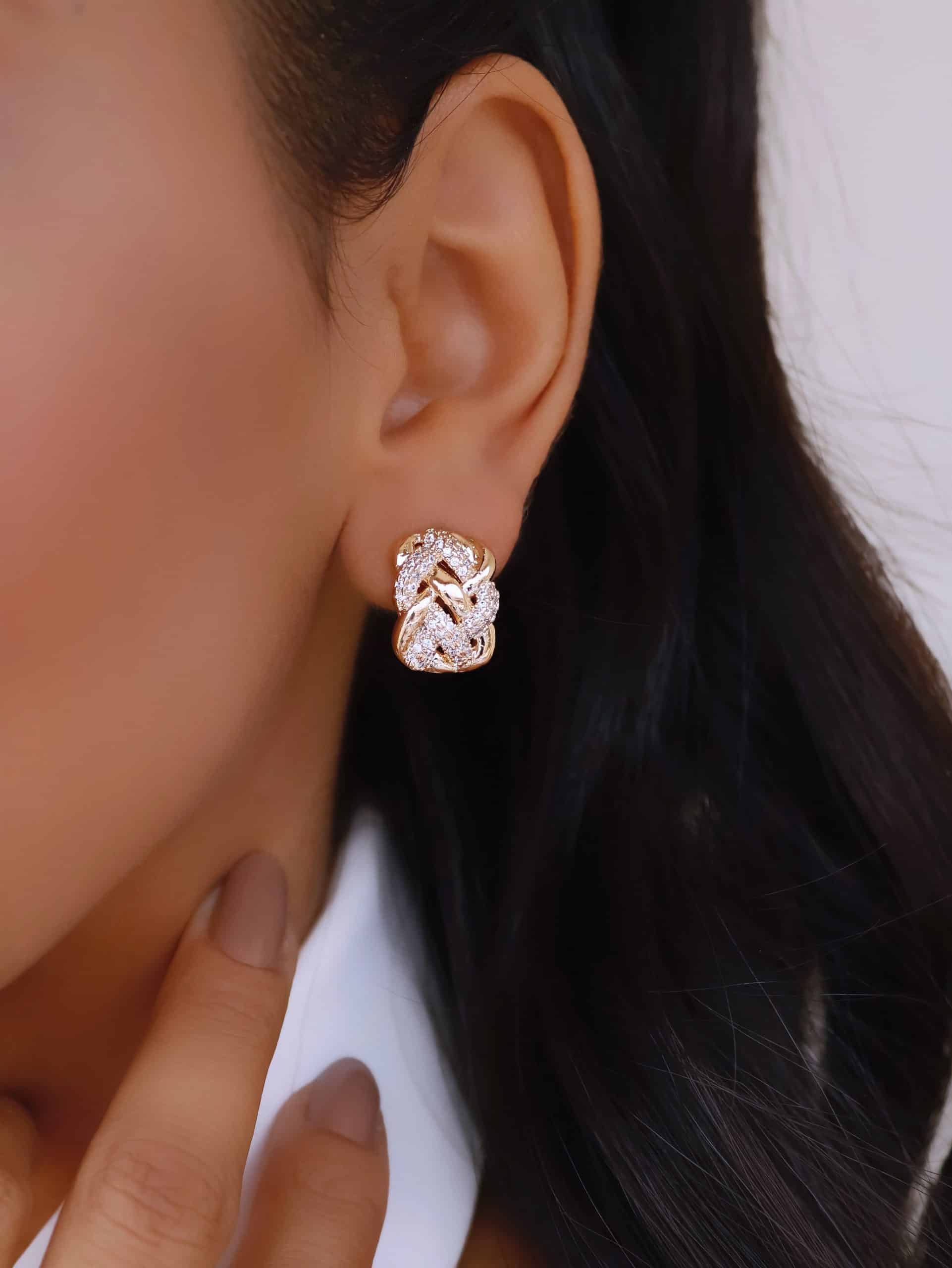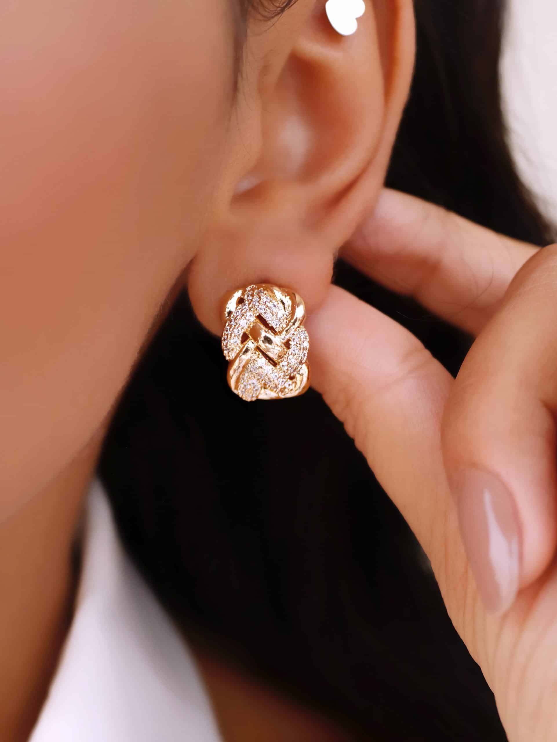 BRINCO ZIRCONIA FLOR COM AS CINCO PETALAS LISAS E O MIOLO CRAVEJADO 24.8MM