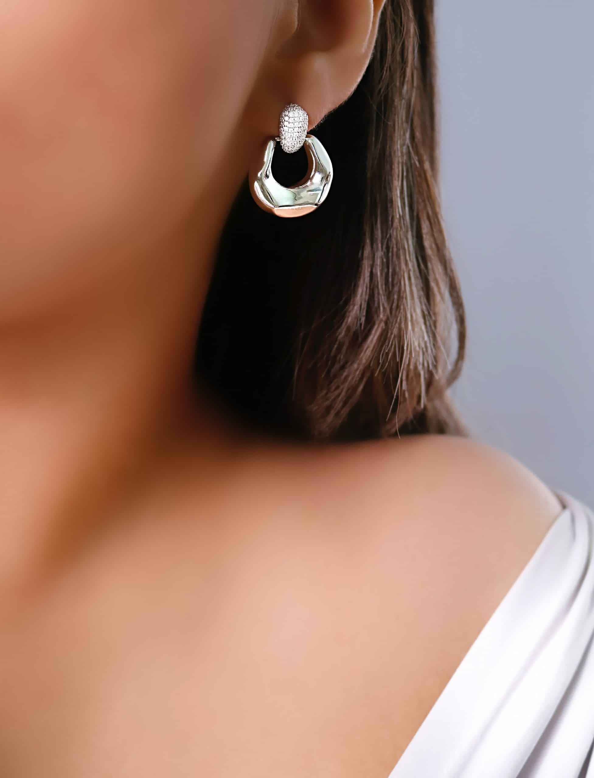 BRINCO ZIRCONIA ARGOLA METADE NAVETE METADE LISA