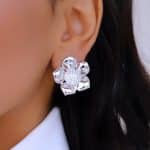 BRINCO ZIRCONIA FLOR COM QUATRO PETALAS CRAVEJADA NA BORDA 16.6 MM