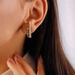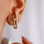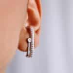 BRINCO ZIRCONIA DUAS FLORES SENDO UMA PENDURADA