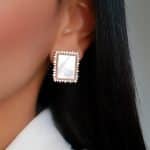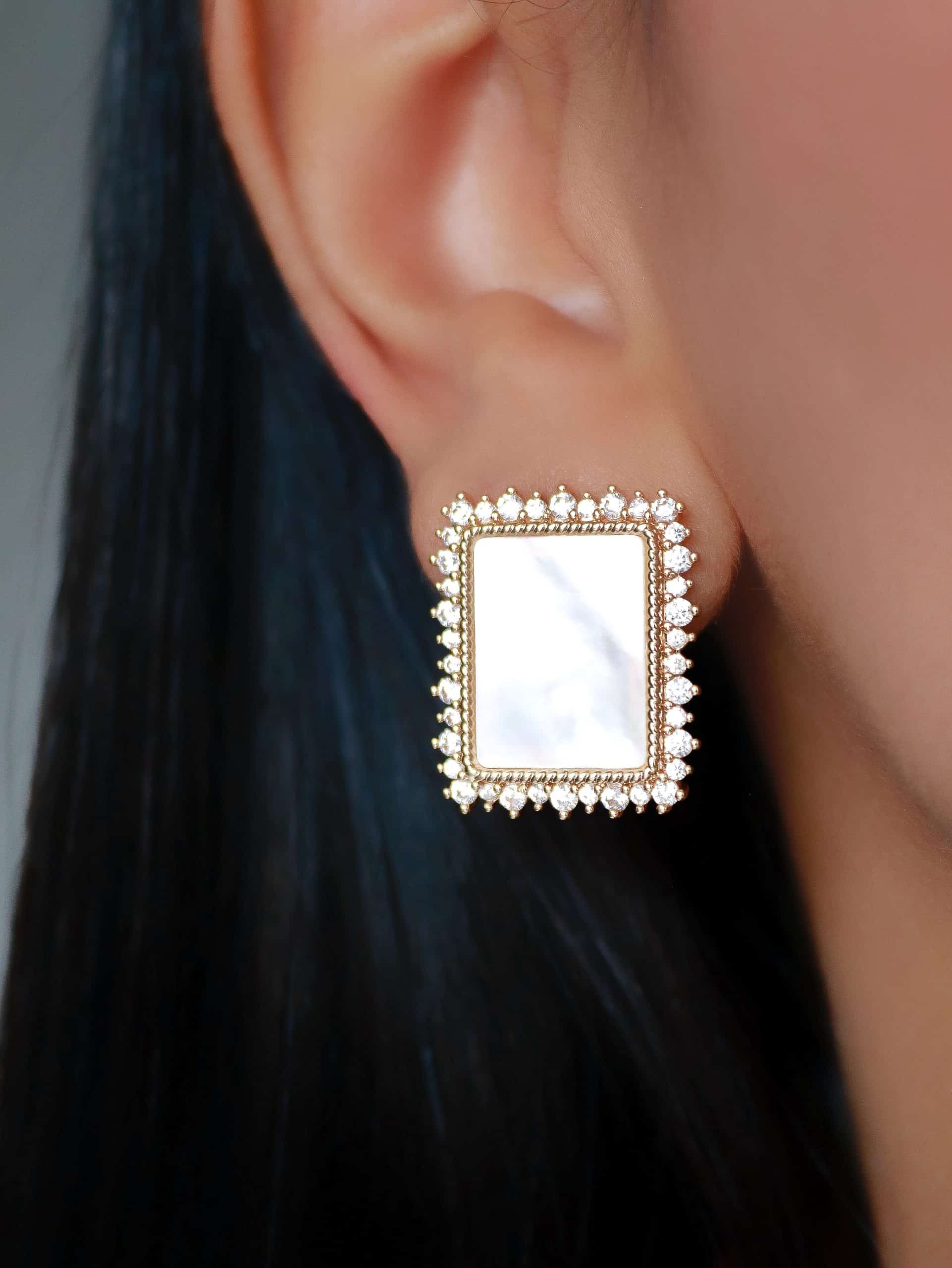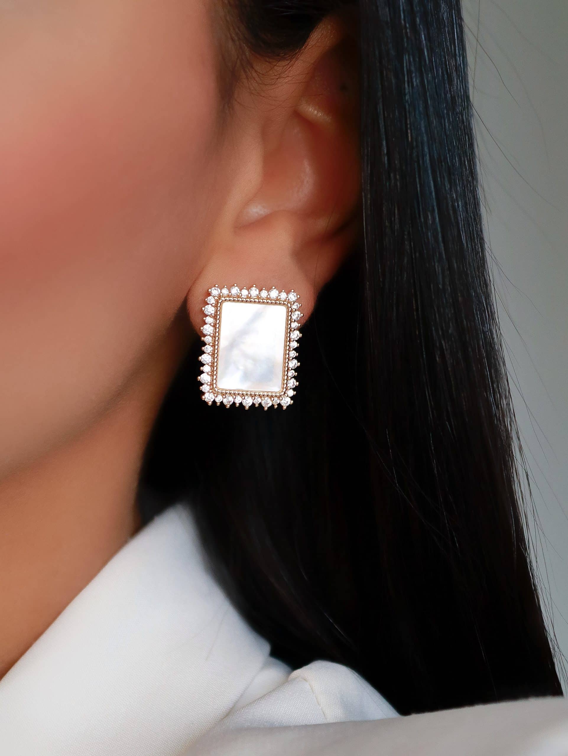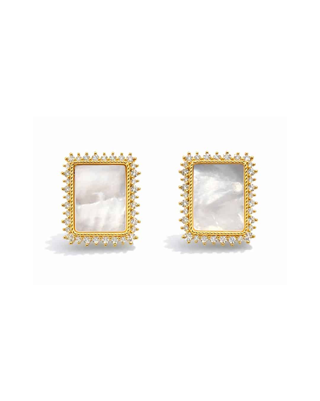 BRINCO ZIRCONIA MADRE PEROLA RETANGULAR CRAVEJADO EM VOLTA 21.2 MM