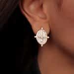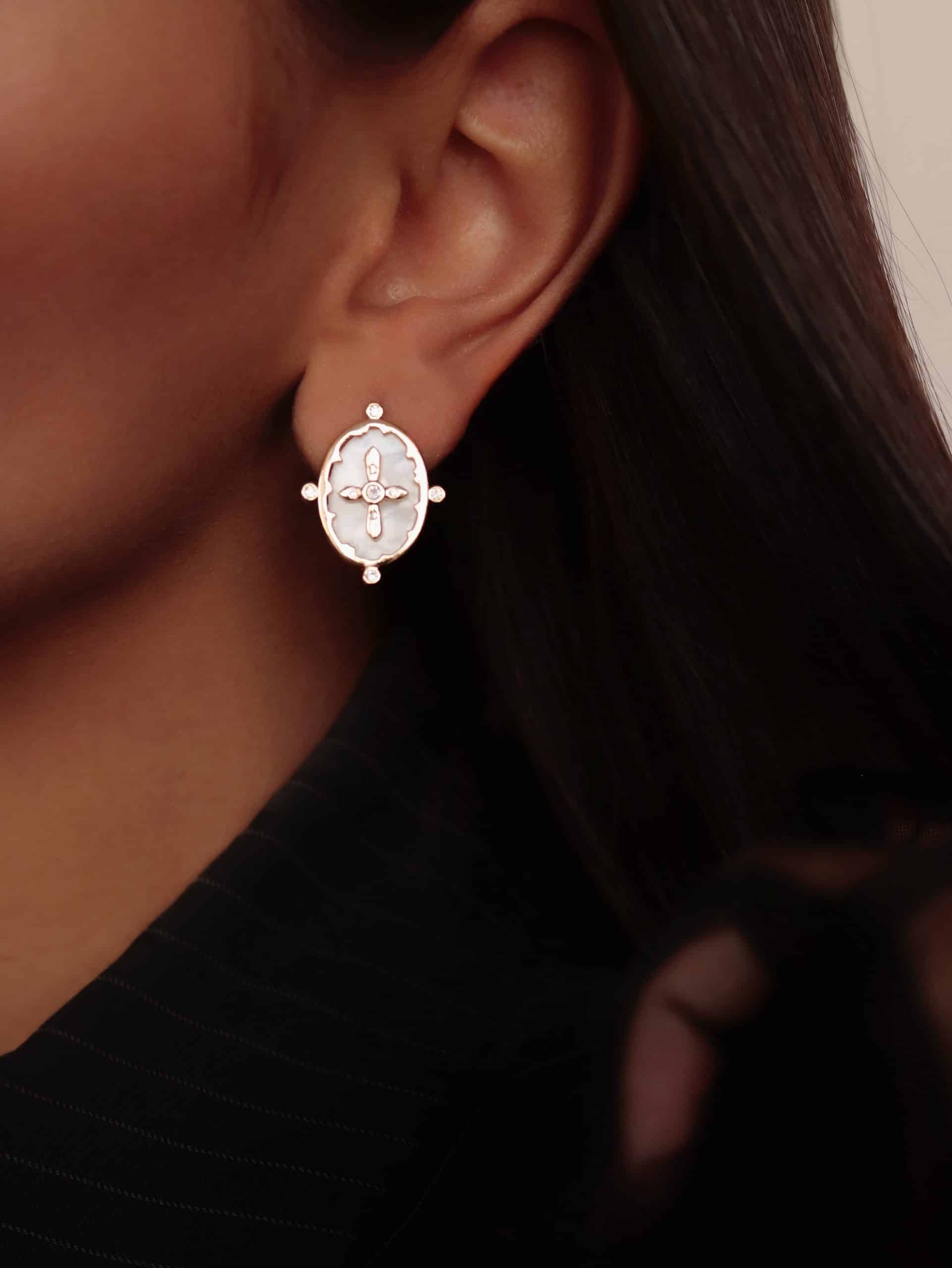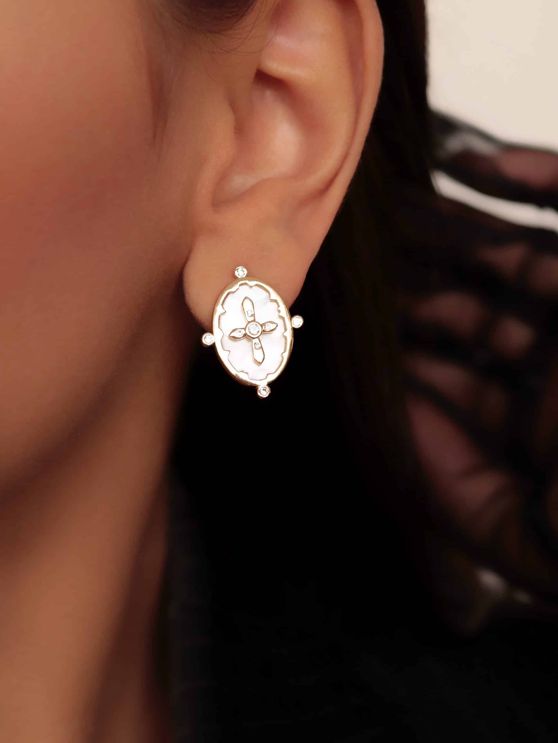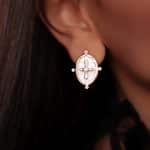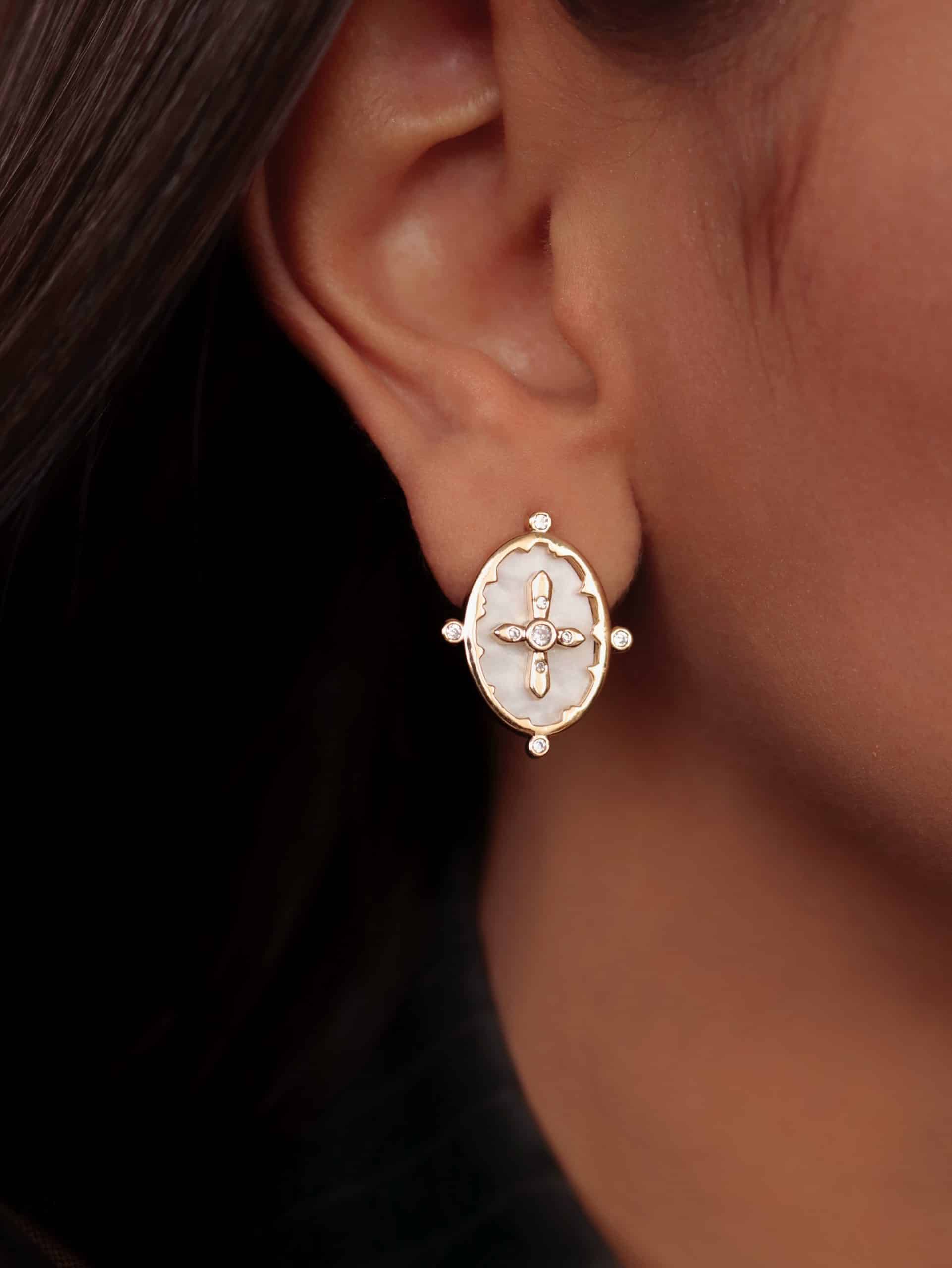BRINCO ZIRCONIA MEDALHA RESINA OVAL COM UMA CRUZ COM PONTOS DE ZIRCONIAS