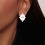 BRINCO ZIRCONIA FLOR COM TRES PETALAS RESINA E O MIOLO CRAVEJADO 17.3MM