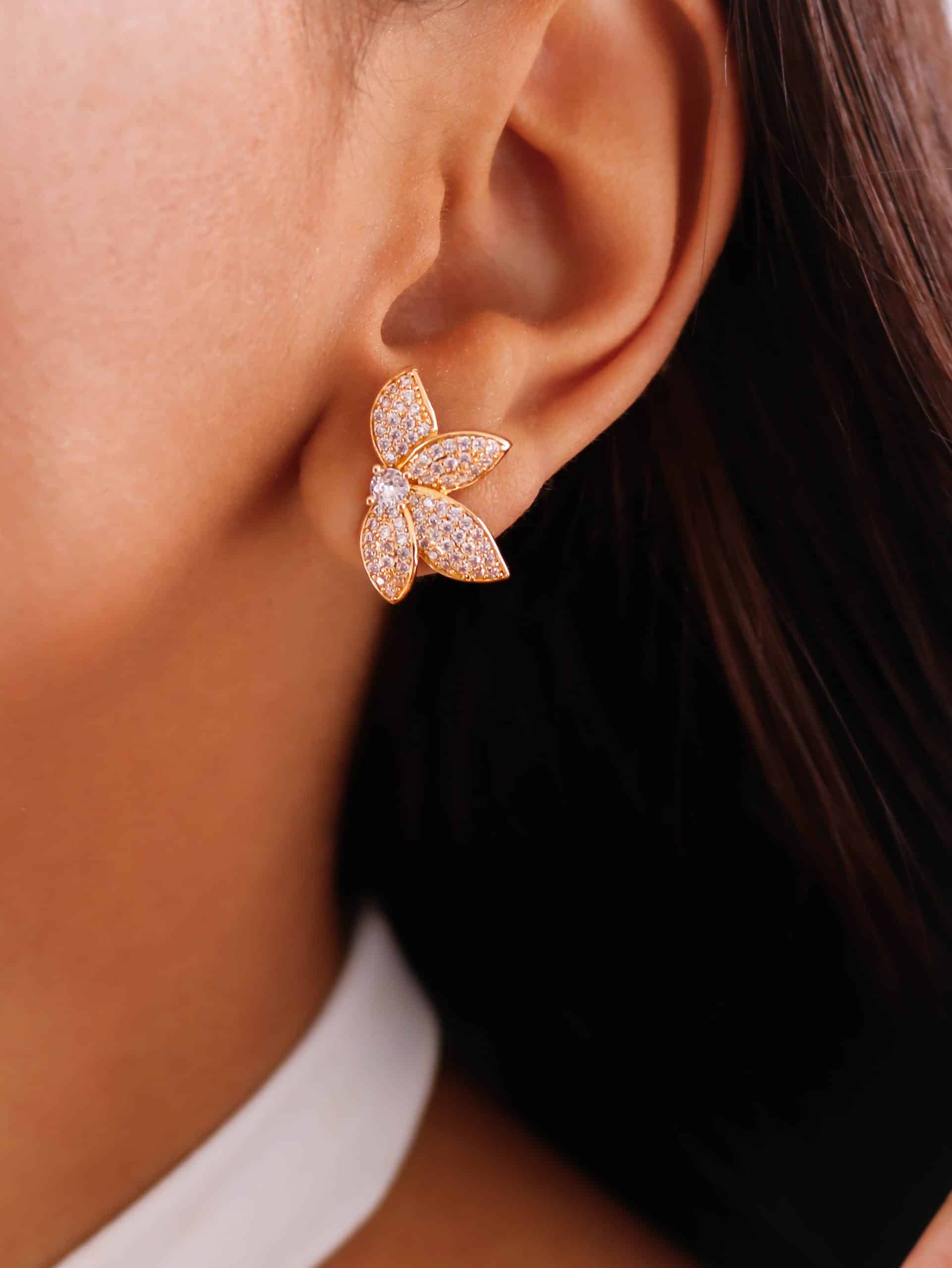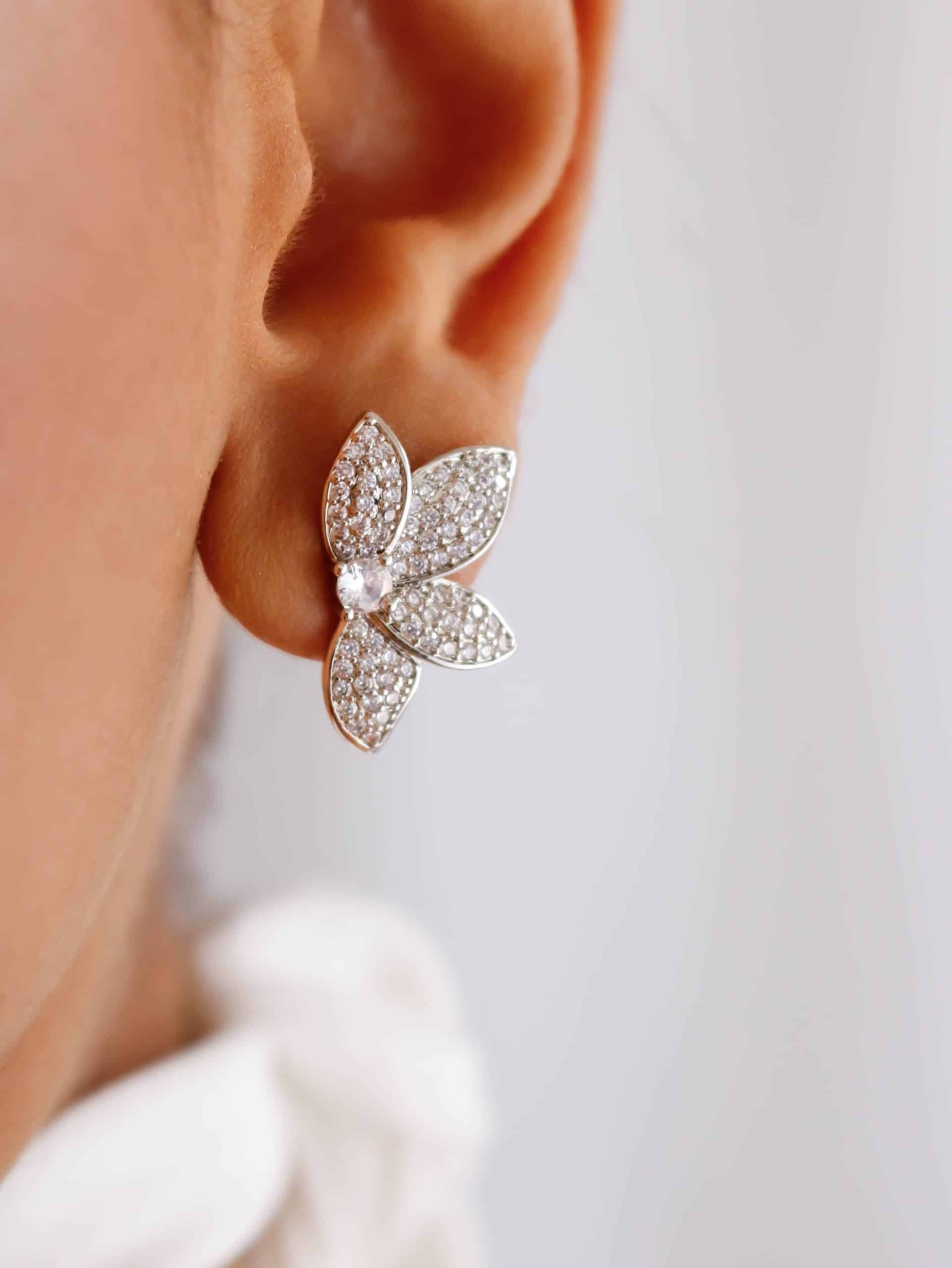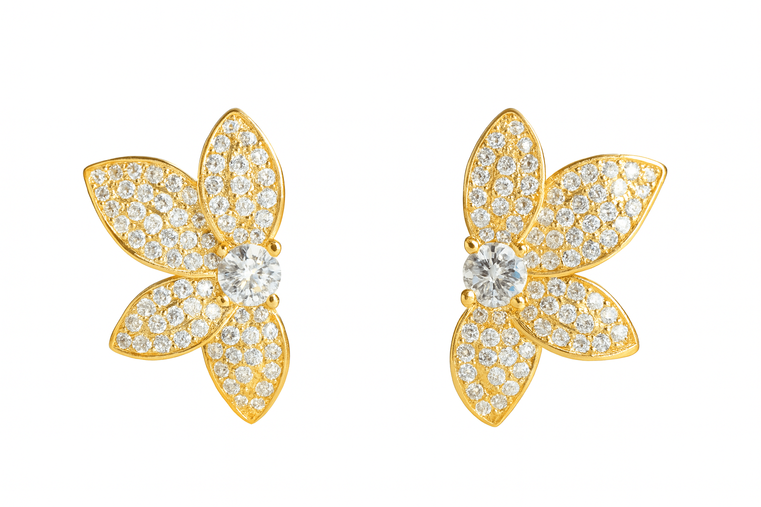 BRINCO ZIRCONIA METADE DE UMA FLOR TODA CRAVEJADA 21.1 MM