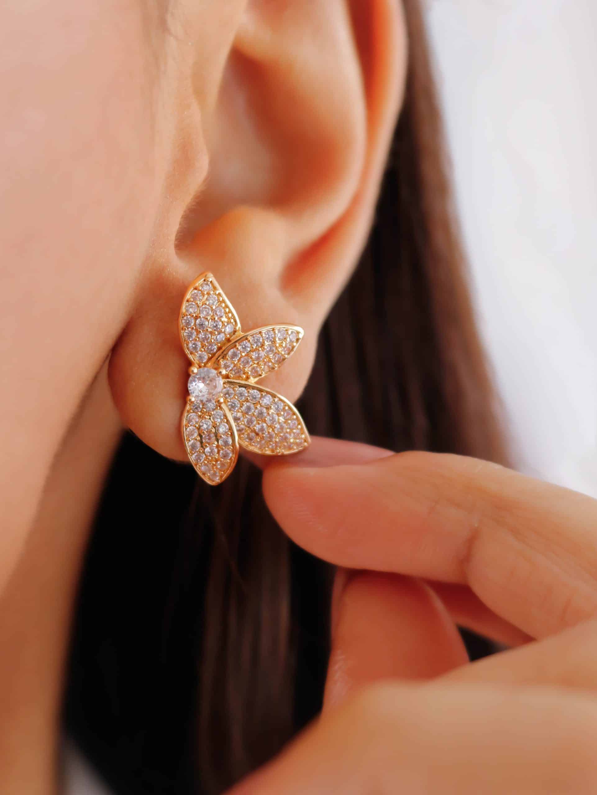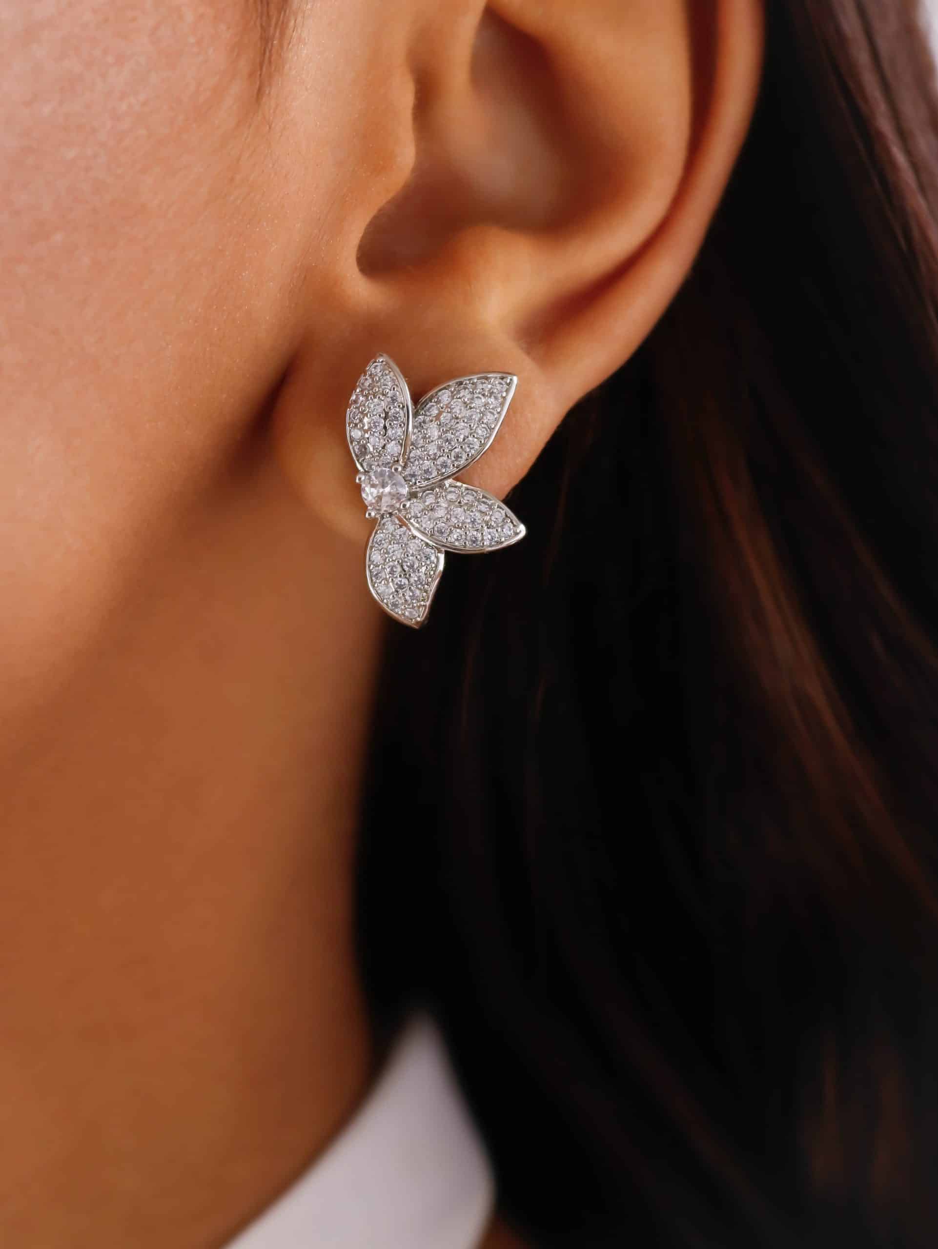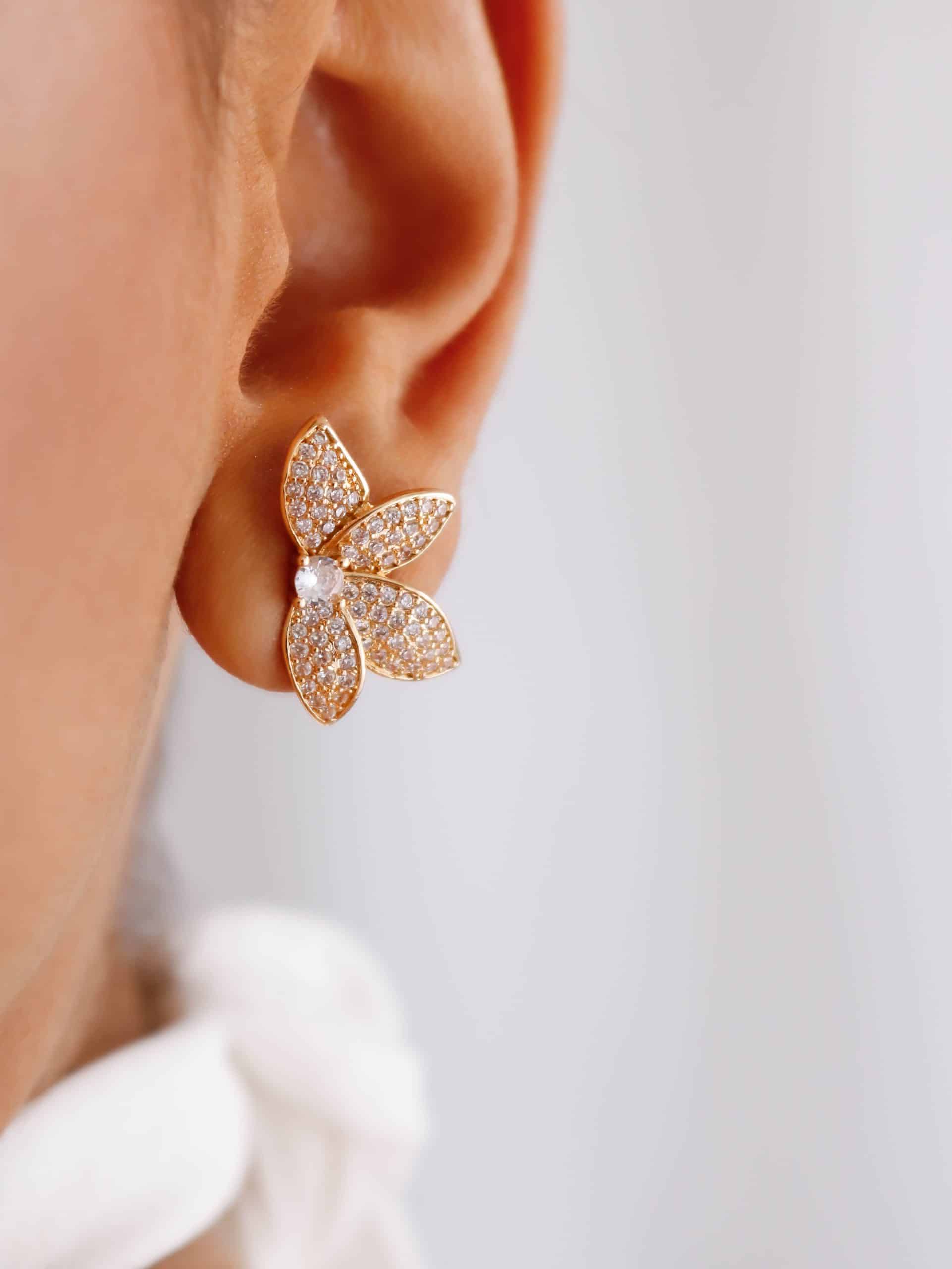 BRINCO ZIRCONIA METADE DE UMA FLOR TODA CRAVEJADA 21.1 MM