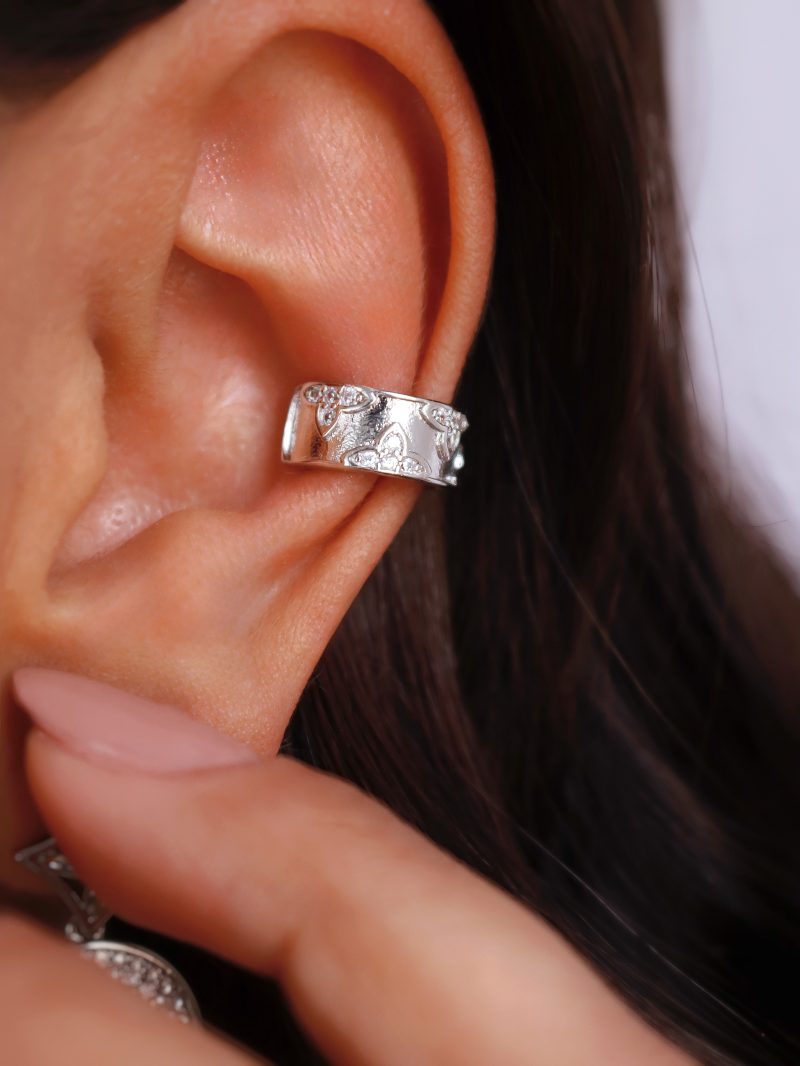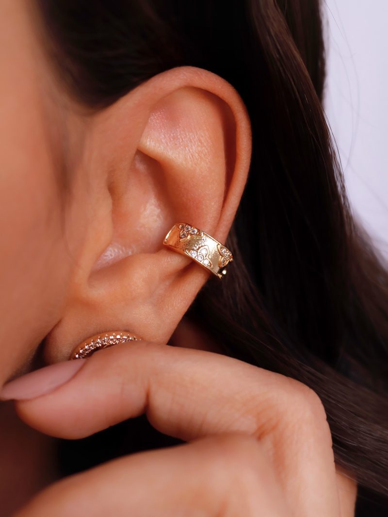 BRINCO PEROLA FLOR CRAVEJADA EM VOLTA E PEROLA PENDURADA CORES 26.0 MM