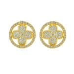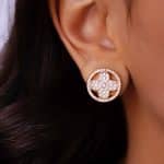 BRINCO ZIRCONIA COM UMA FLOR NA BASE CRAVEJADA E OUTRA FLOR MAIOR DE RESINA COM ZIRCONIAS CORES