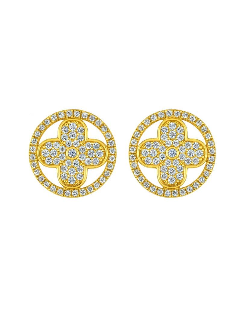 BRINCO ZIRCONIA COM UMA FLOR NA BASE CRAVEJADA E OUTRA FLOR MAIOR DE RESINA COM ZIRCONIAS CORES