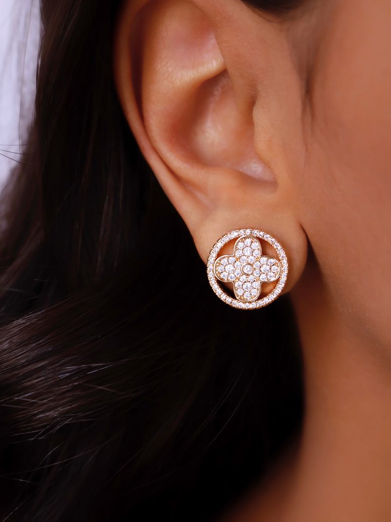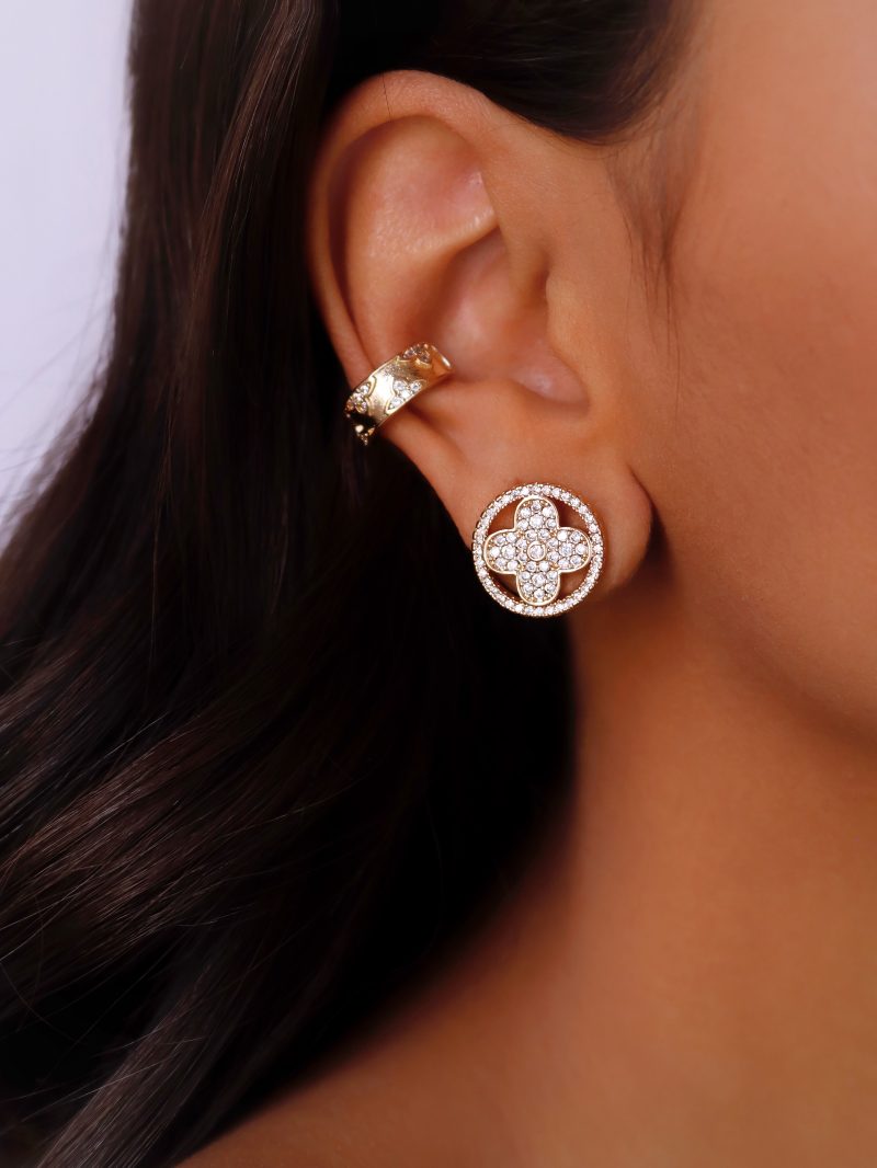 BRINCO ZIRCONIA ARGOLA CLICK COM UMA FLOR PEQUENA CRAVEJADA E A OUTRA MAIOR RESINA CORES