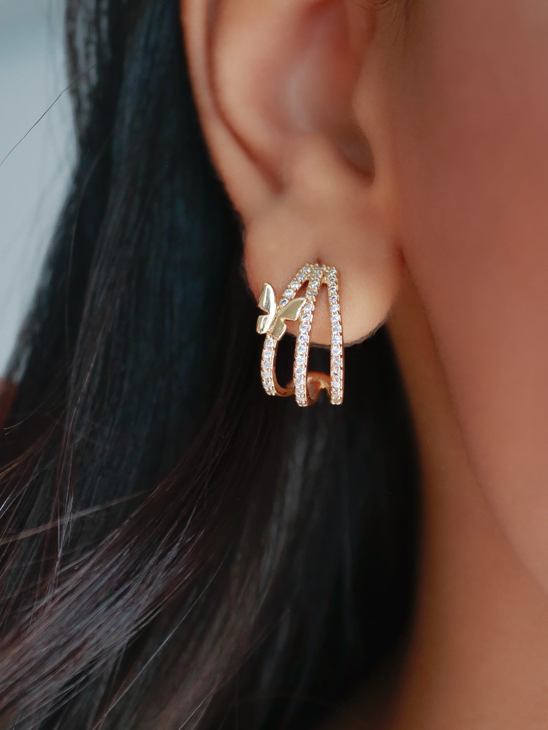 GARGANTILHA LISA GRAVATA COM TRES BORBOLETAS TAMANHOS DIFERENTES 45CM
