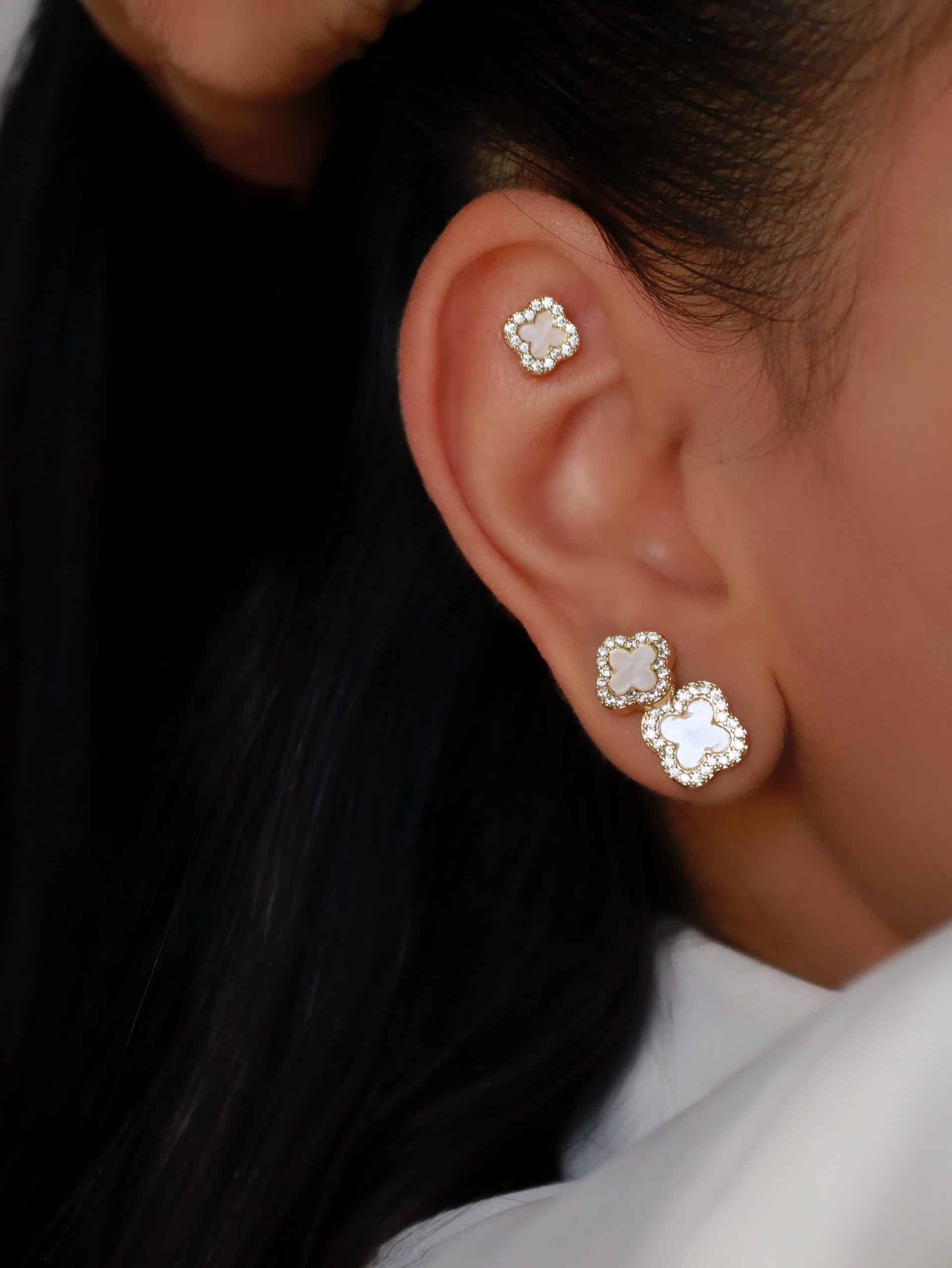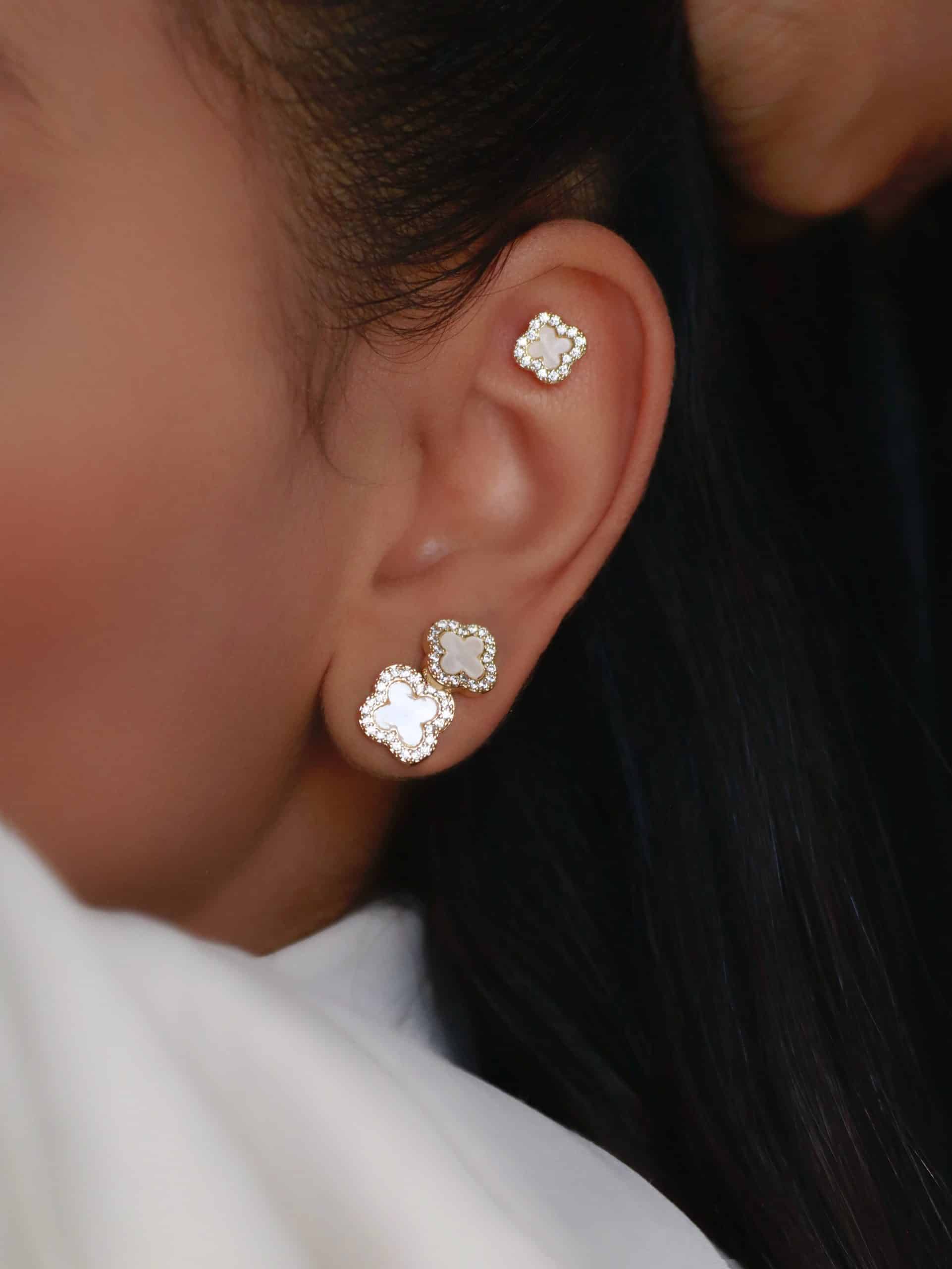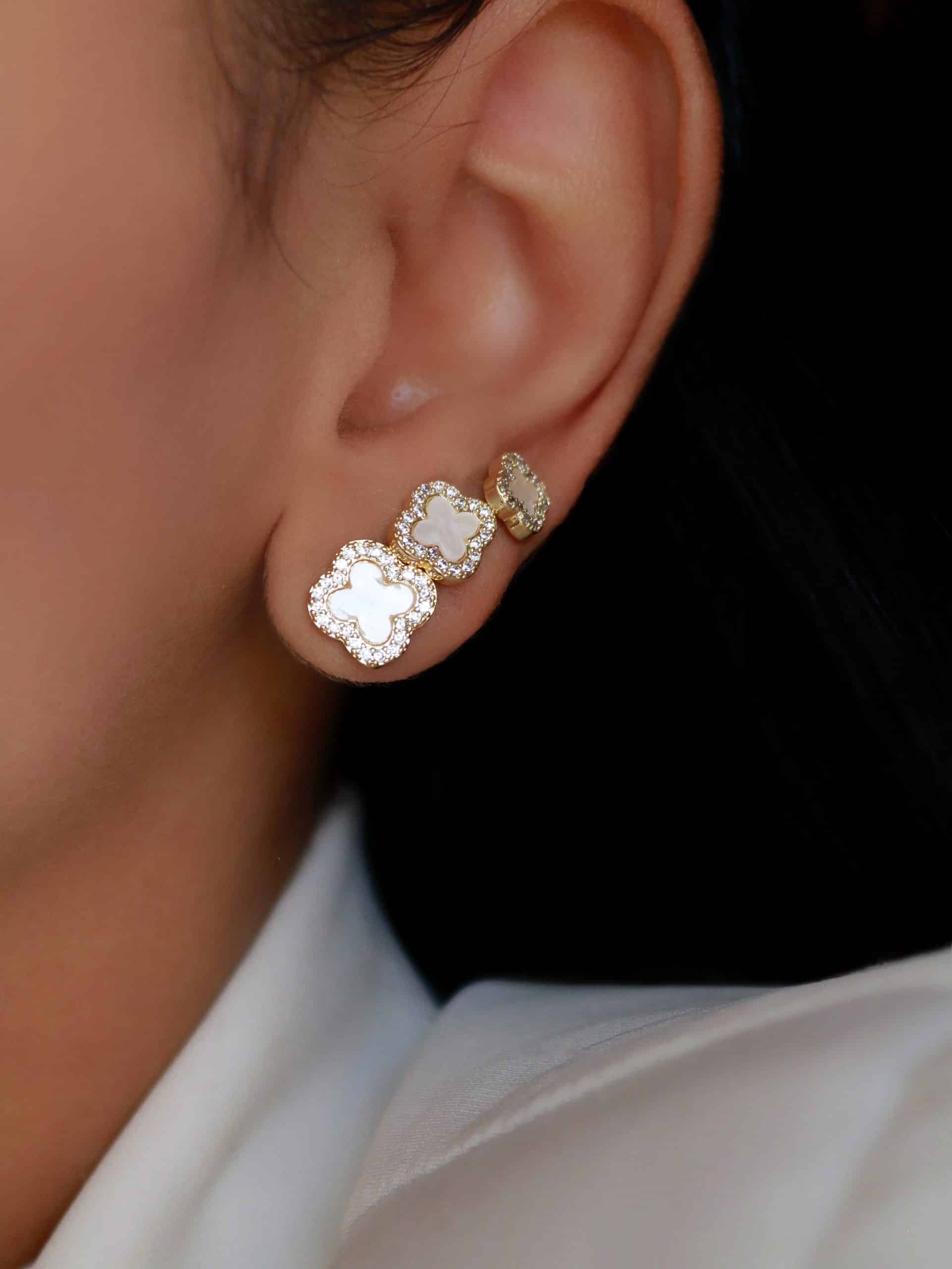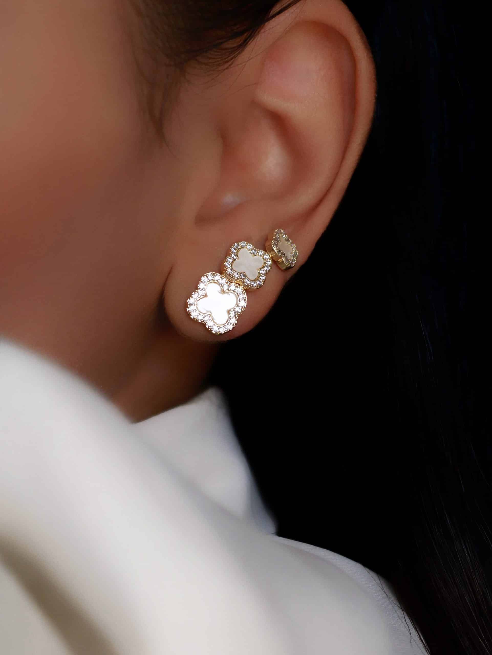 BRINCO PEROLA FLOR E UMA PEROLA PENDURADA CORES 28.7 MM
