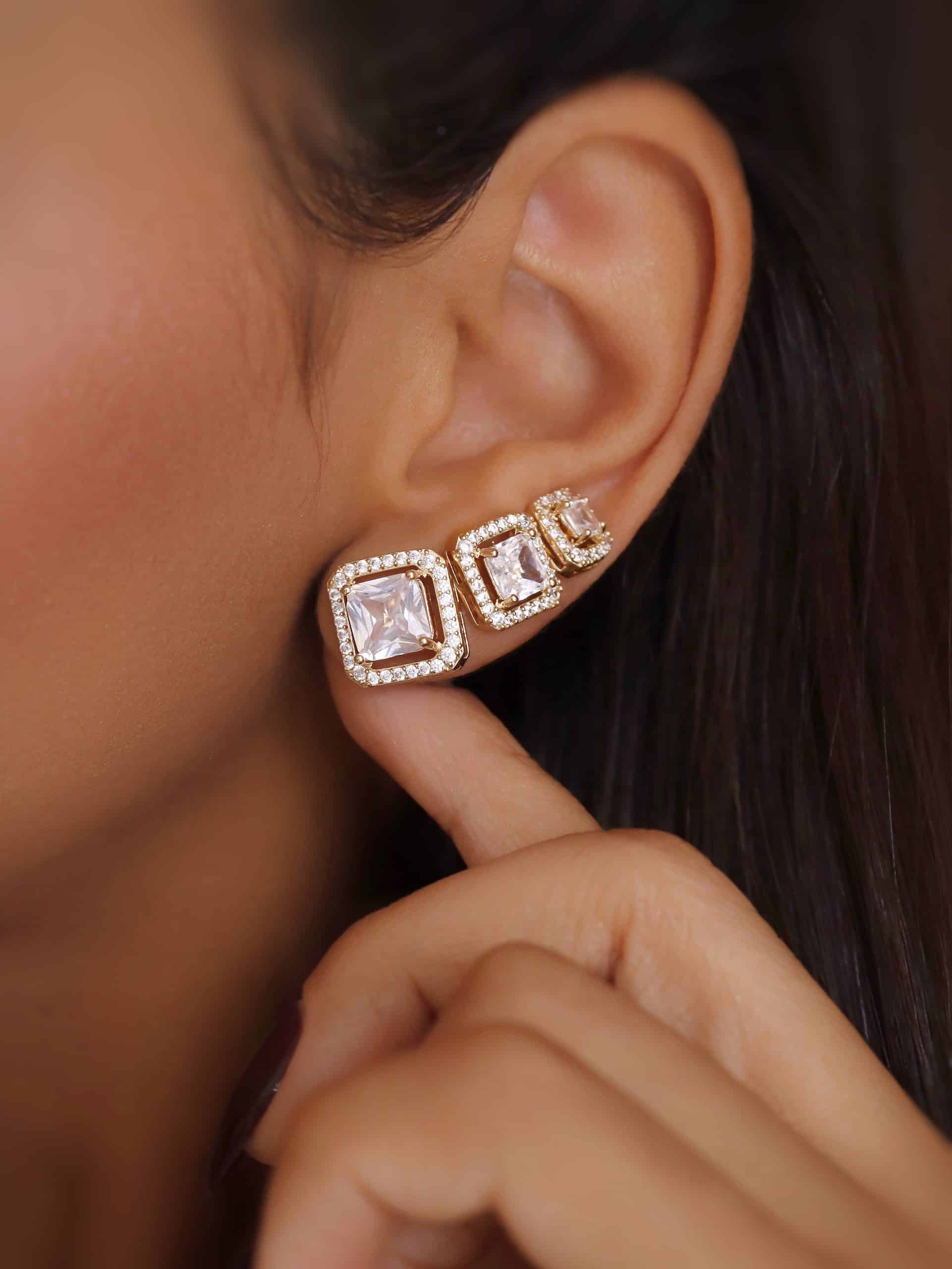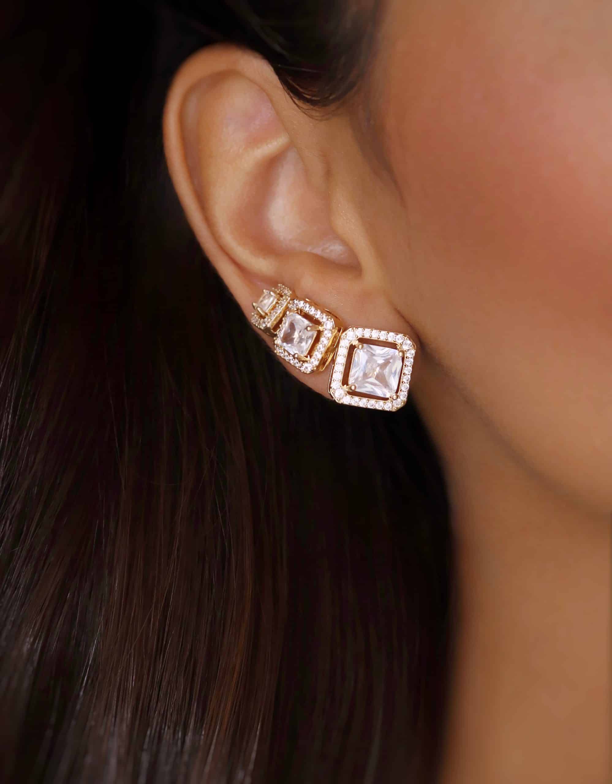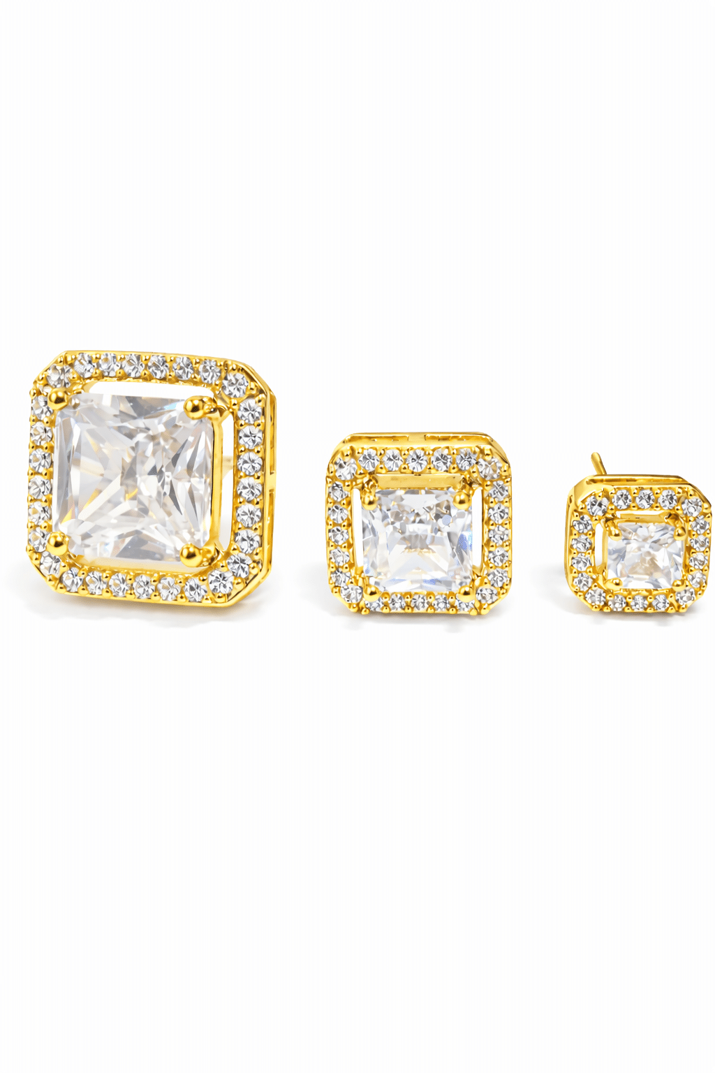 BRINCO ZIRCONIA TRIO QUADRADO VAZADO NA LATERAL 12.9 MM