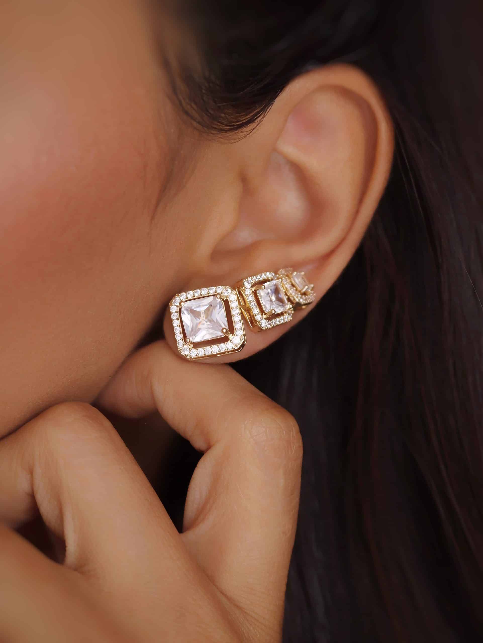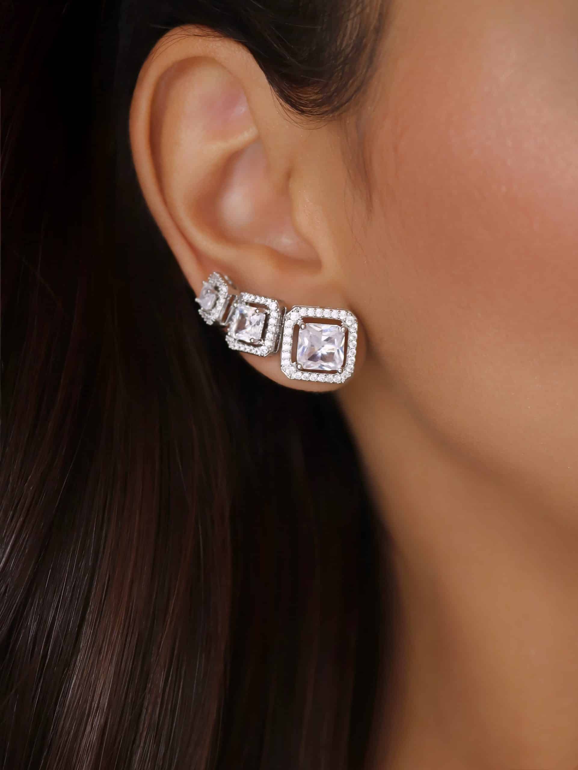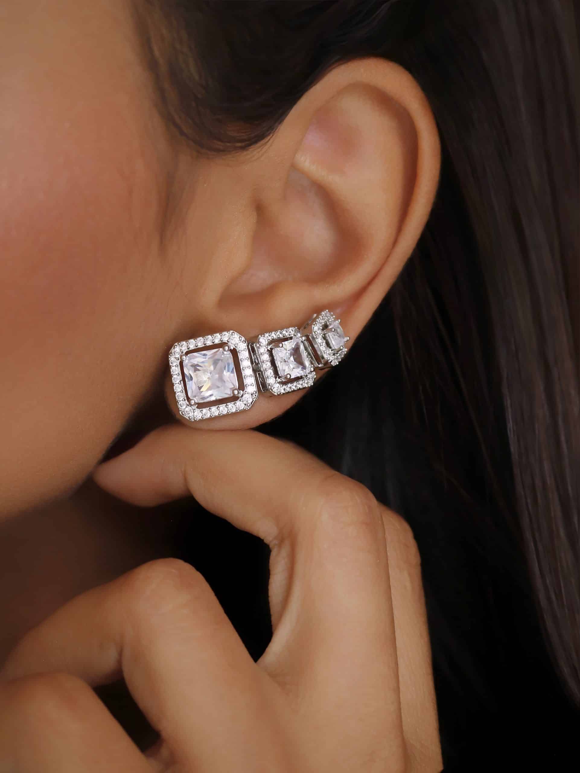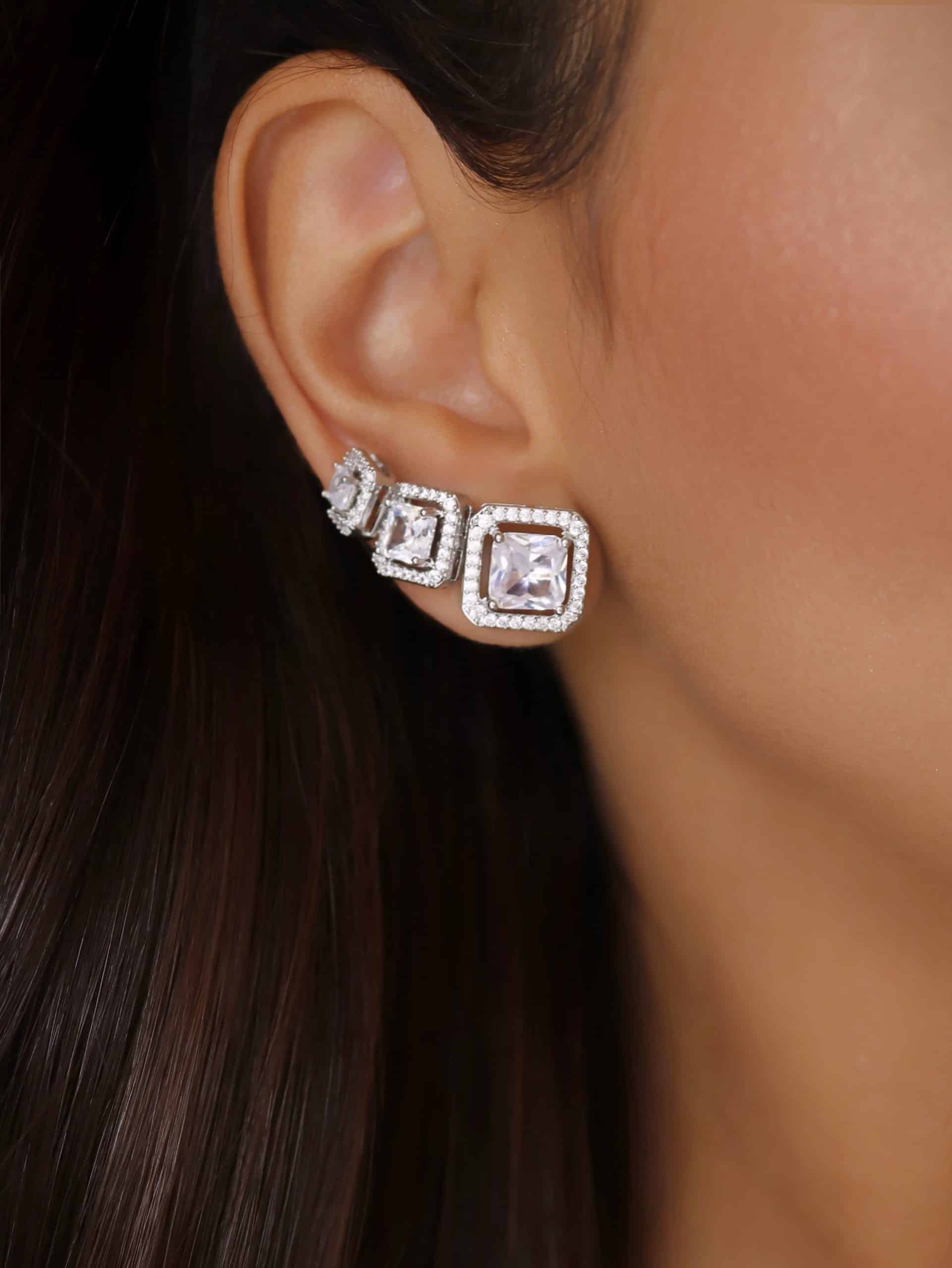 BRINCO ZIRCONIA TRIO QUADRADO VAZADO NA LATERAL 12.9 MM